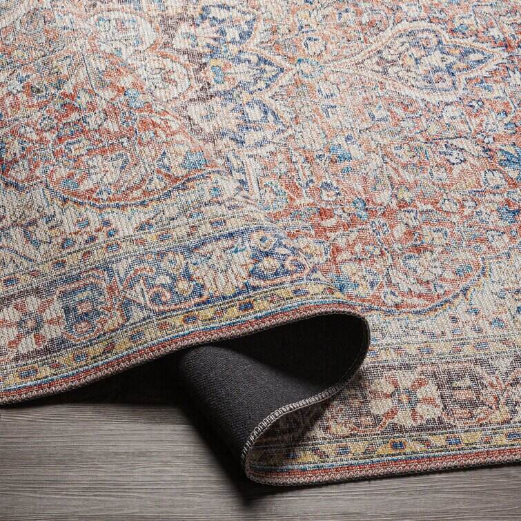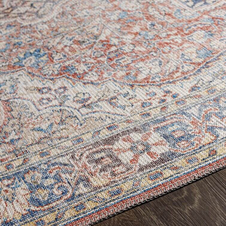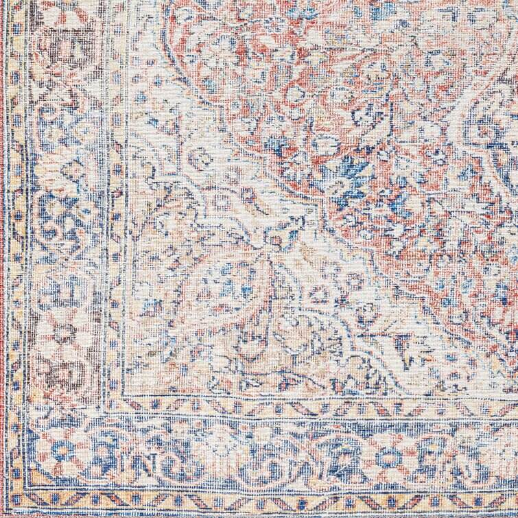 Bria Machine Washable Oriental Red/Blue/Ivory Area Rug
