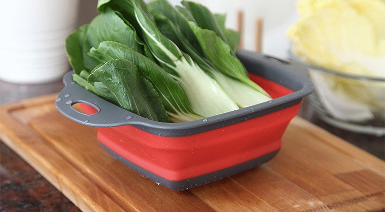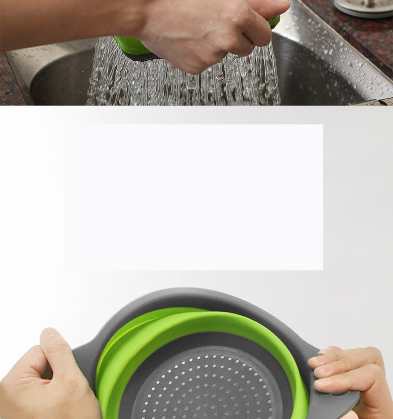 • colander Silicone Folding Drain Basket Fruit Vegetable Washing Basket Foldable Strainer Colander Collapsible Drainer Kitchen Storage Tool Rugged and easy to use (Color : Blue, Size : 18.5X24.5cm)