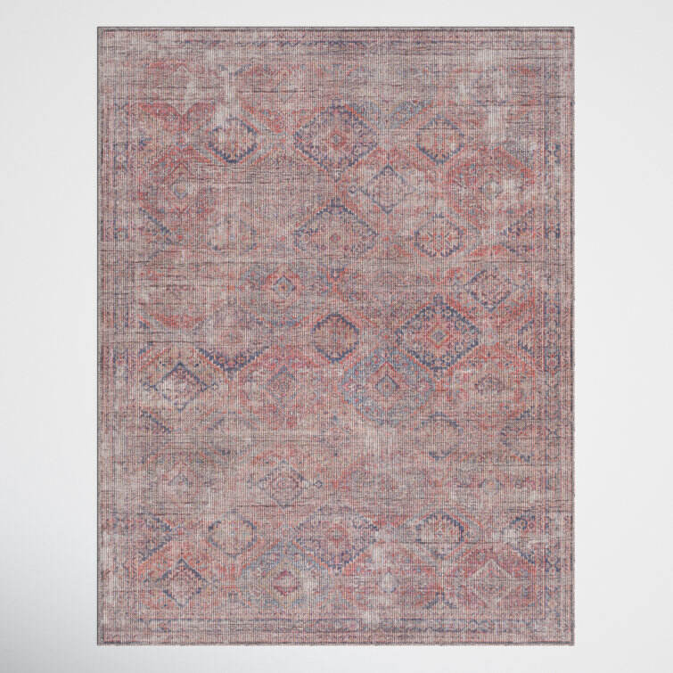Bria Machine Washable Oriental Red/Blue/Ivory Area Rug