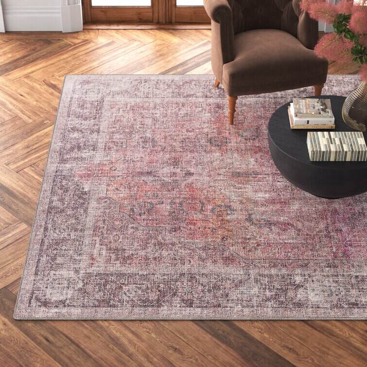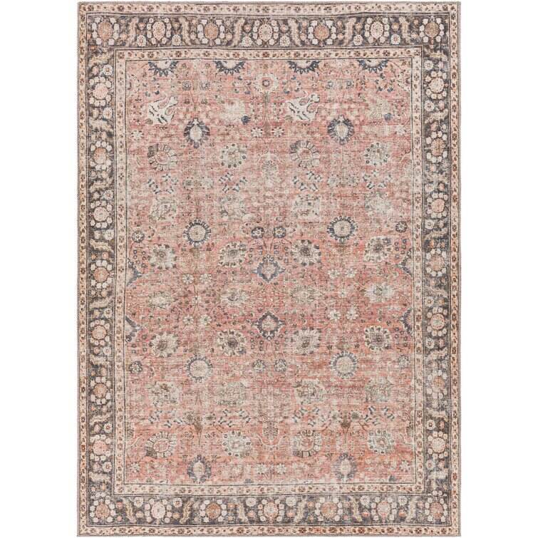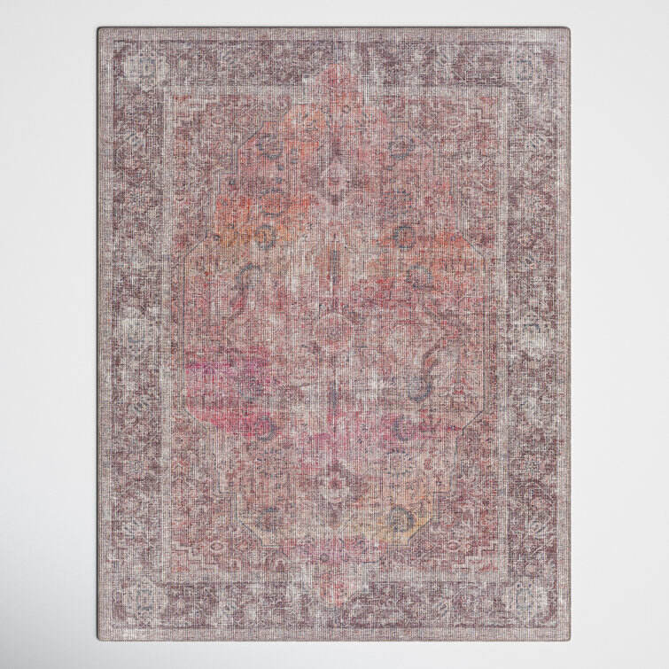 Emmie Machine Washable Oriental Red/Brick Red Area Rug