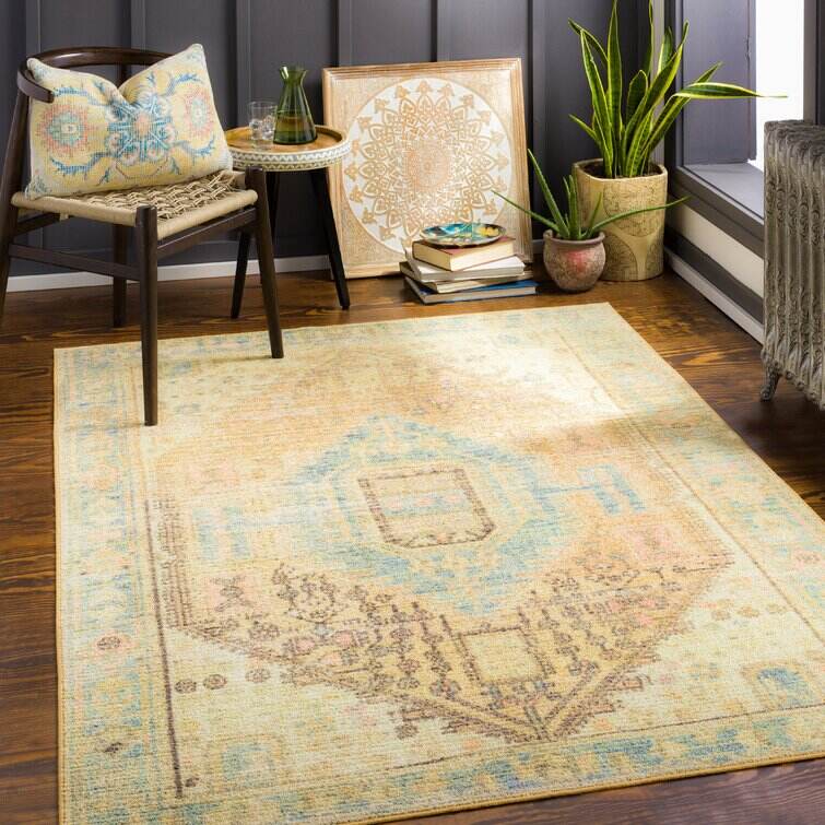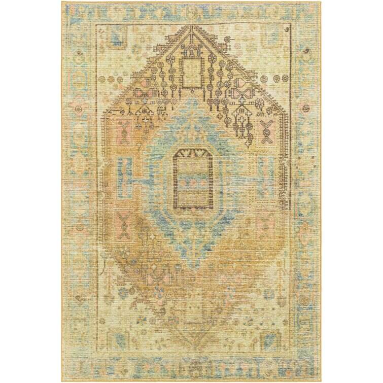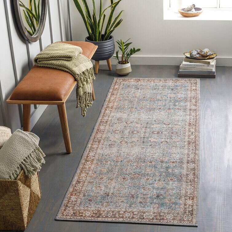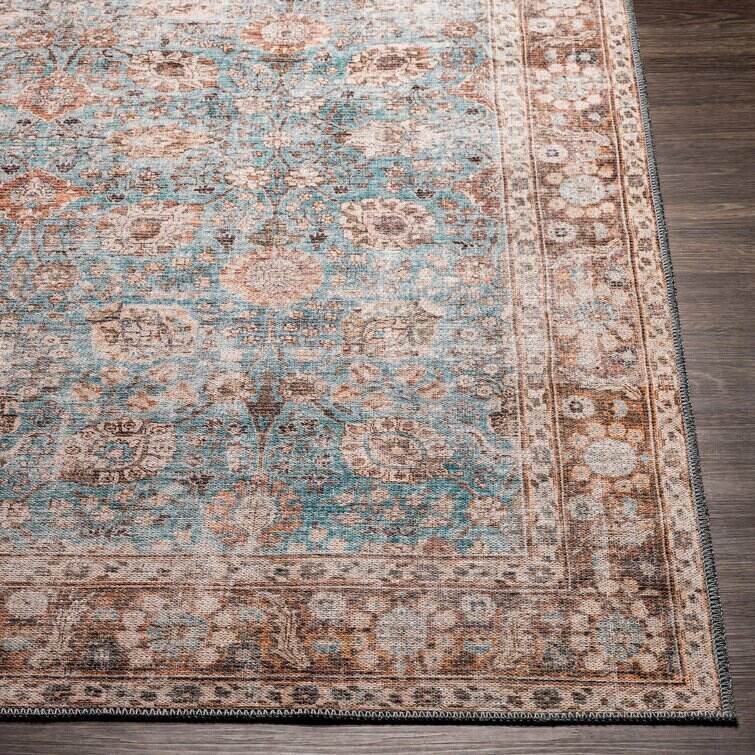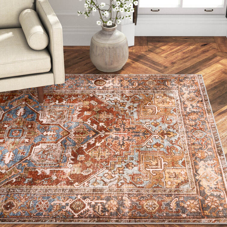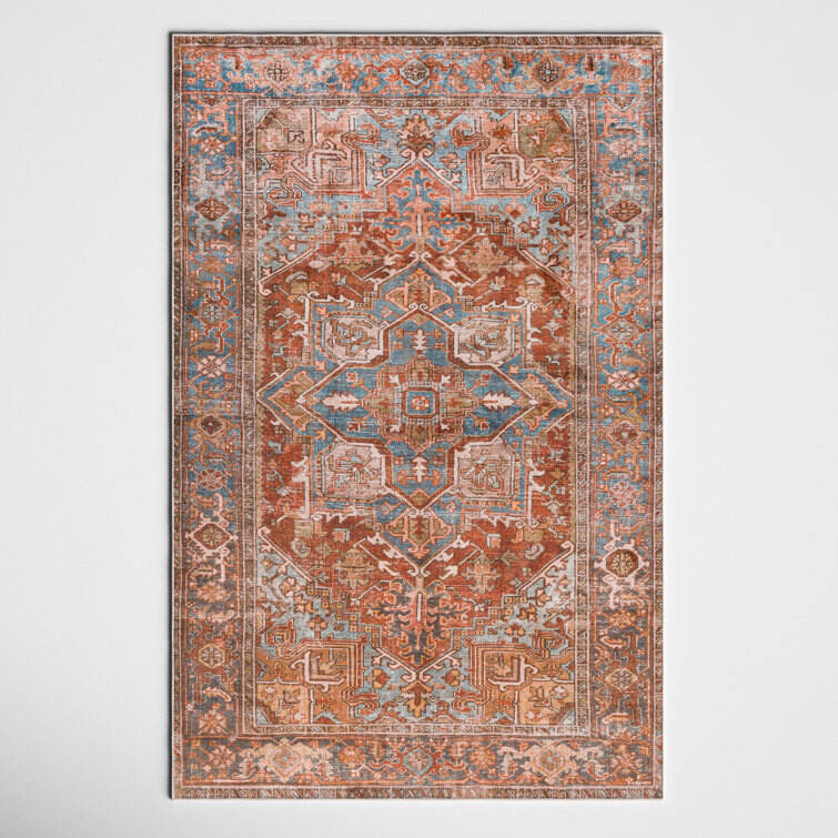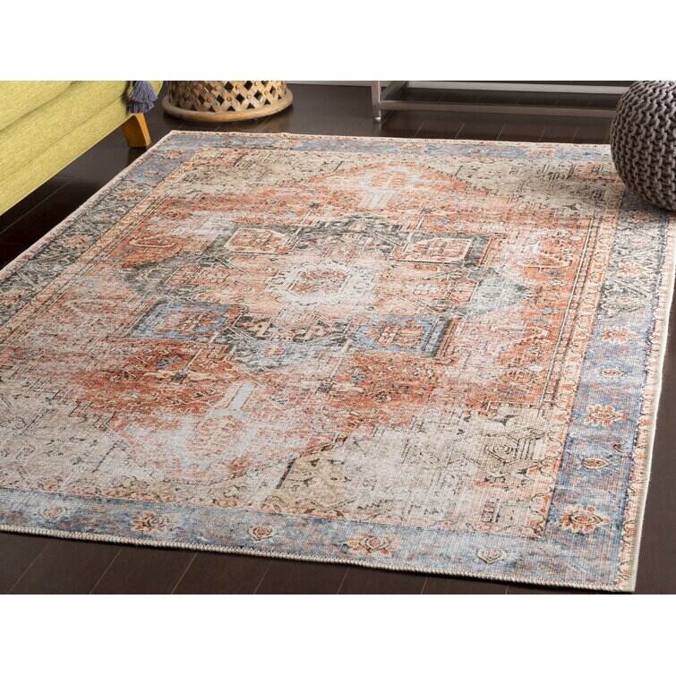 Bria Machine Washable Oriental Burnt Orange/Blue Area Rug