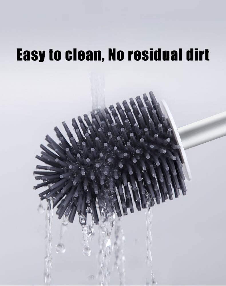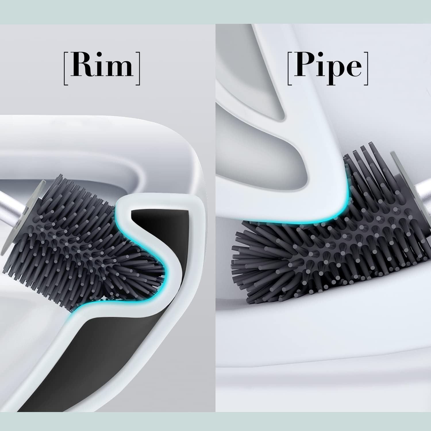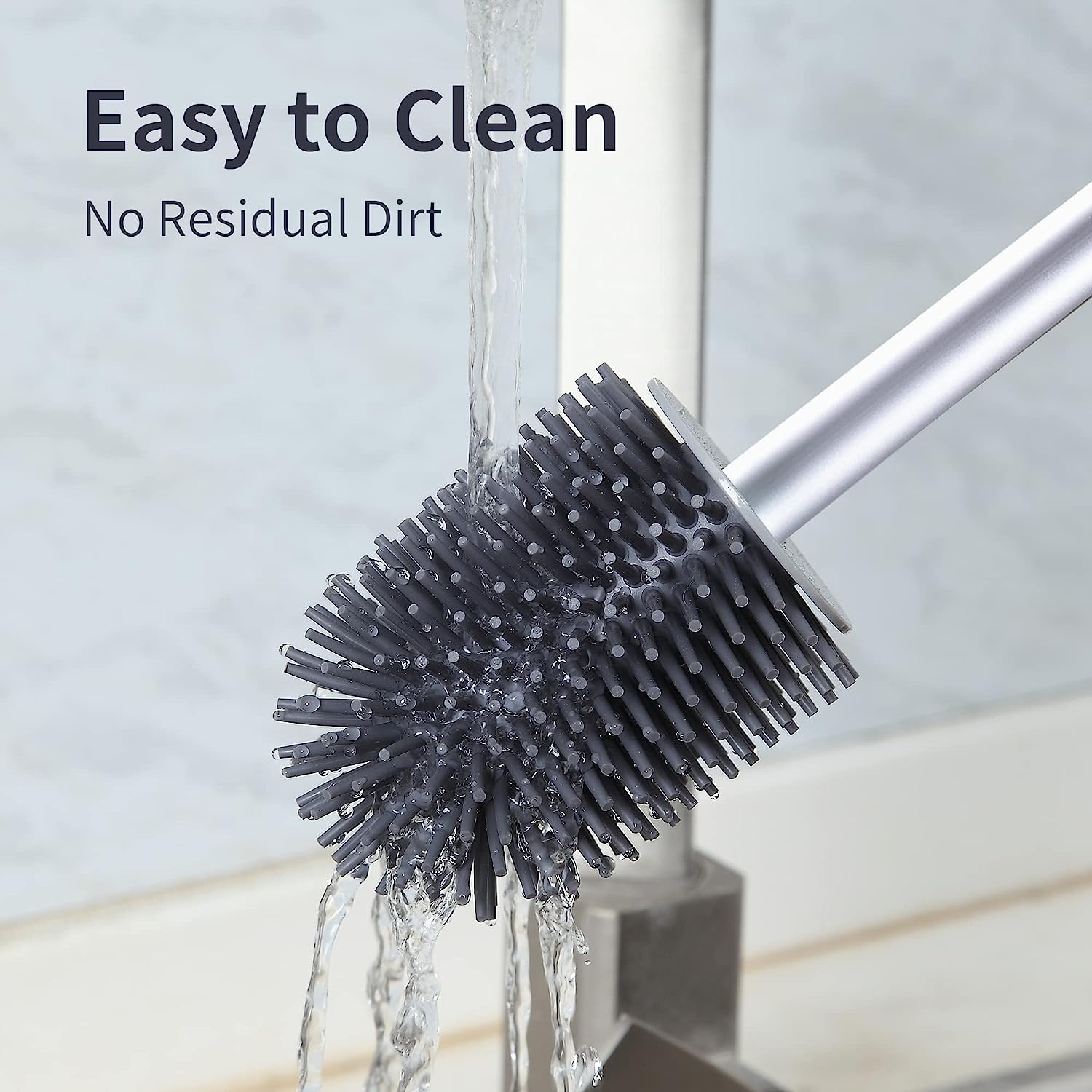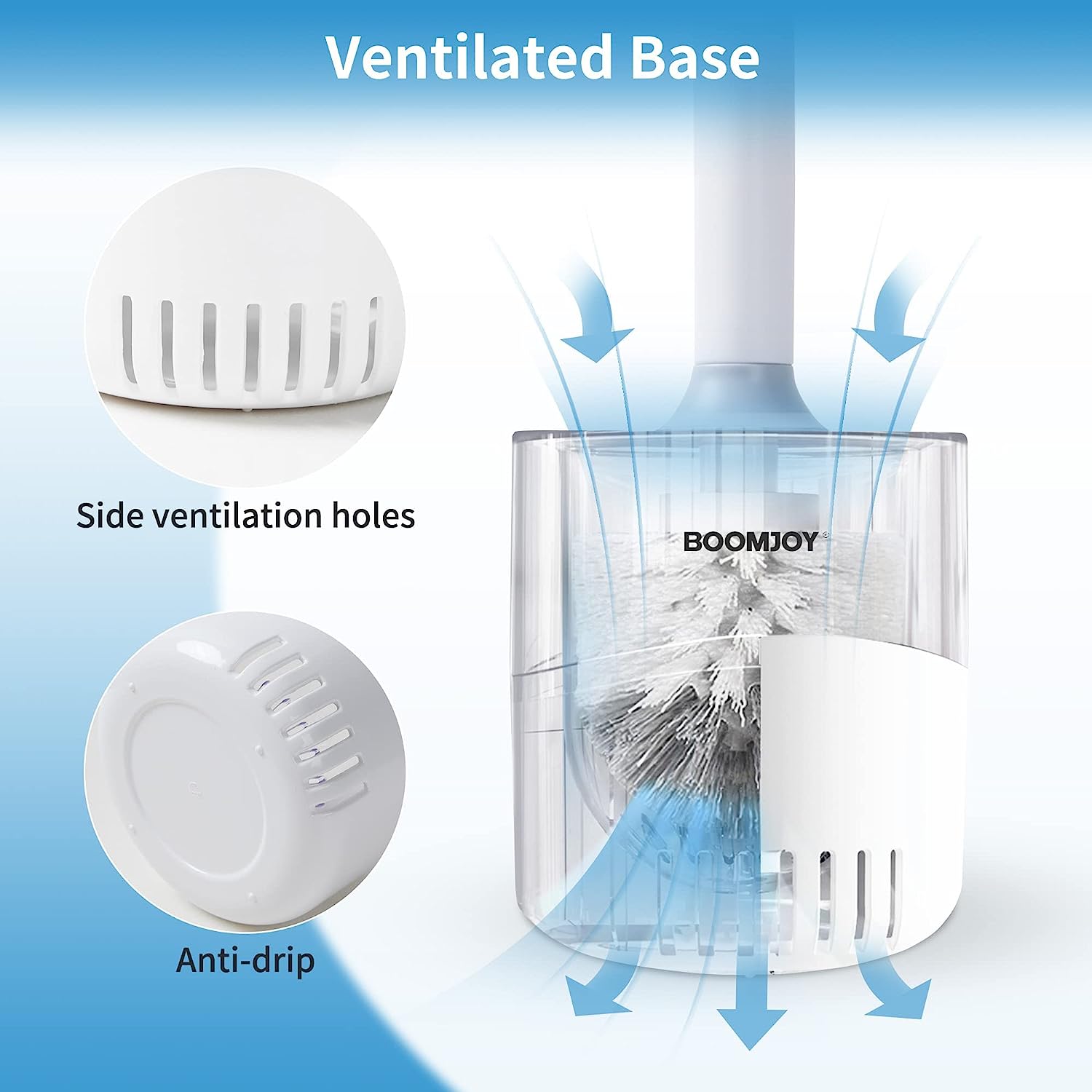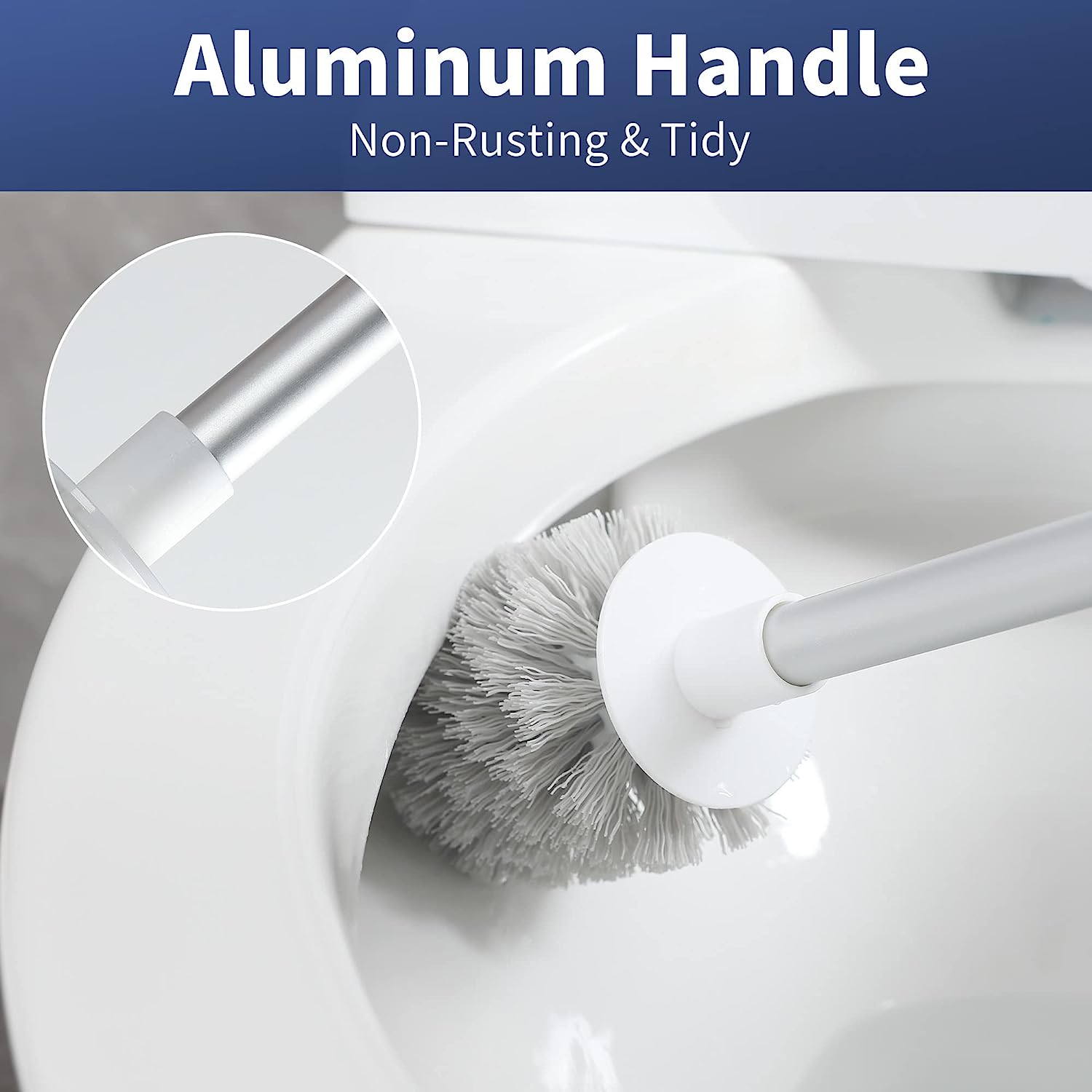 BOOMJOY Toilet Brush and Holder Set, Silicone Bristles Bathroom Cleaning Bowl Brush Kit with Tweezers, Bathroom Accessories with Aluminum Handle - White