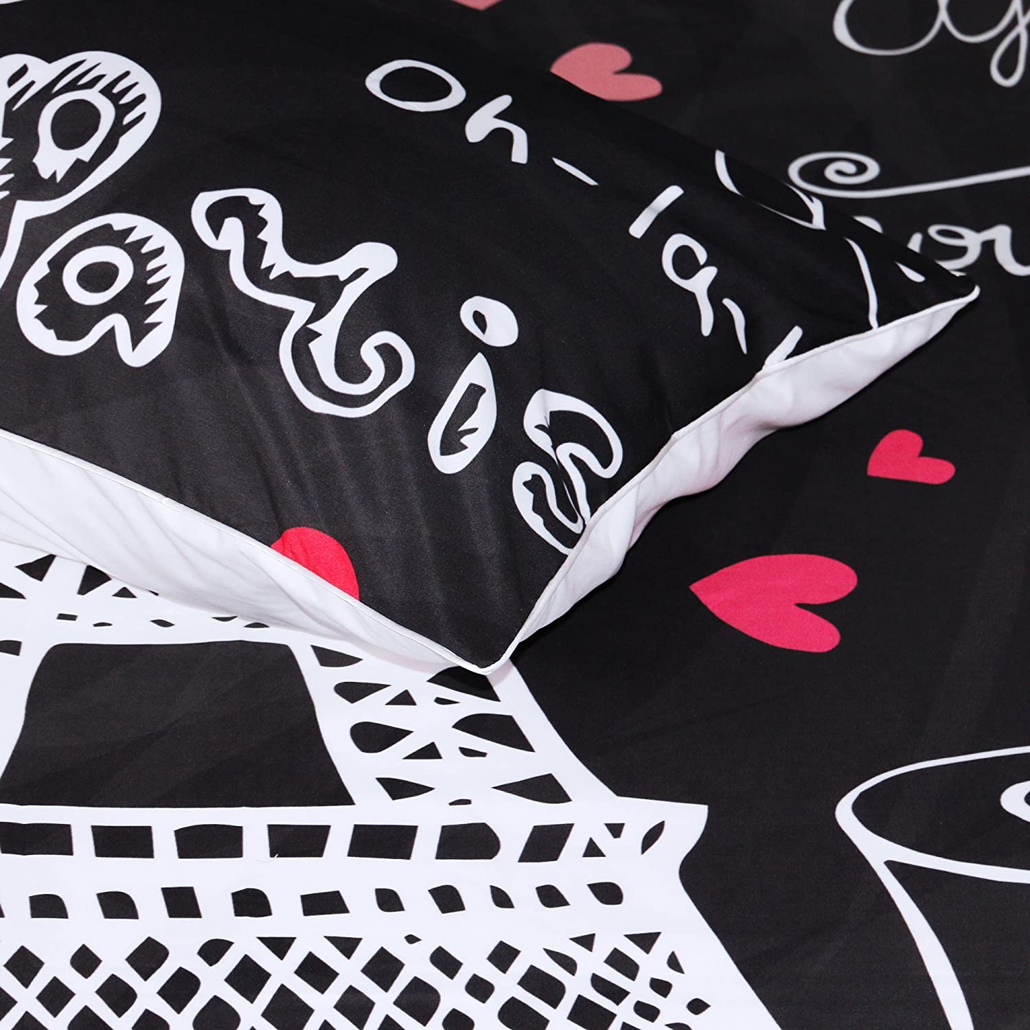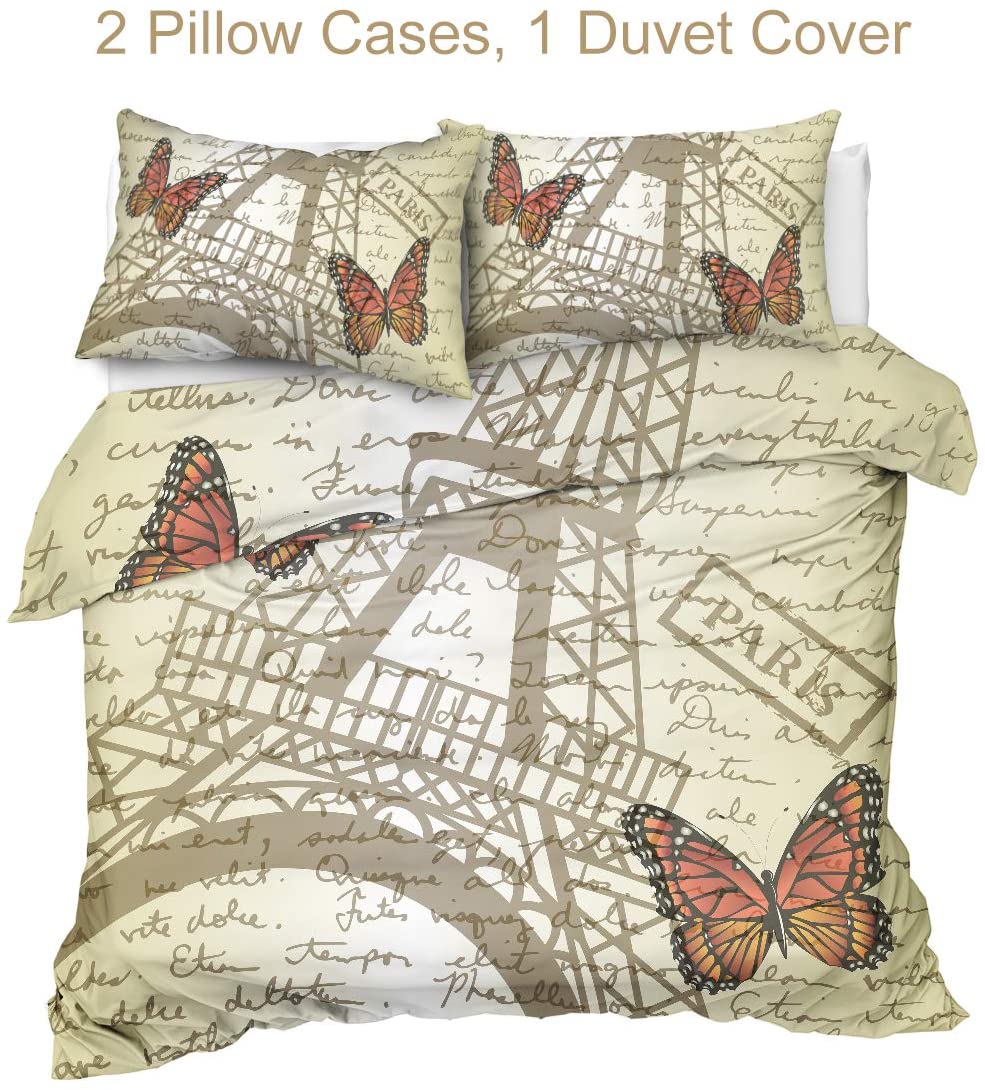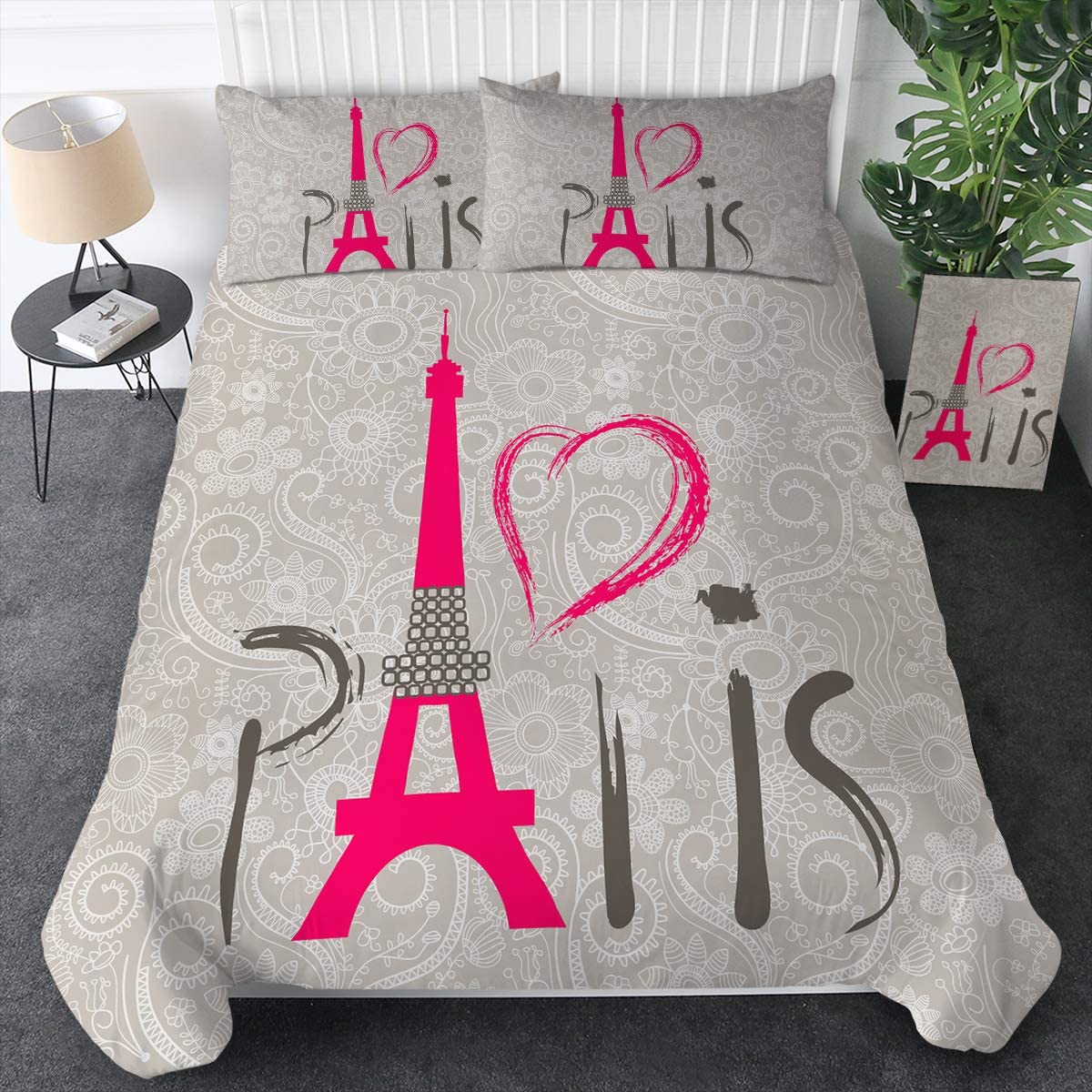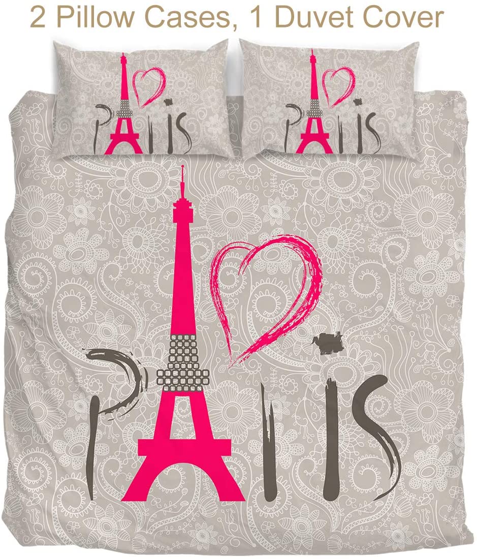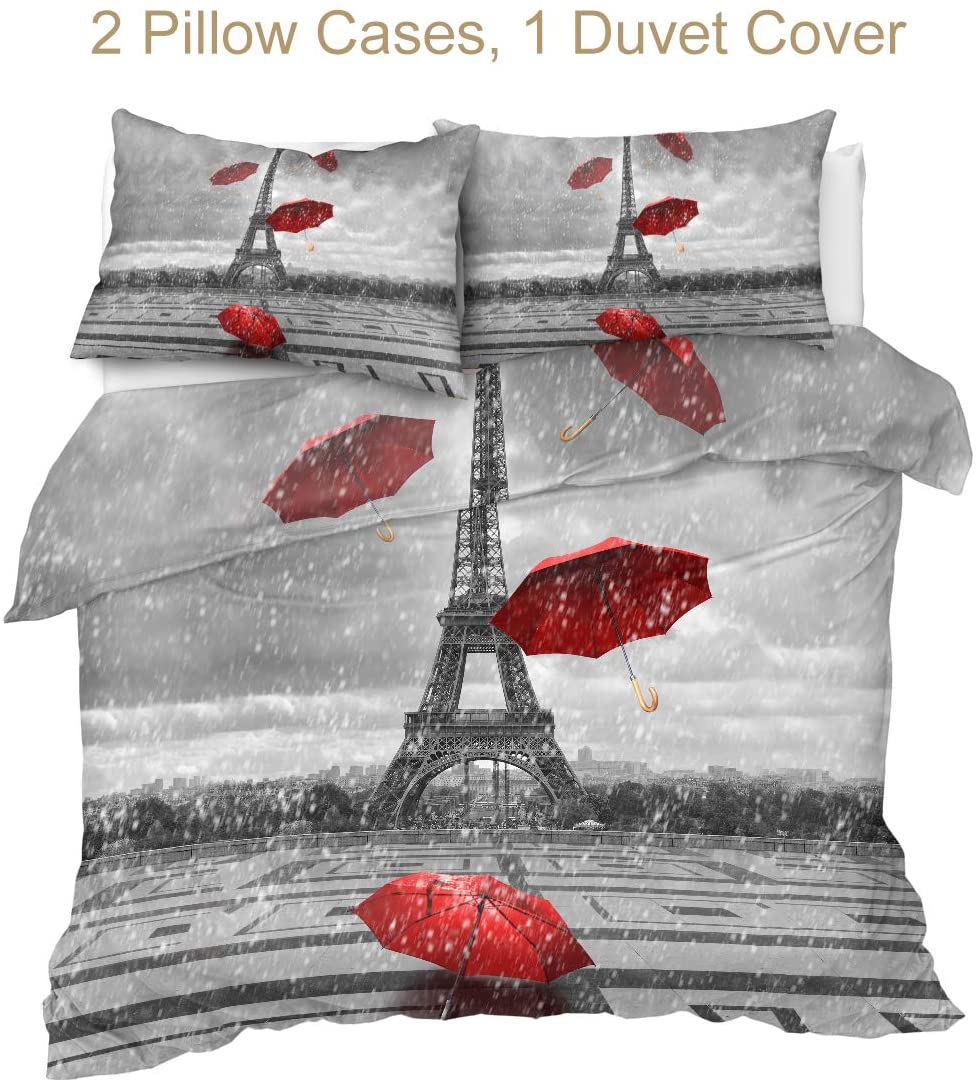 Eiffel Tower Bedding Red Umbrella in Rain Comforter Cover 3 Pieces France Duvet Cover Set
