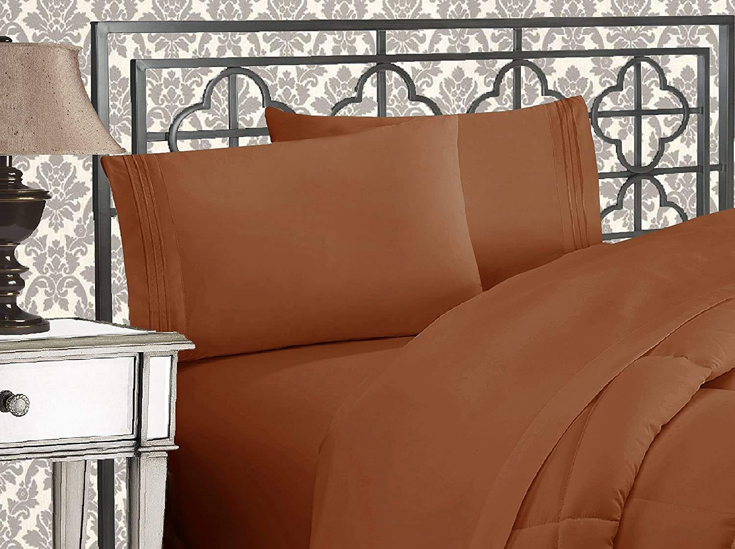 • Elegant Comfort California King-size Dimensions - Flat sheet 108" x 102", Fitted sheet 72" x 84", 2 King pillowcases 20" x 40" - Fits Mattresses up to 16" -- 100% Satisfaction Guaranteed !
