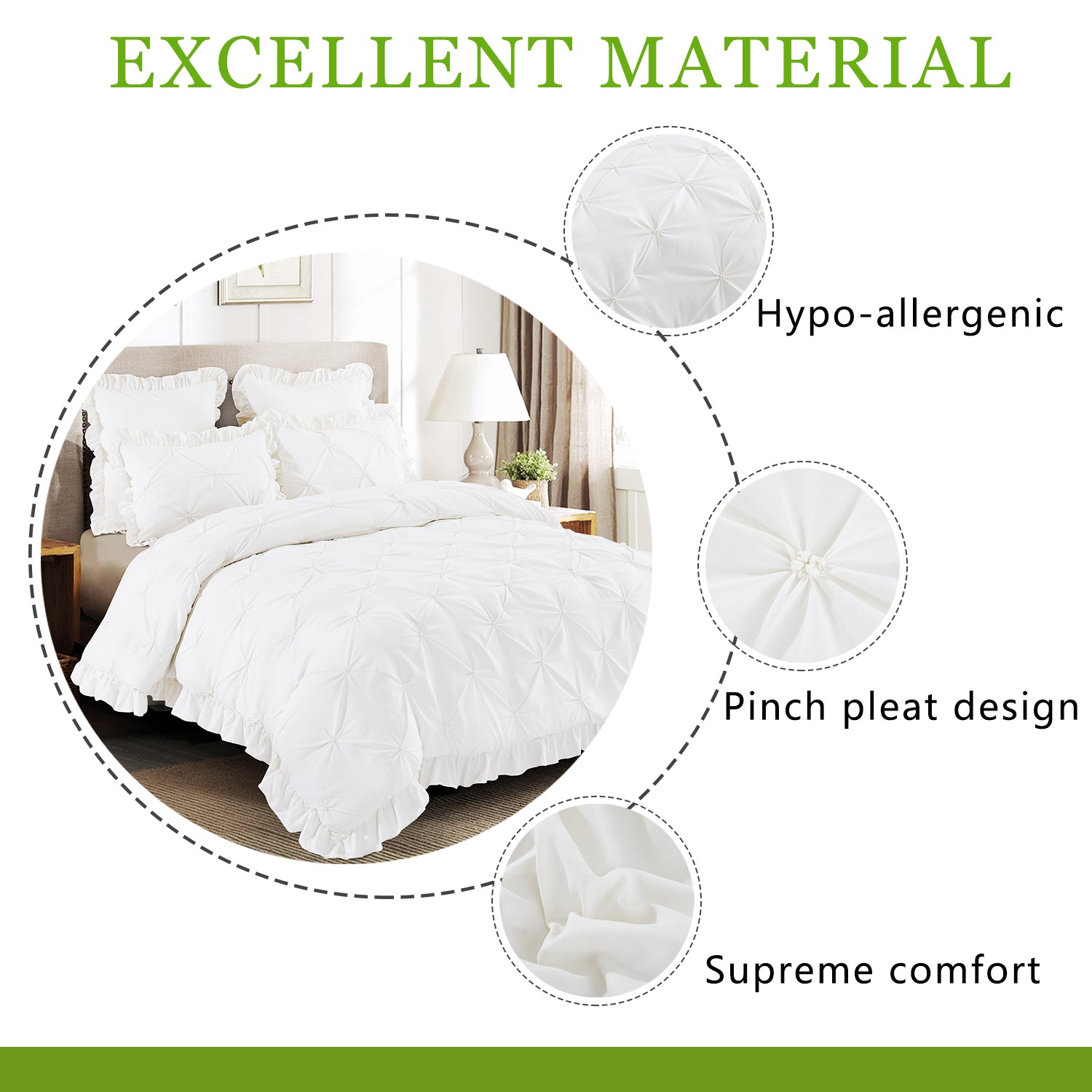 • 5 Piece Pinch Pleat Scallop Fringe Bedding Embroidered Comforter Set