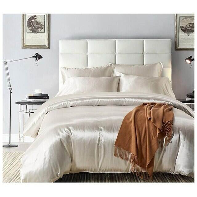 Soft Silky Satin Duvet Cover Pillowcases White Bedding 3 pcs Set