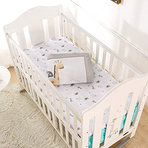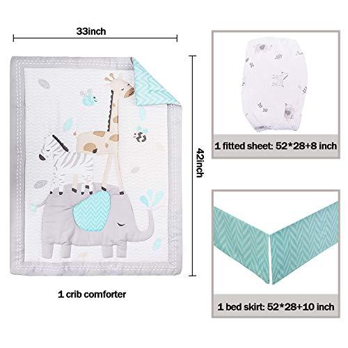3 Piece Crib Bedding Set Grey Elephant and Zebra Baby Elephant Crib Set for Boy and Girl