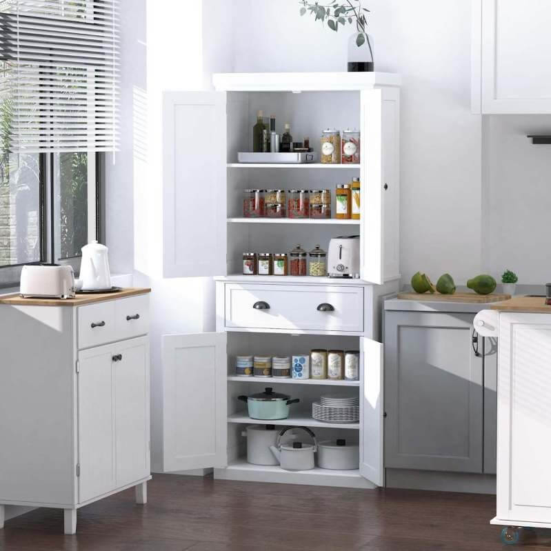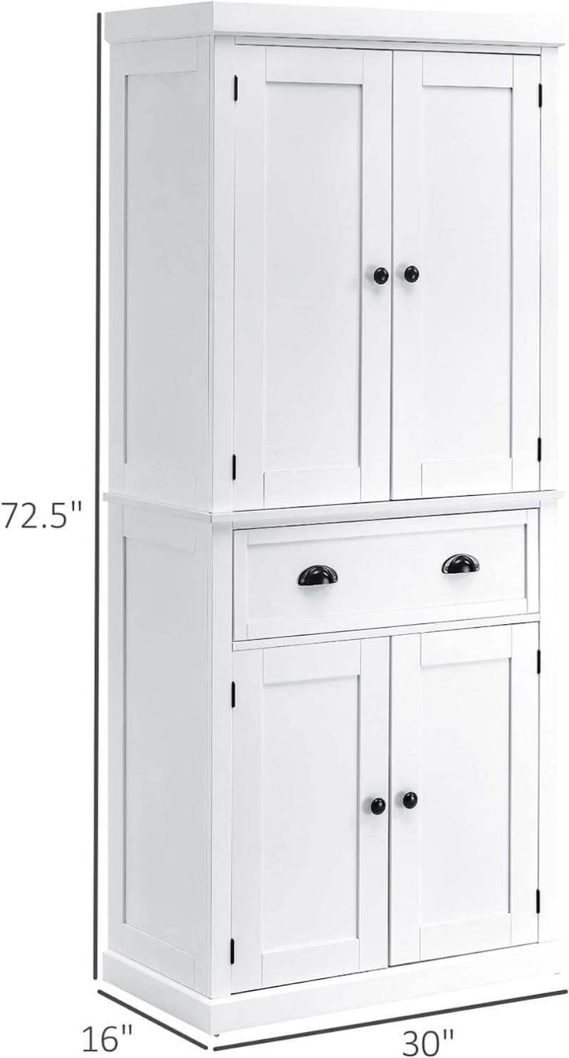 - Versatile Storage Solution: Features a single center drawer with both the upper and lower doors opening to 1 fixed and 2 fully adjustable shelves, the pantry organizer allows for flexible storage space that fits your individual needs.