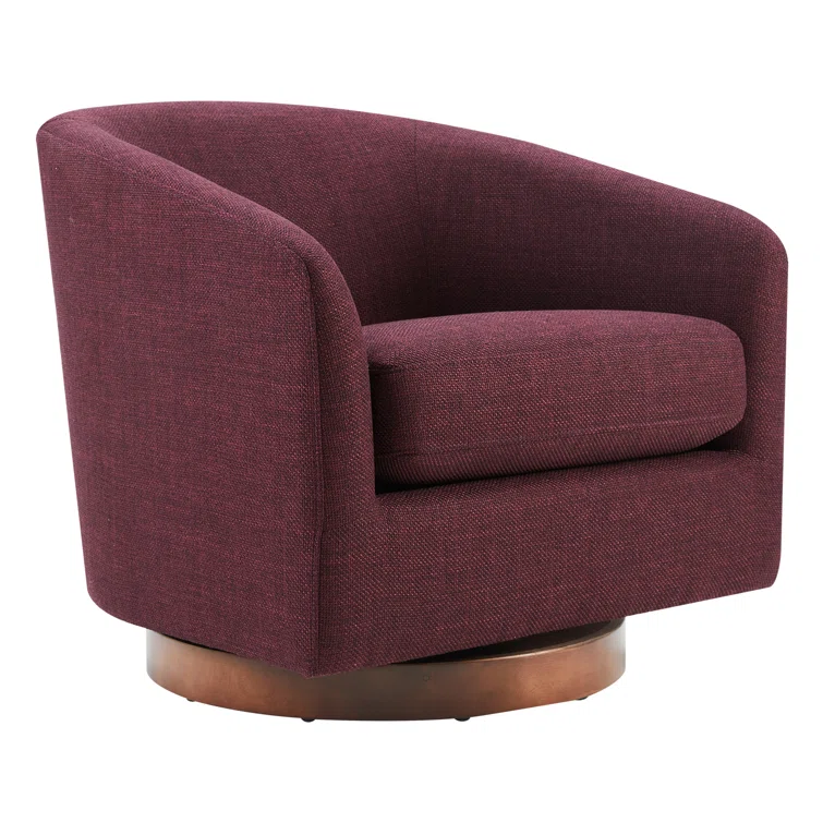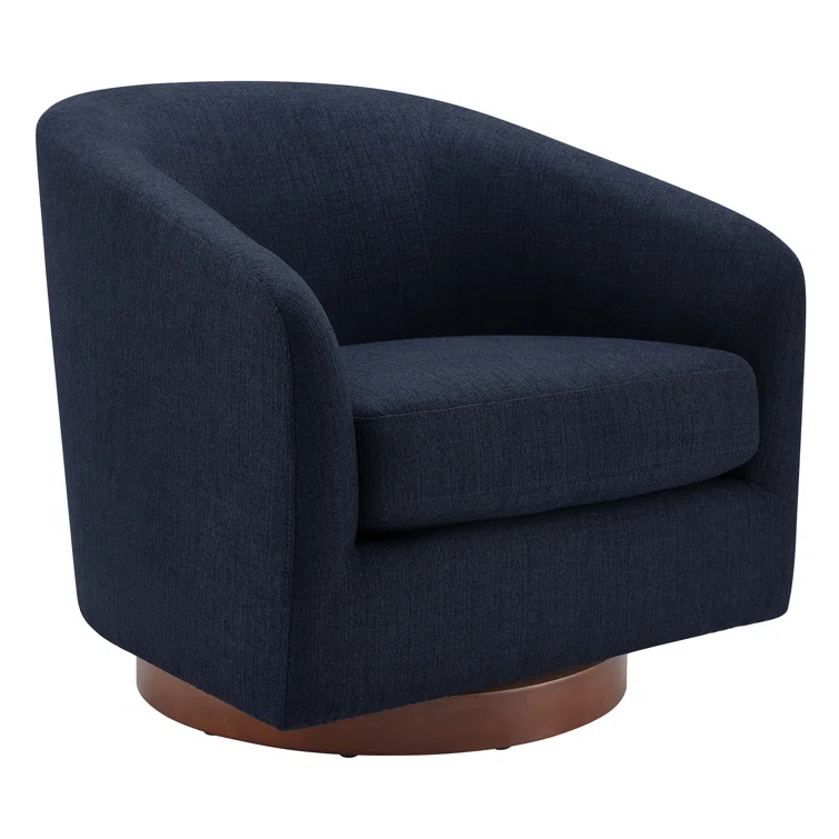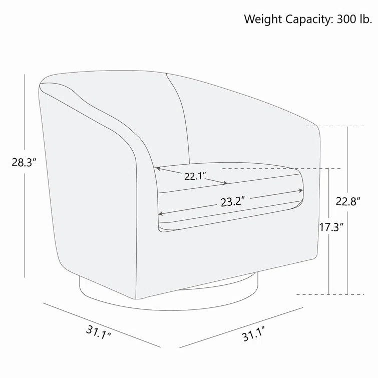 Modern momentum. This barrel chair pairs a curving silhouette with a convenient 360° swiveling function. Crafted from solid and engineered wood, its frame features a tight back that slopes into the arms for a contoured feel. We love that the web suspension is layered in high-density foam for comfort and support, all wrapped in tear-resistant upholstery available in a wide range of hues and fabrics. Bonus: The seat cushion has a removable cover with a zipper closure for easy cleaning. It has a weight capacity of 300 lbs.