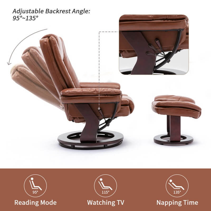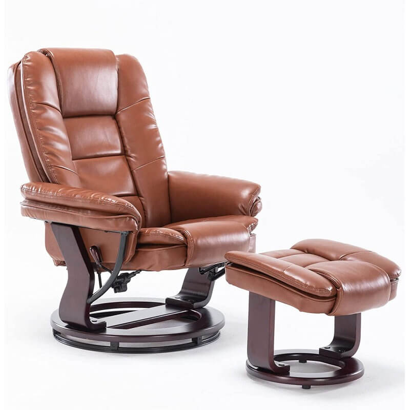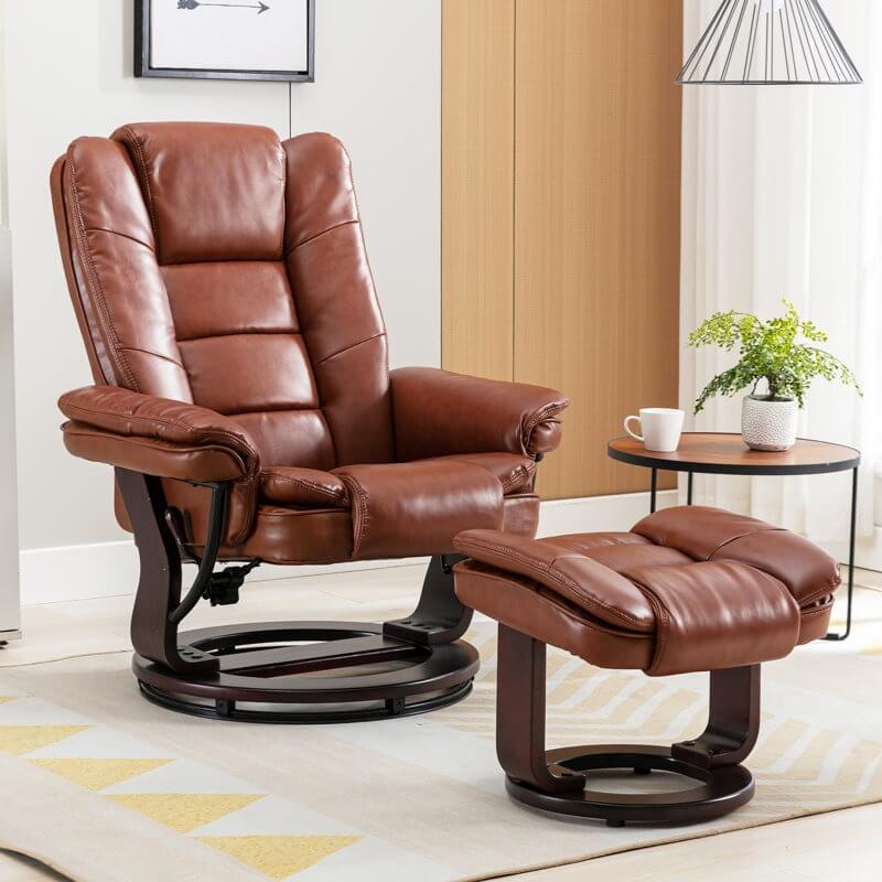 Get cozy and relaxed at the end of a long day with this LeatherSoft upholstered recliner chair and ottoman set. Designed to deliver exceptional comfort with long-lasting durability, our swivel recliner is an ultra-comfy, stylish addition to any living room, bedroom, mancave or reading space. When you want a smooth, high-end look and feel for your space, this chair and ottoman set is the way to go.