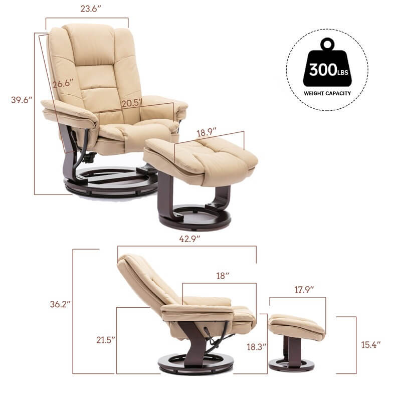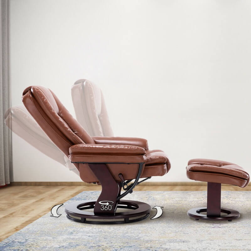 Get cozy and relaxed at the end of a long day with this LeatherSoft upholstered recliner chair and ottoman set. Designed to deliver exceptional comfort with long-lasting durability, our swivel recliner is an ultra-comfy, stylish addition to any living room, bedroom, mancave or reading space. When you want a smooth, high-end look and feel for your space, this chair and ottoman set is the way to go.