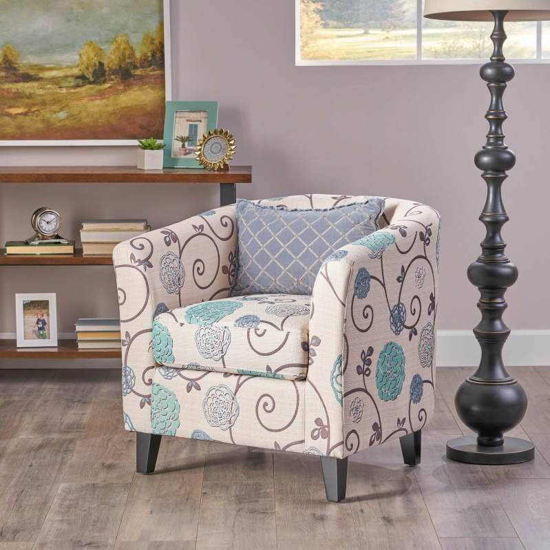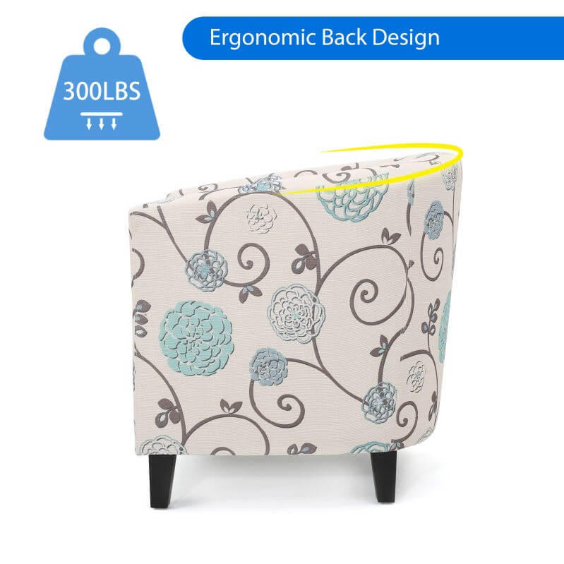 Transform any room to a stylish space with comfortable seating with this club chair. Not only does it give your guests a comfortable place to relax and converse, but it is simple enough to allow this chair to be either a staple or an accent piece. This chair is a great addition for any room. With the bright, soul soothing pattern of this chair, it is sure to lift anyone's spirit. Place it near a window and you will feel as if you are sitting outside on a grassy hill with the breeze flowing through your hair. Have the freedom to design your room without being hided by your furniture. This piece provides the perfect way to unwind after a long week.