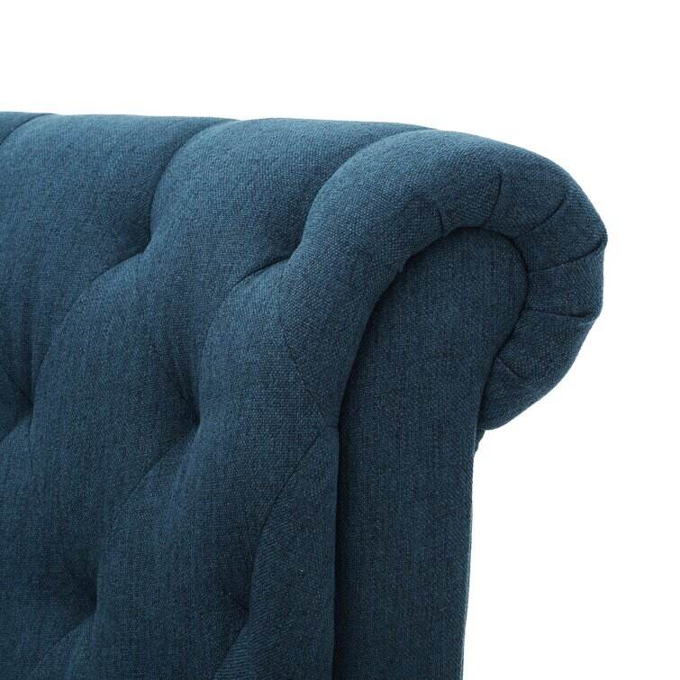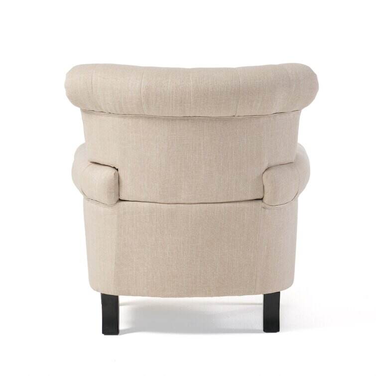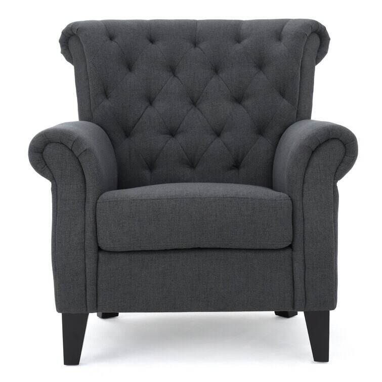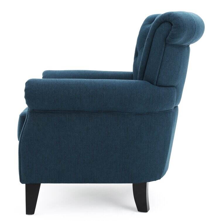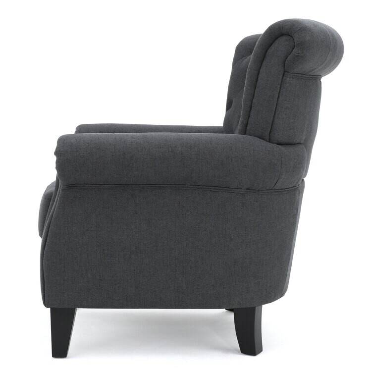 Make a timeless and stylish addition to your living room in the form of this beautiful club chair. Featuring soft, smooth upholstery and cozy cushioning, this contemporary chair is incredibly inviting. Fine accents like tapered wood legs, button-accented diamond tufting, and nailhead trim promise a detailed look. Tied together by a sleek silhouette, a rolled back, and coordinating armrests, this modern chair is practical and pretty. Design a quaint little reading and conversation nook, or use this chair in your living room for added seating.