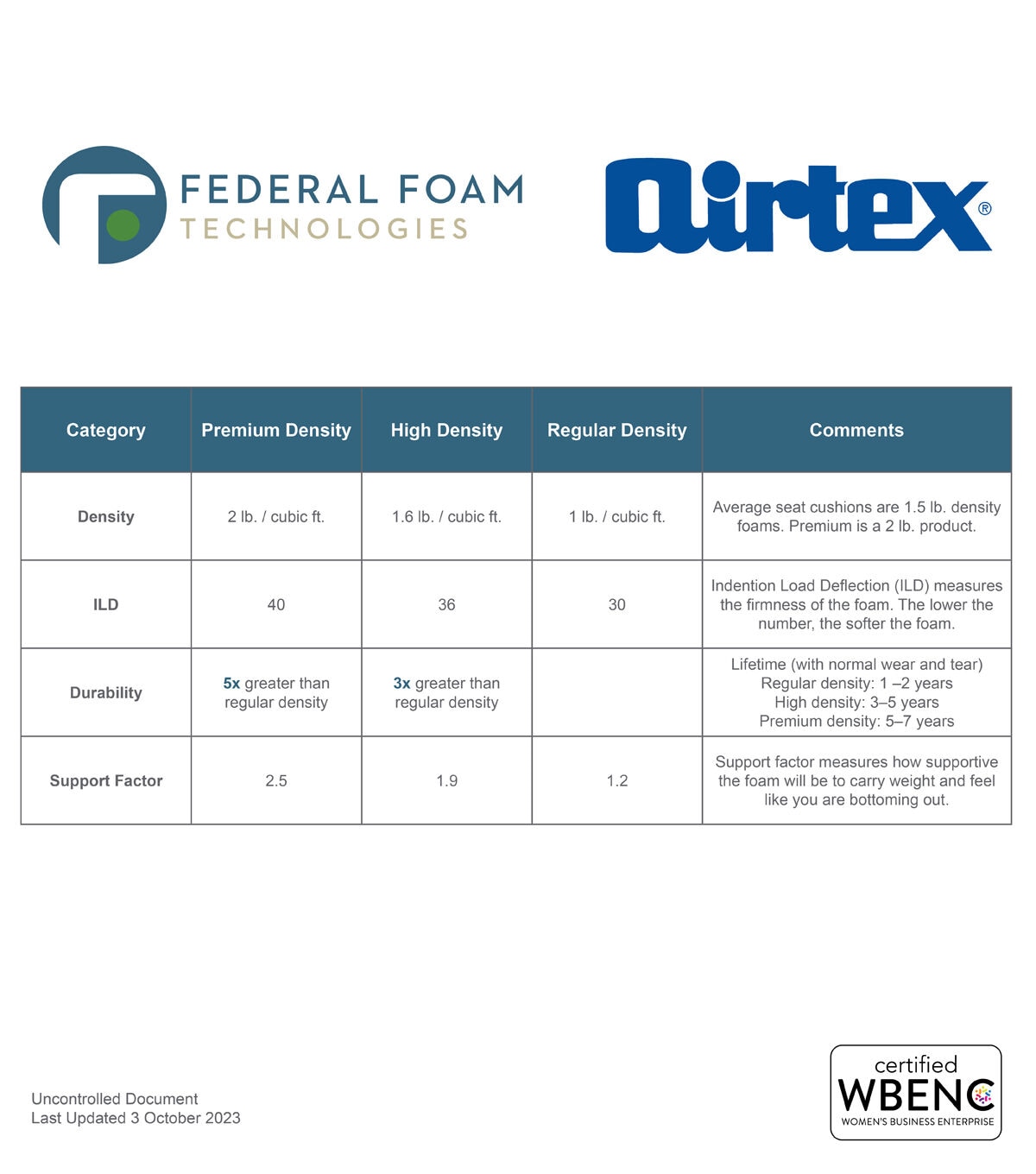 - Proudly manufactured by Federal Foam Technologies/Airtex, a certified Women's Business Enterprise (WBE) through the Women's Business Enterprise National Council (WBENC).