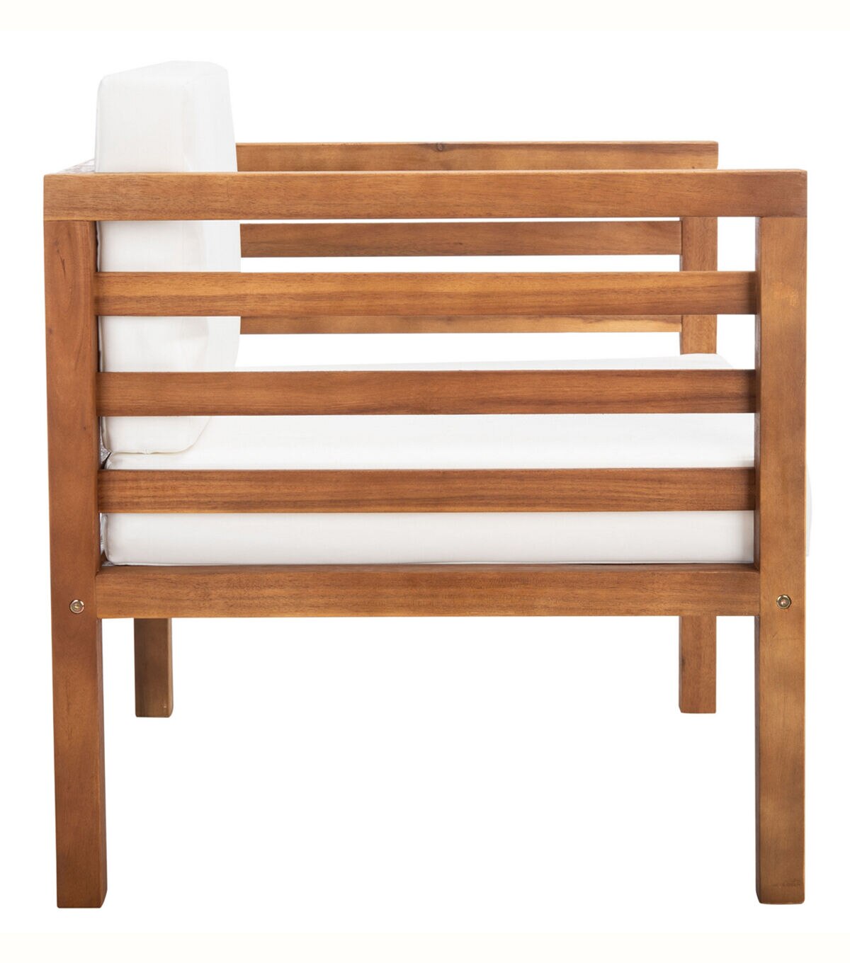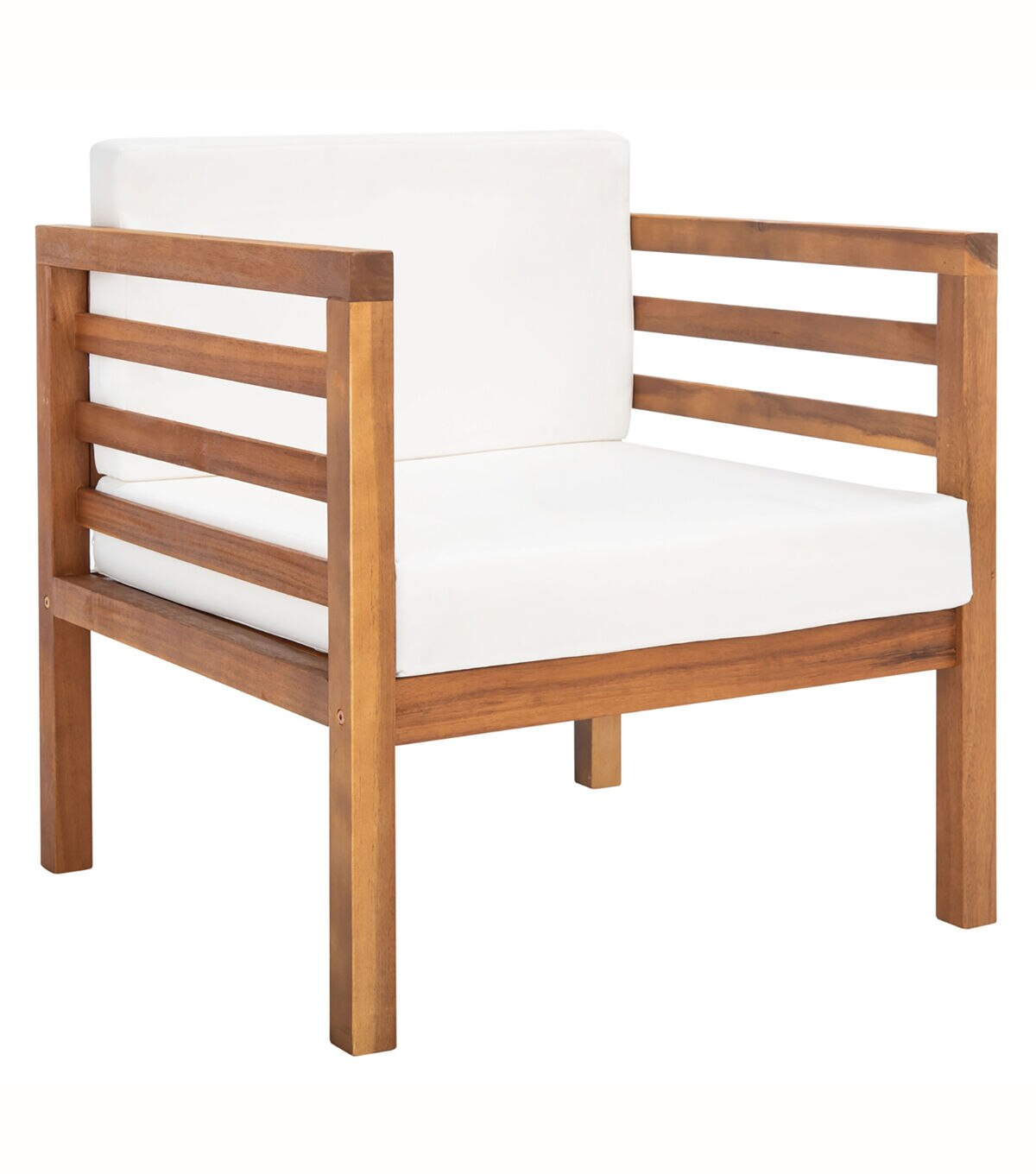 Enjoy the great outdoors in unrivaled comfort with this fabulous Kinnell Armchair. Beautifully styled with a clean-lined wood frame in a warm natural finish, Kinnell’s plush beige cushions provide lasting luxury that stands strong against the elements.