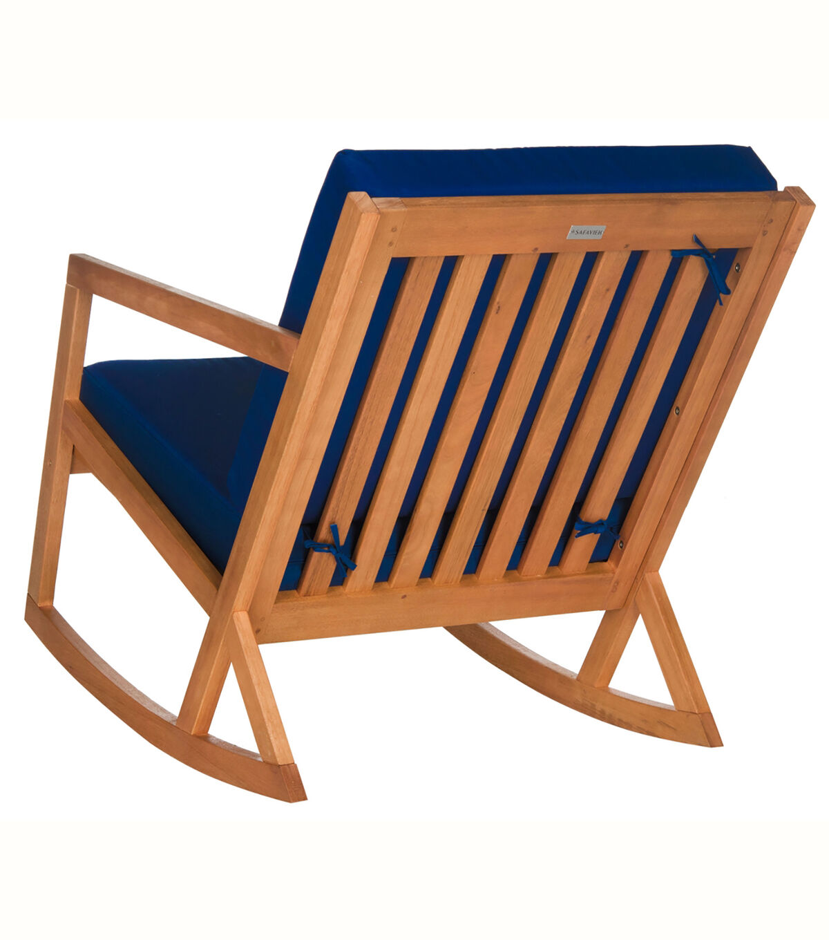 Safavieh 26" x 38" Natural & Navy Vernon Outdoor Rocking Chair
