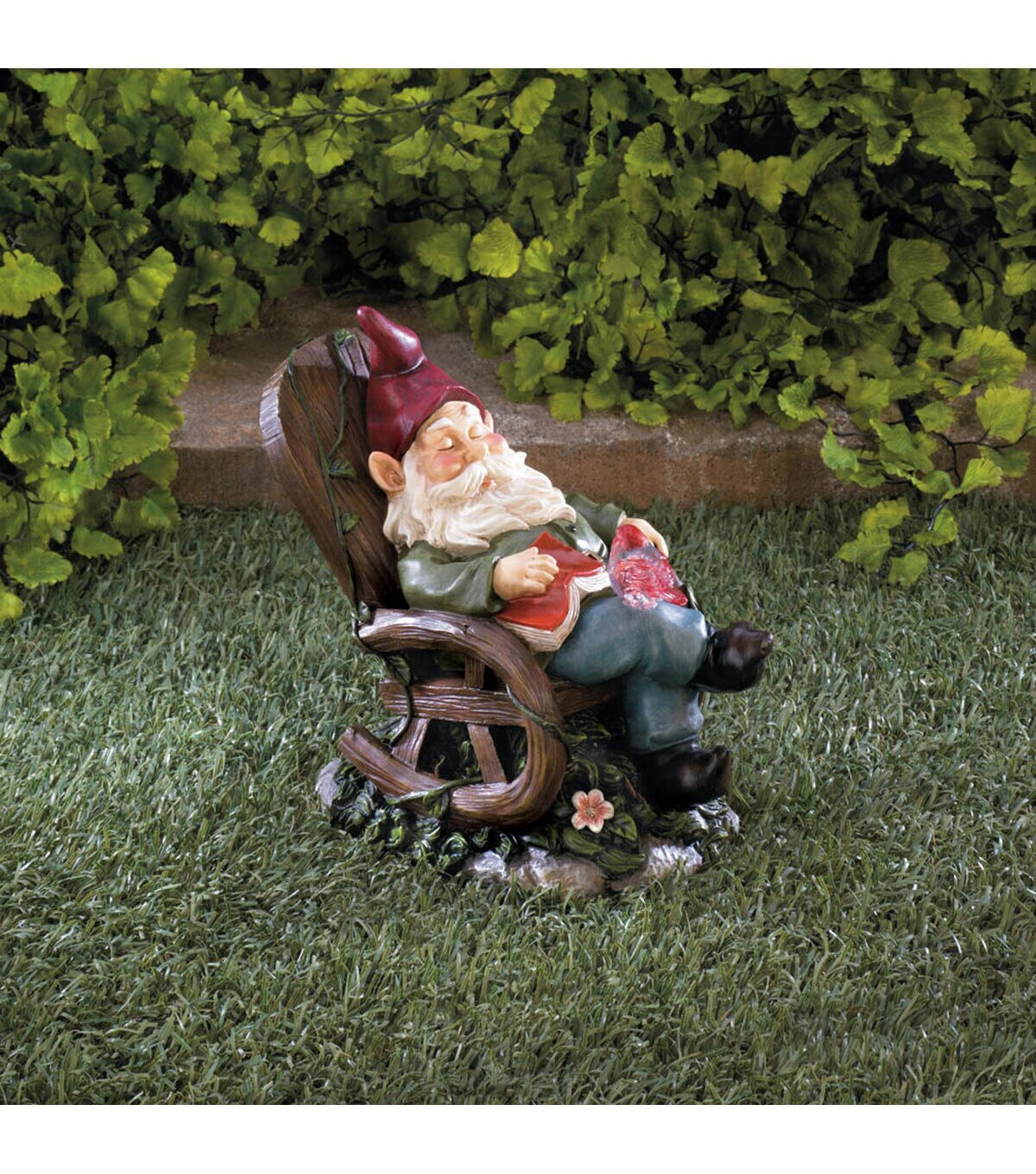 Zingz & Thingz Solar Red Bird Rocking Chair Gnome