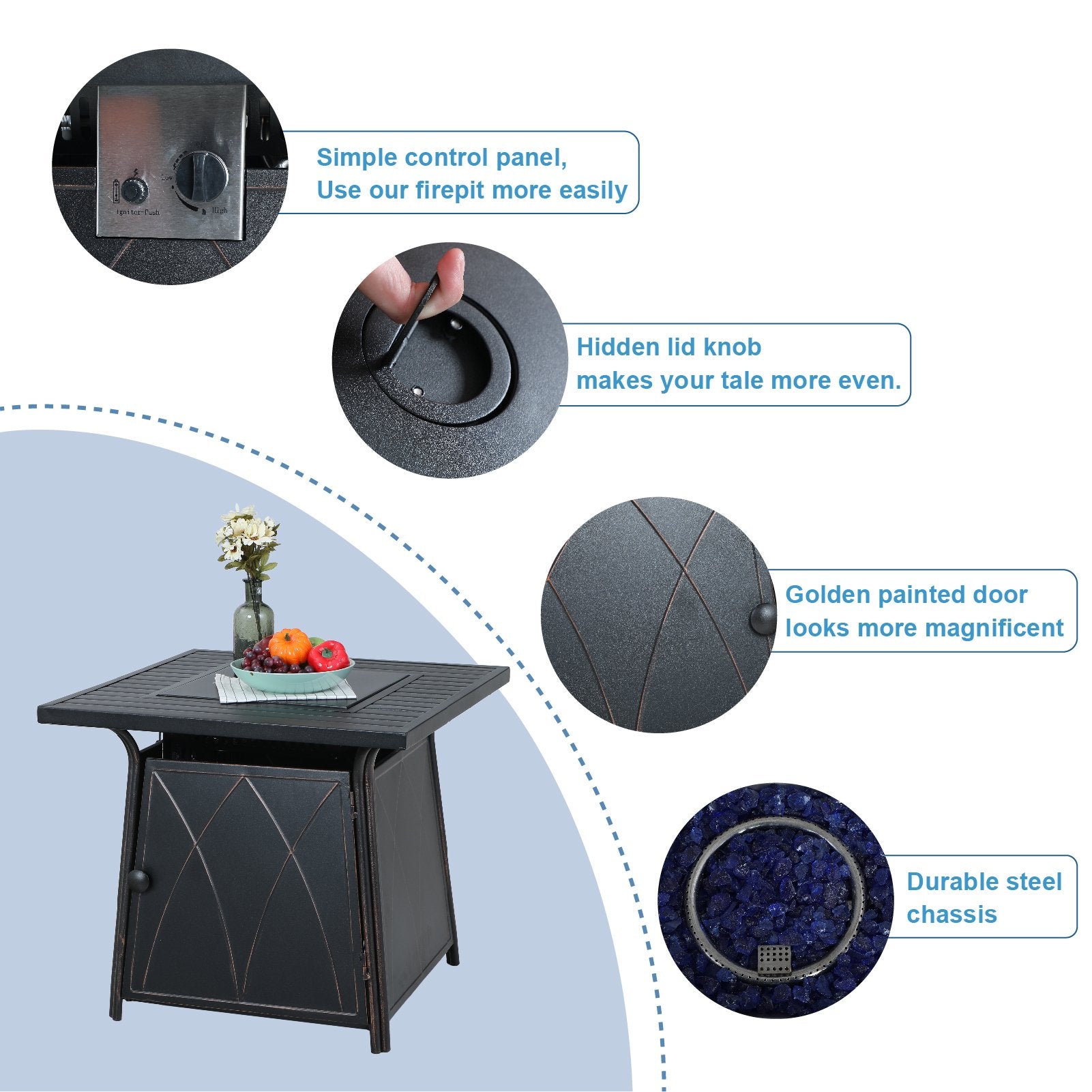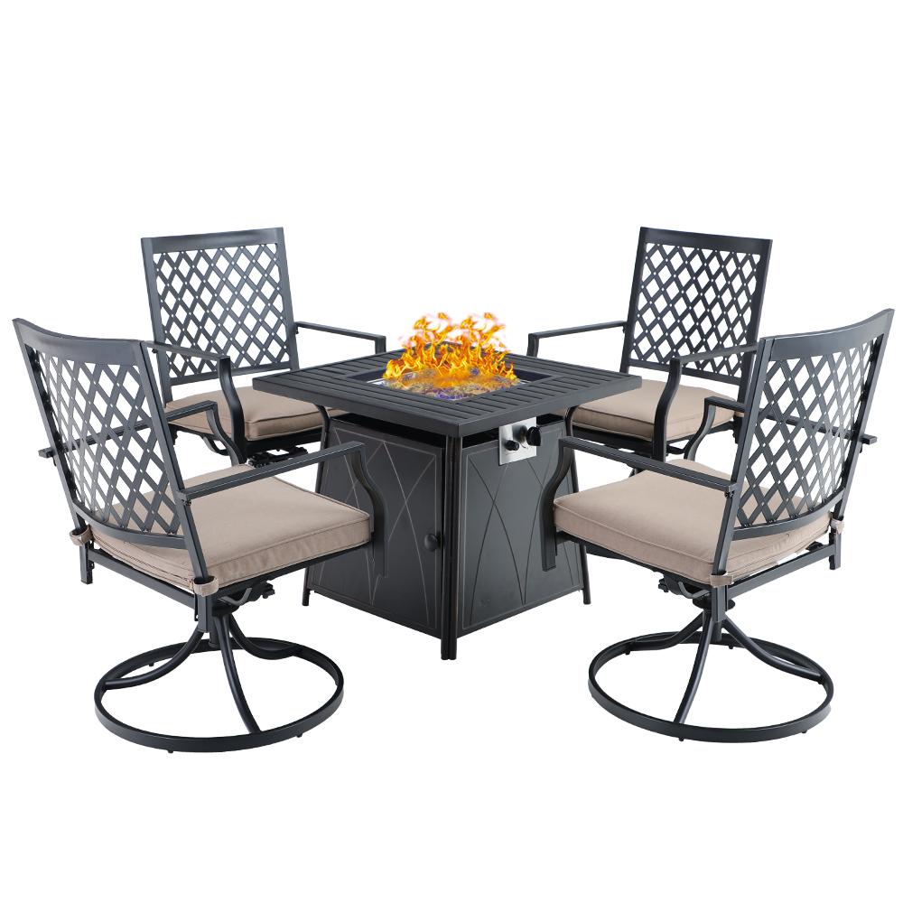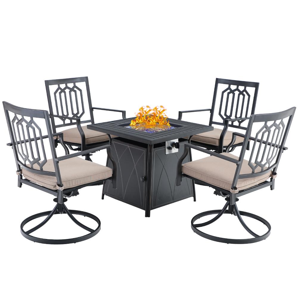 5-Piece Patio Fire Pit Set Steel Swivel Chairs With Cushions & 50,000BTU Square Fire Pit Table
