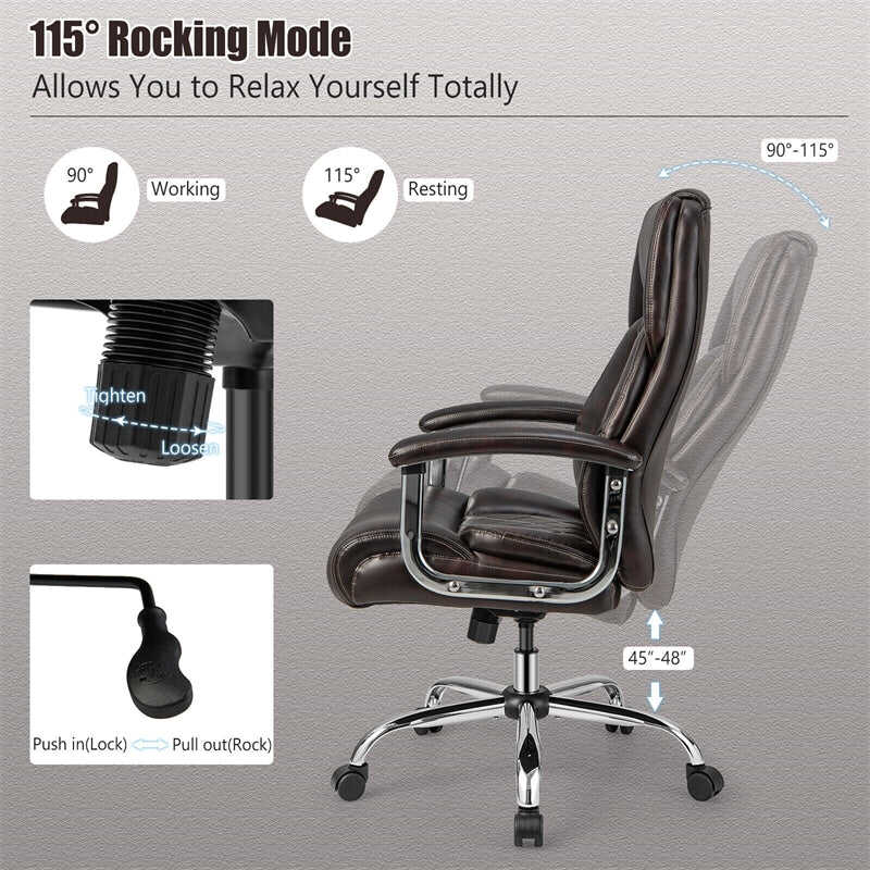 500lbs Height Adjustable Office Chair Swivel Computer Task Desk Chair Leather Executive Chair with Heavy Duty Metal Base