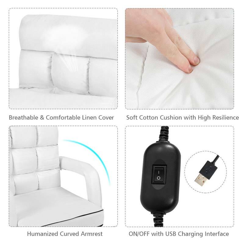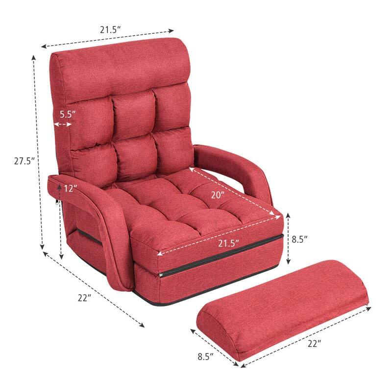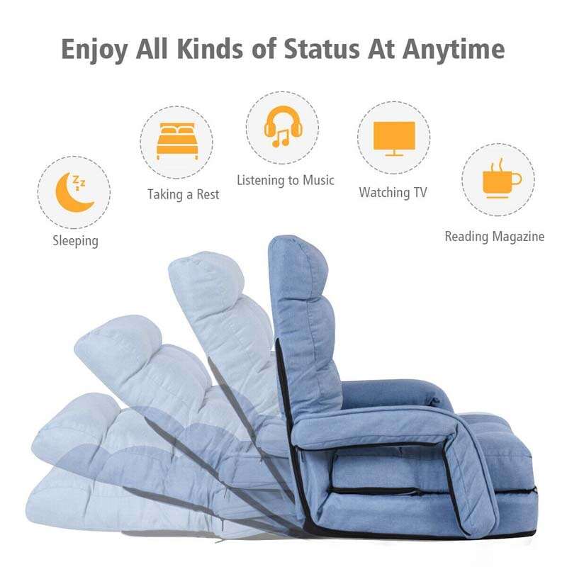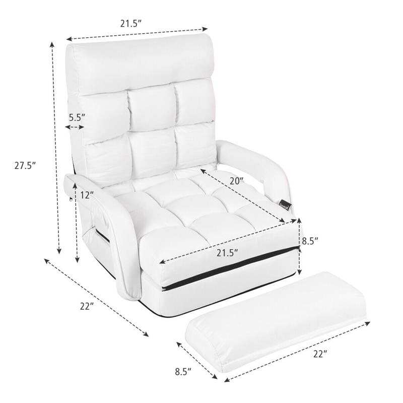 Foldable Massage Floor Chair Recliner, Single Lazy Sofa with Ergonomic Armrest, Adjustable 5 Backrest Positions & Detachable Mat