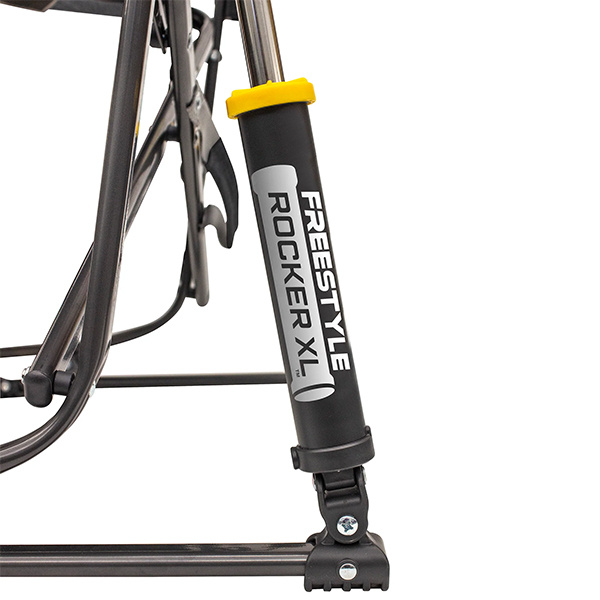 Patented spring-loaded shocks allow for smooth rocking motion.