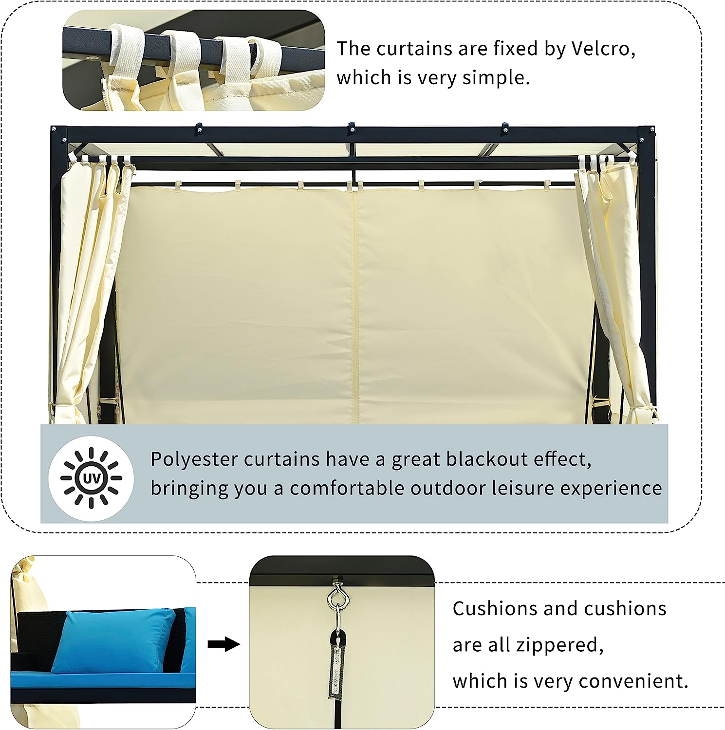 - 【ENOUGH SITTING SPACE】 This wicker garden patio furniture set includes 1 x patio swing bed, 1 x Gazebo . It can support up to 750lbs, comfortably swings up to 3 people. Ensuring a smooth, gentle swing experience.