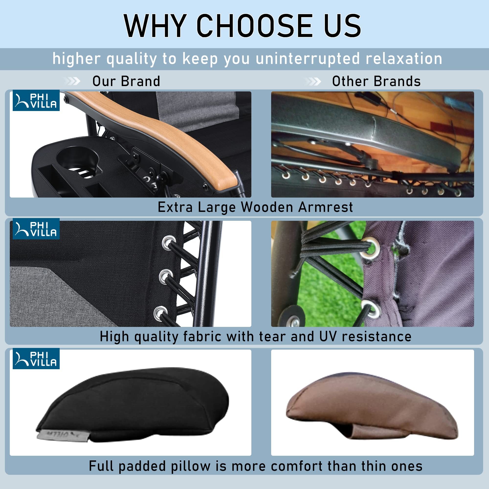 - Zero Gravity Reclining Chairs: The Length of extra long chair when fully reclined is large enough for big and tall people 6'2". Strong double bungee rope and stainless steel tube frame are durable for using a long time. The maximum loading capacity is 400lbs