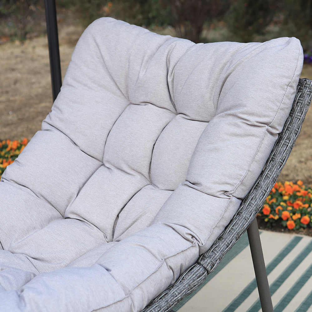 2-Piece Rattan Papasan Lounge Chair with Thick Cushions