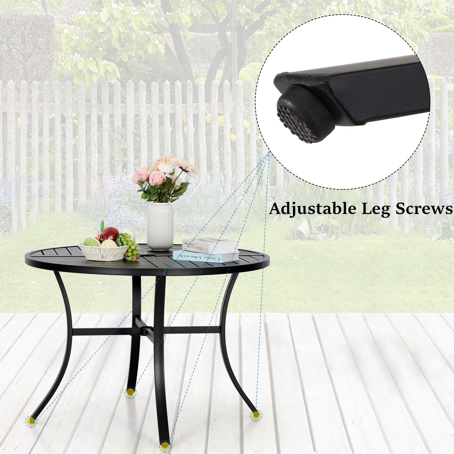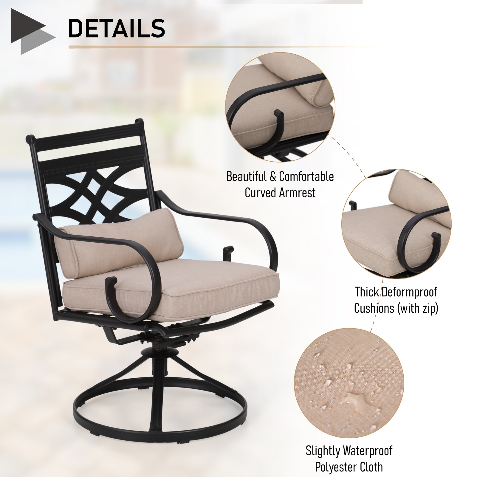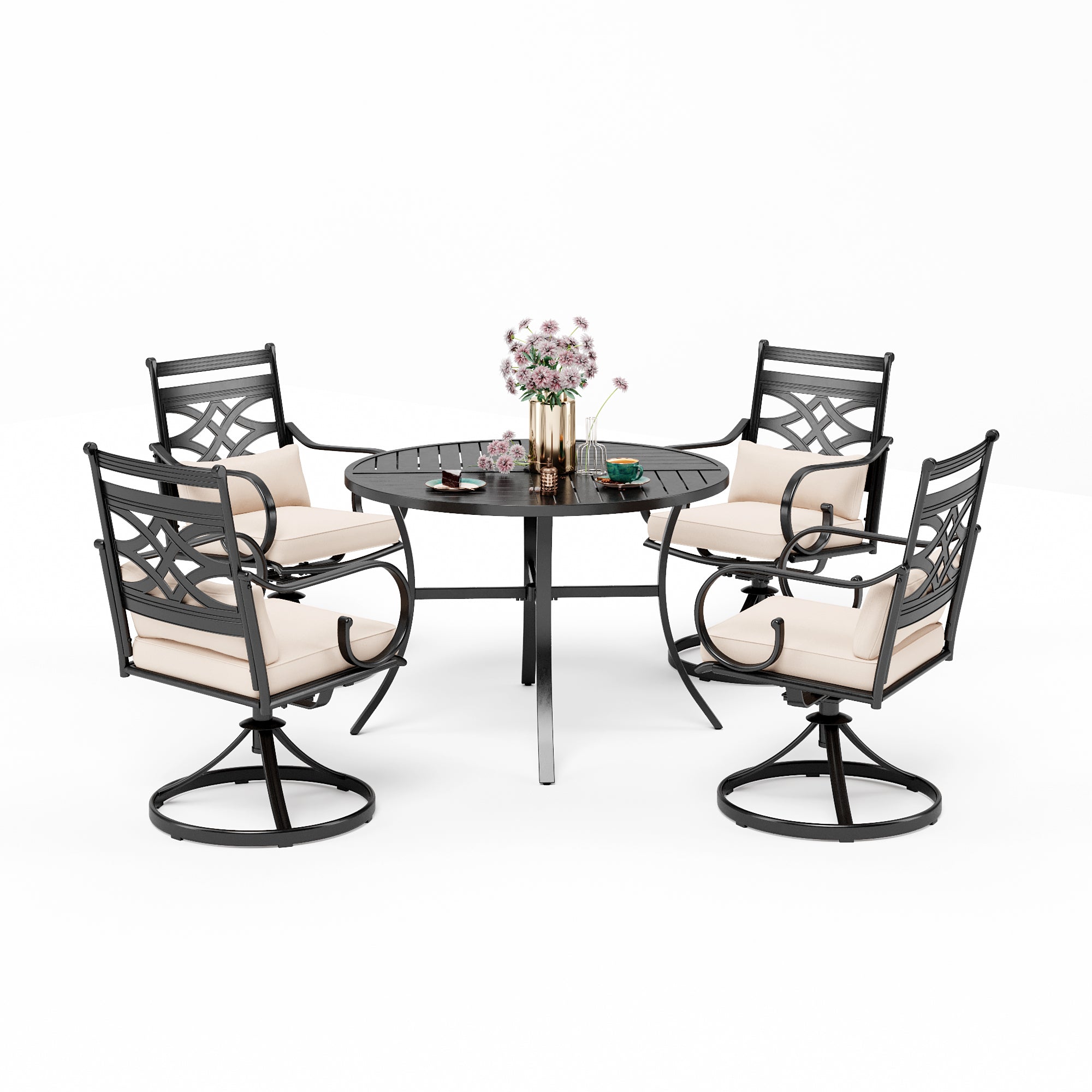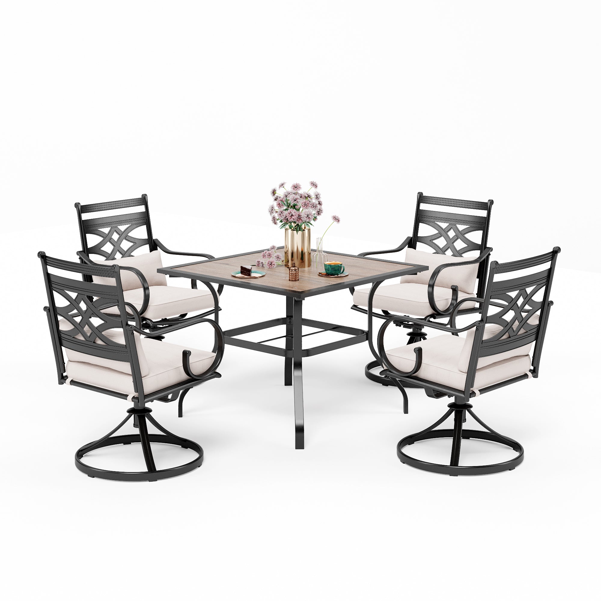 5-Piece Outdoor Dining Set 4 Swivel Steel Chairs and Square Table