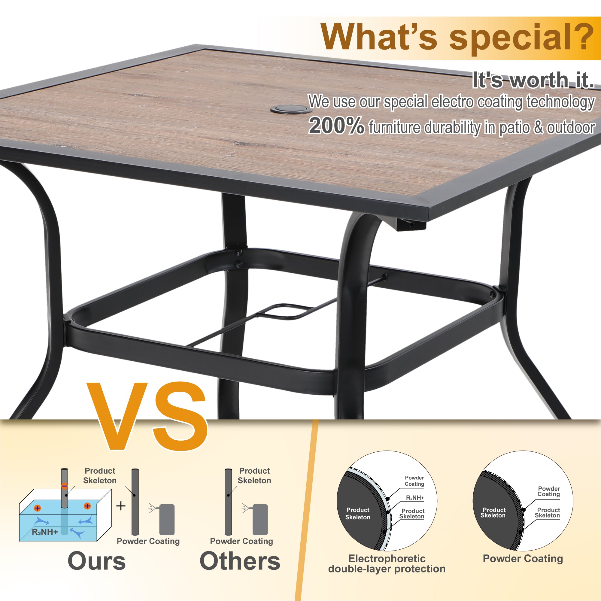 • Phi Villa 5-Piece Outdoor Dining Set Wood-look Square Table & 4 Textilene C-spring Chairs