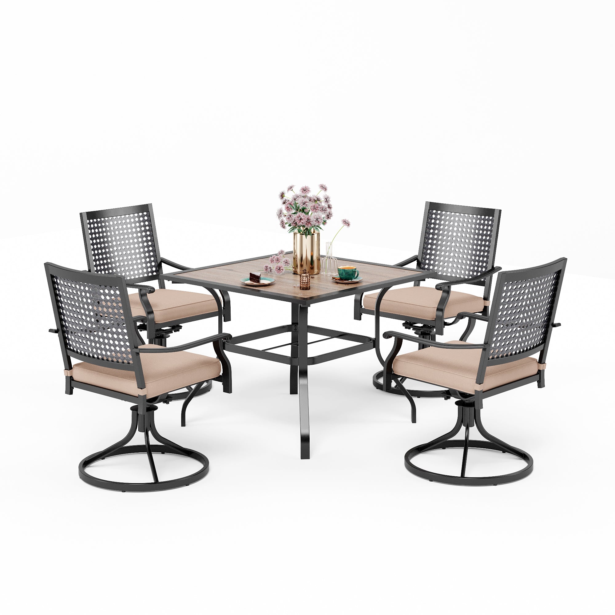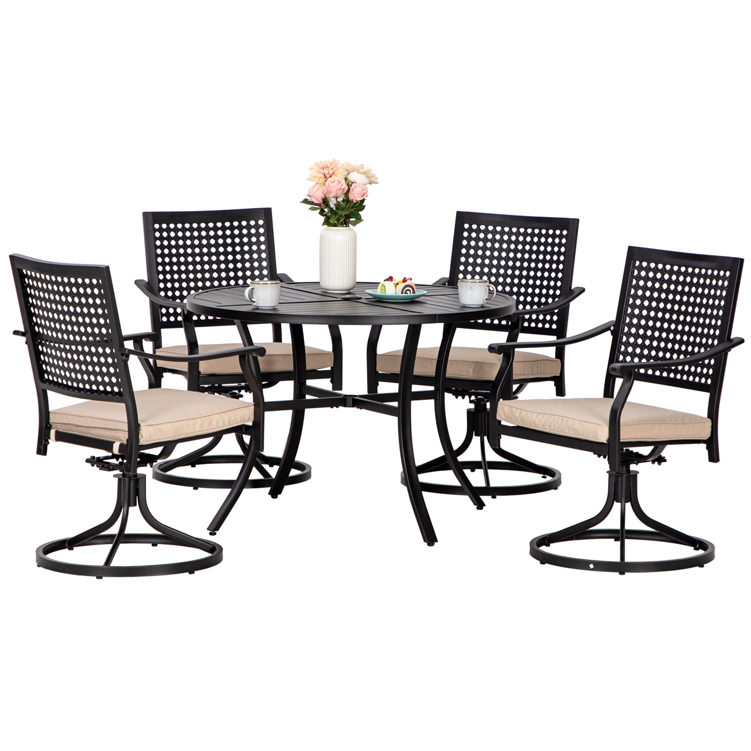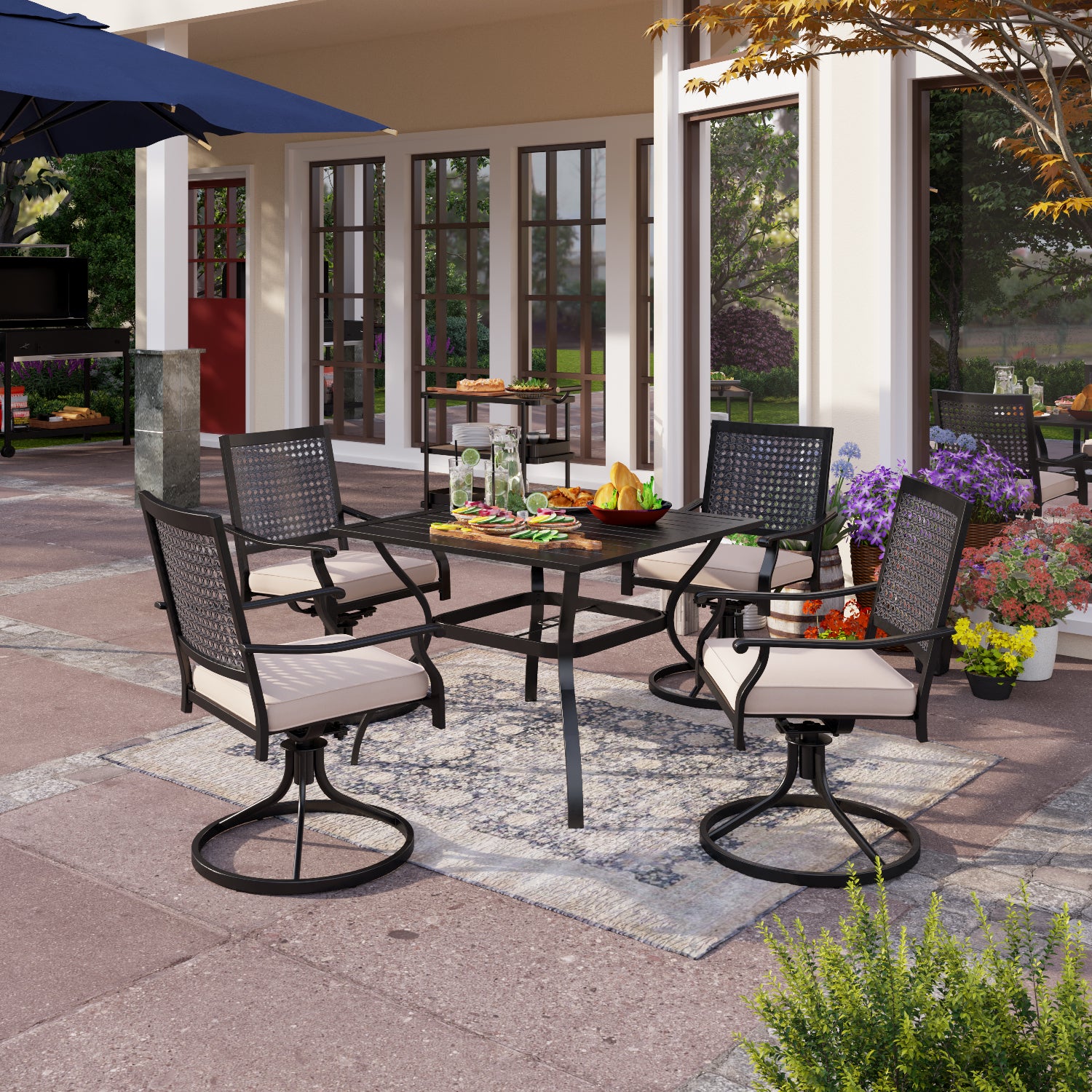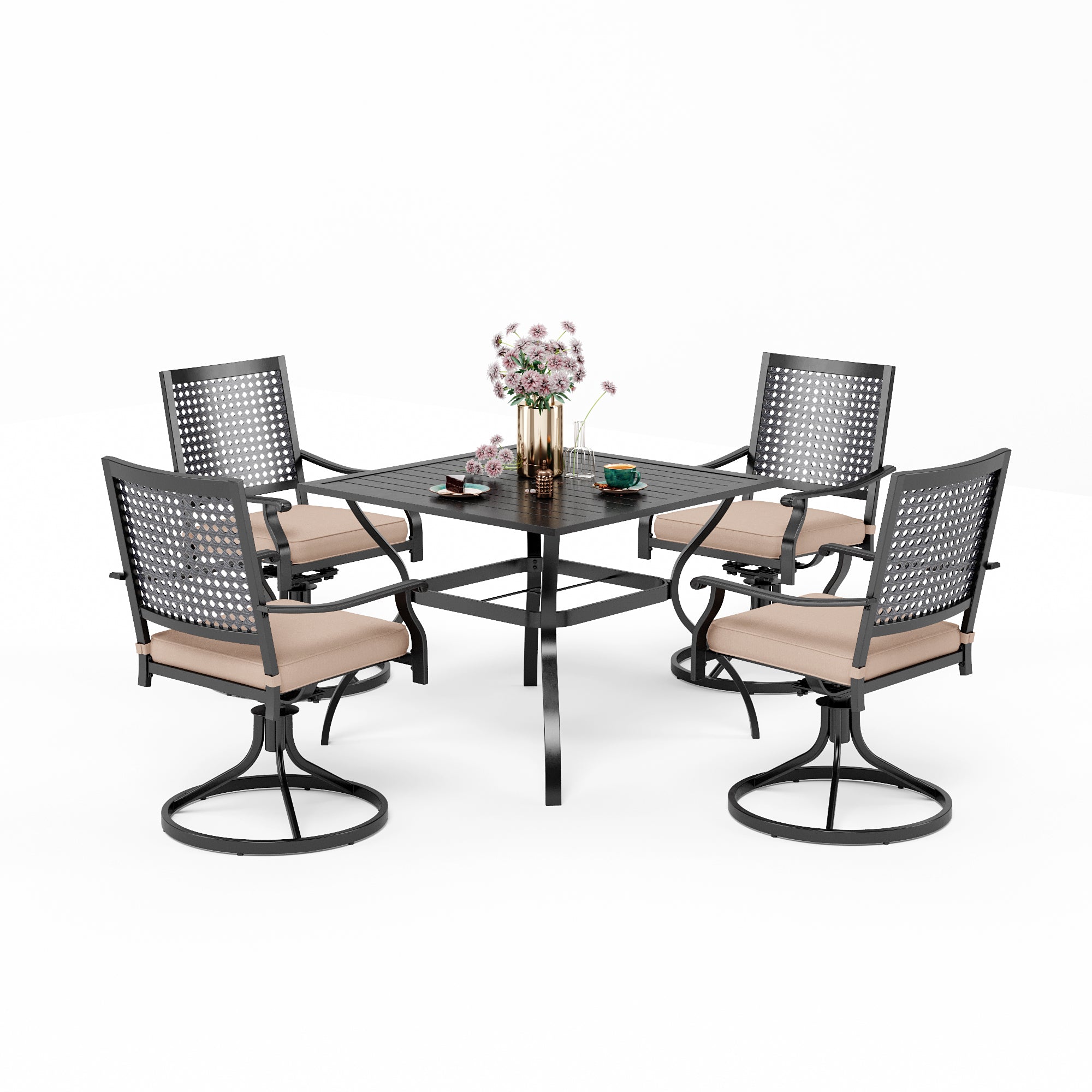 5-Piece Patio Dining Set 4 Swivel Chairs and Steel Table