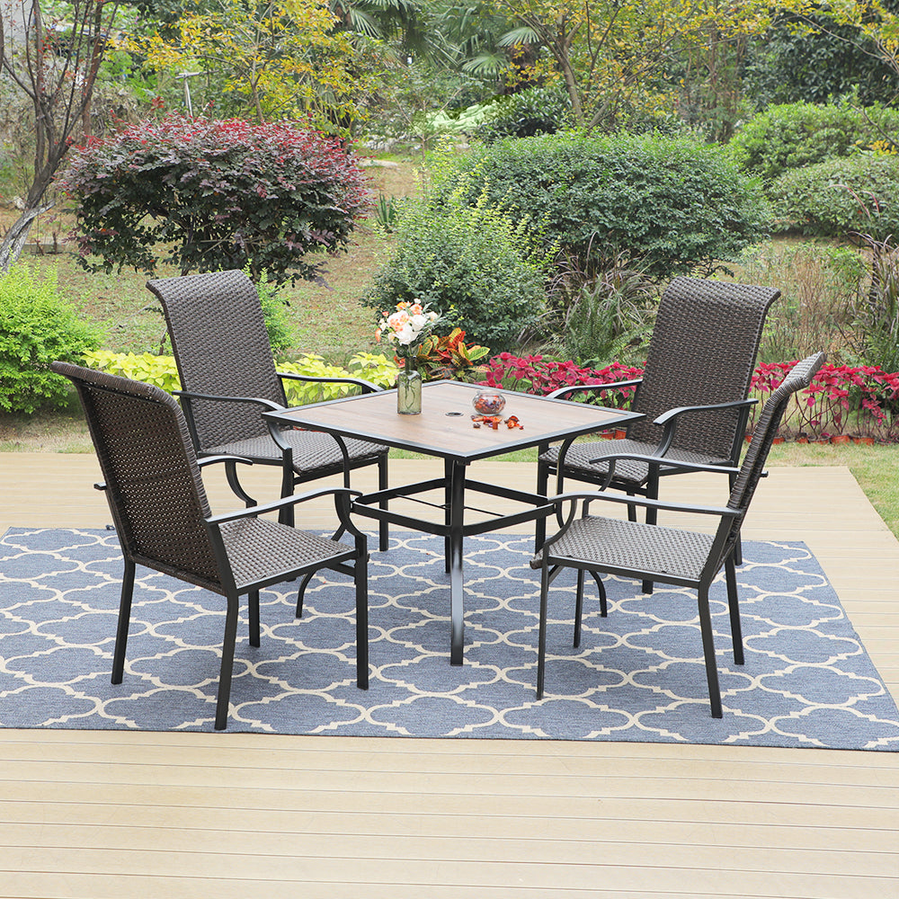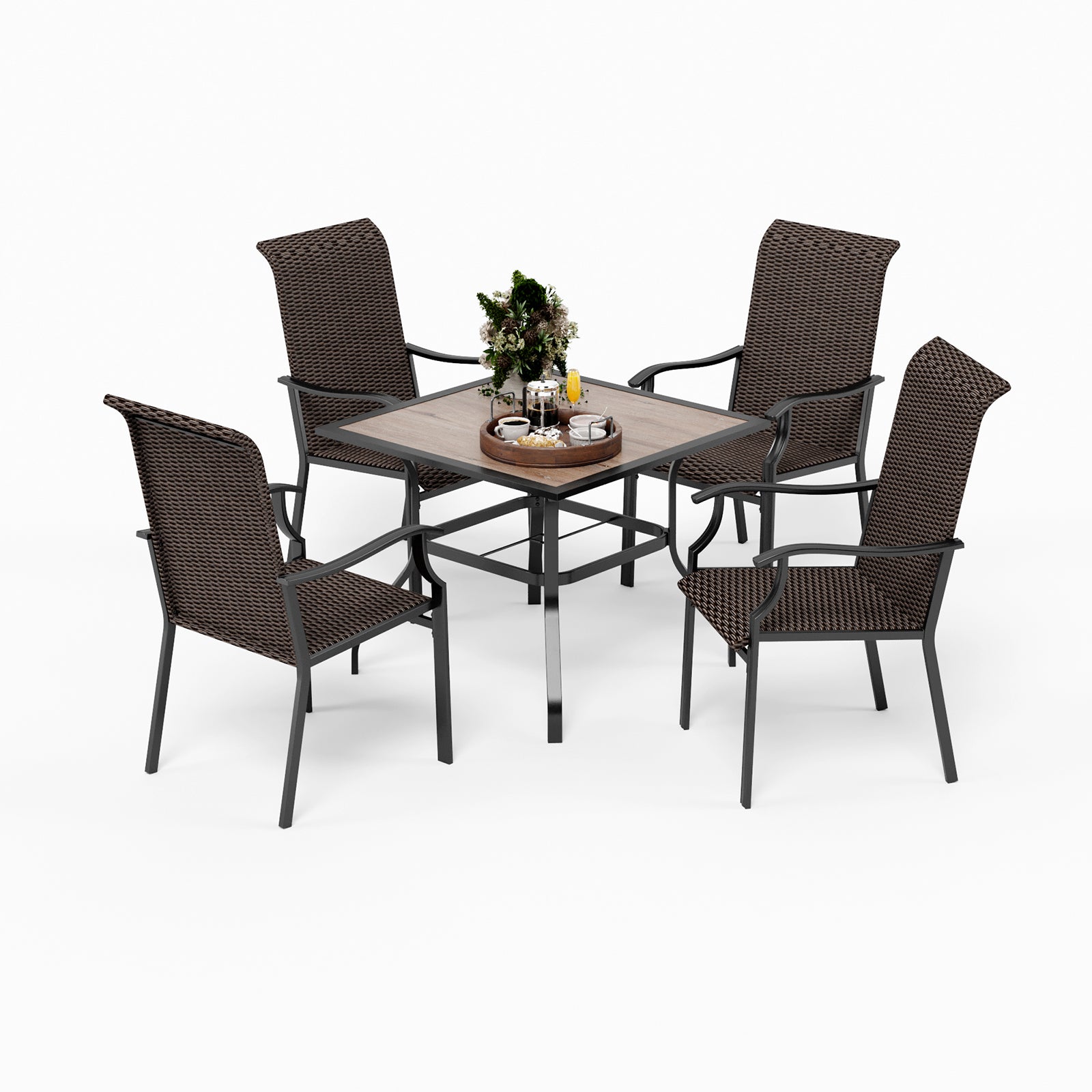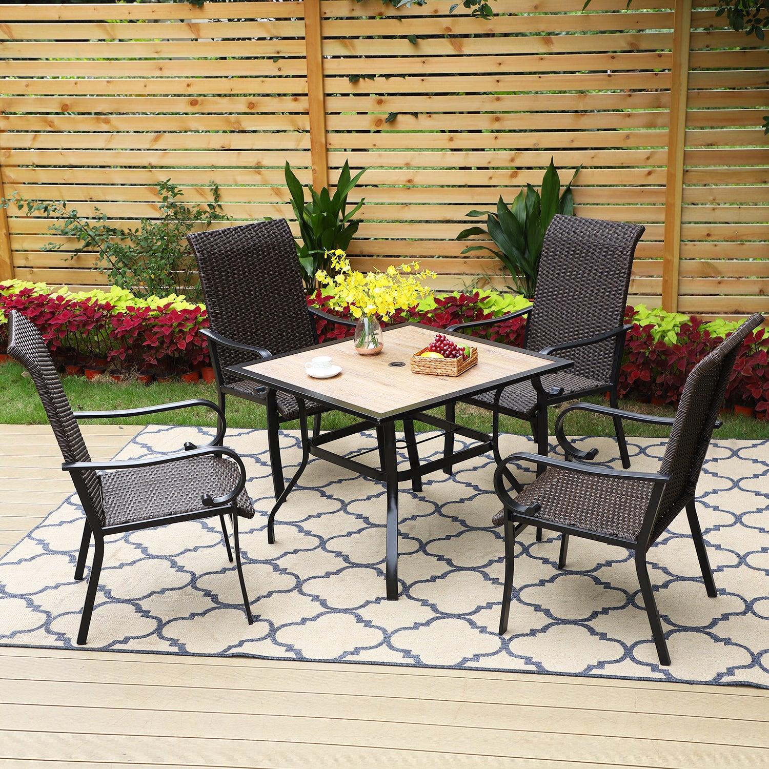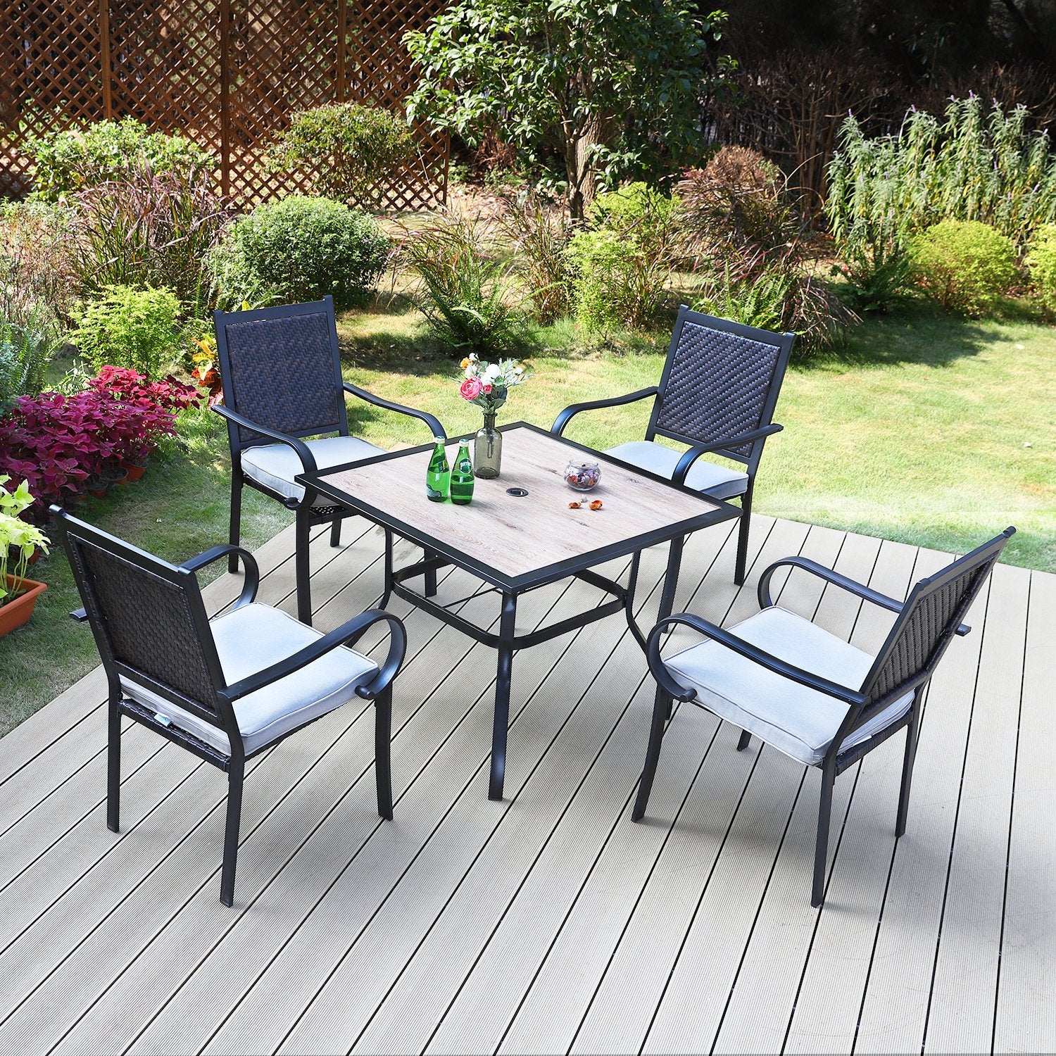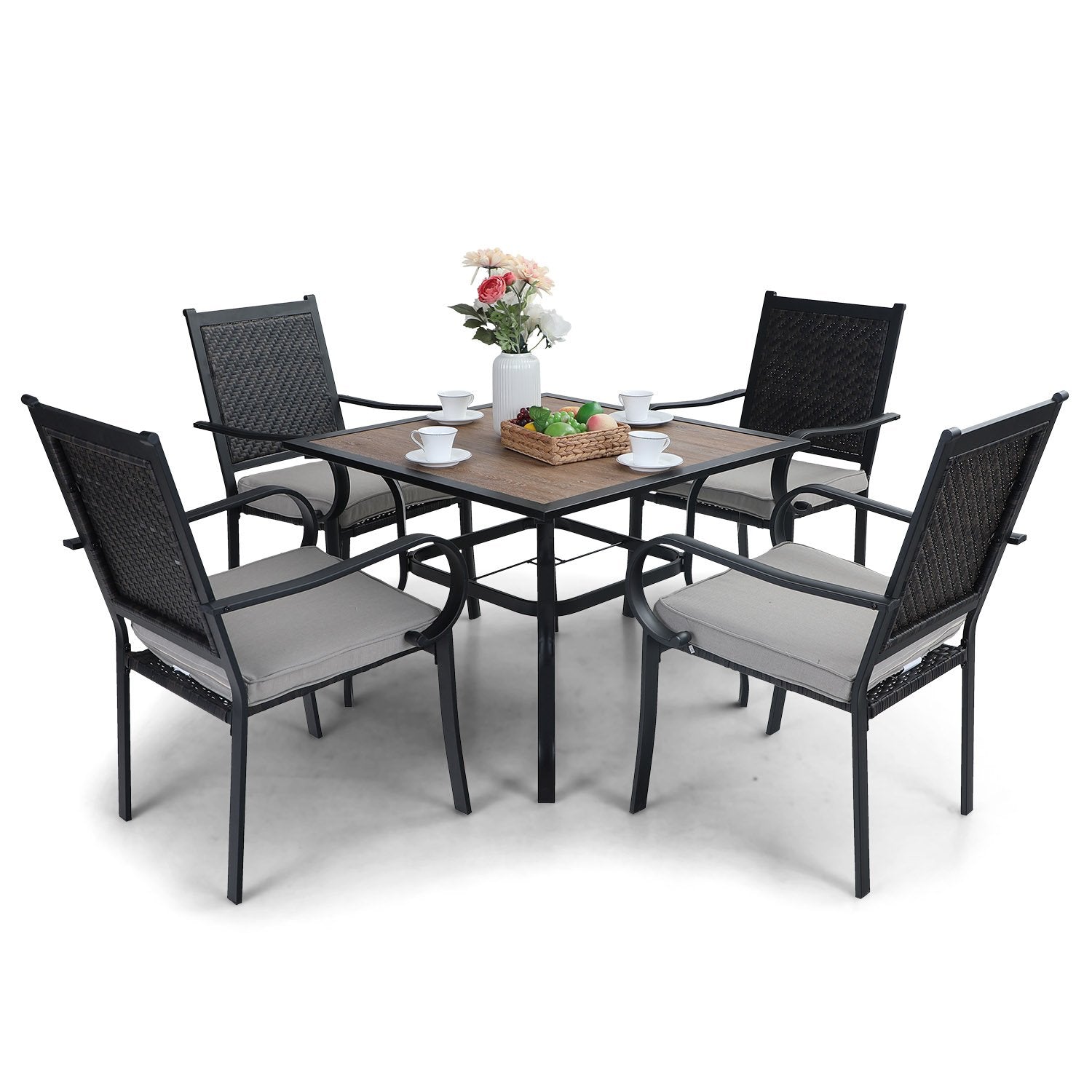 5-Piece Patio Dining Set with 4 Rattan Dining Chairs & Wood-look Square Table
