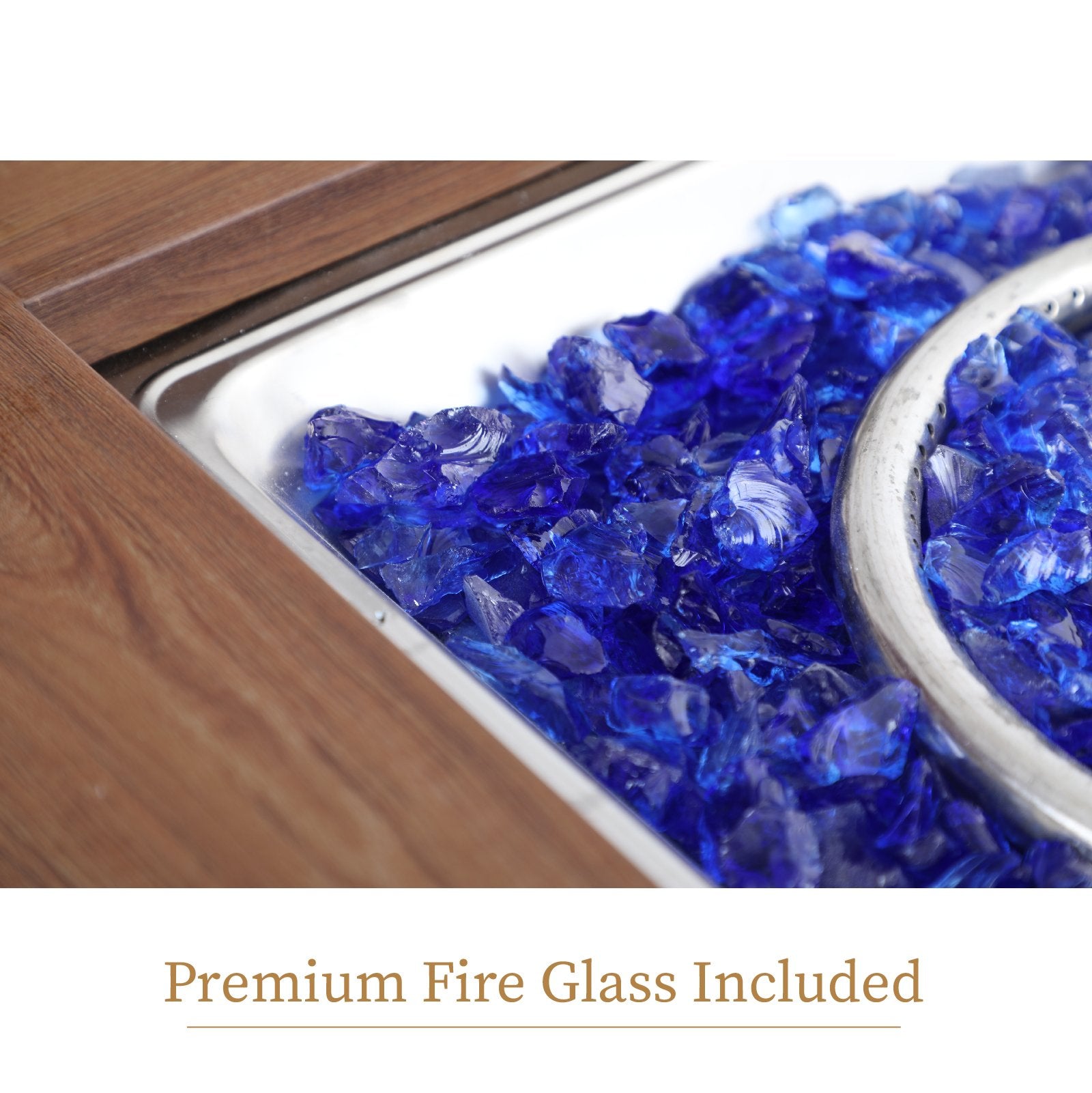 5-Piece Patio Outdoor Fire Pit Set with Rattan Swivel Chairs & Wood-look Square Steel Gas Fire Pit Table