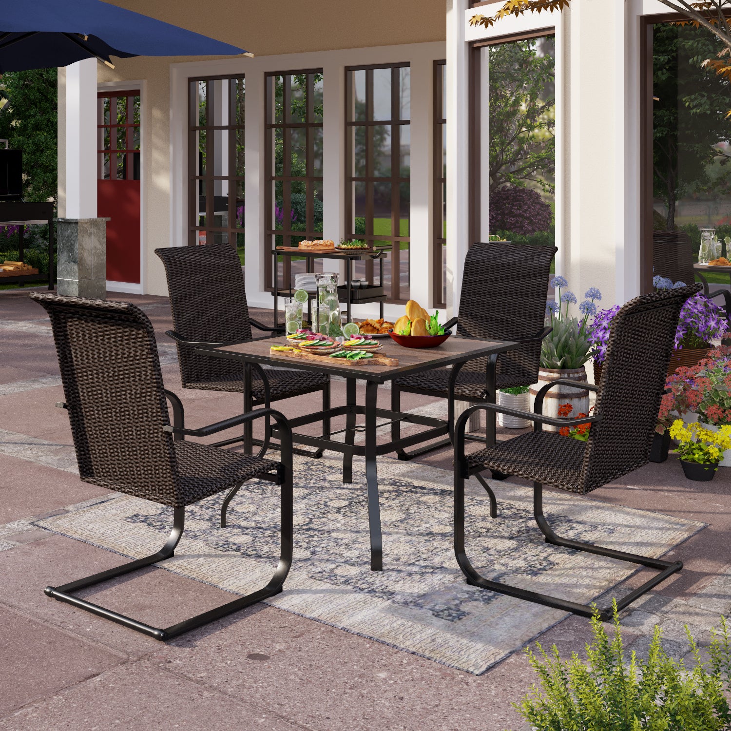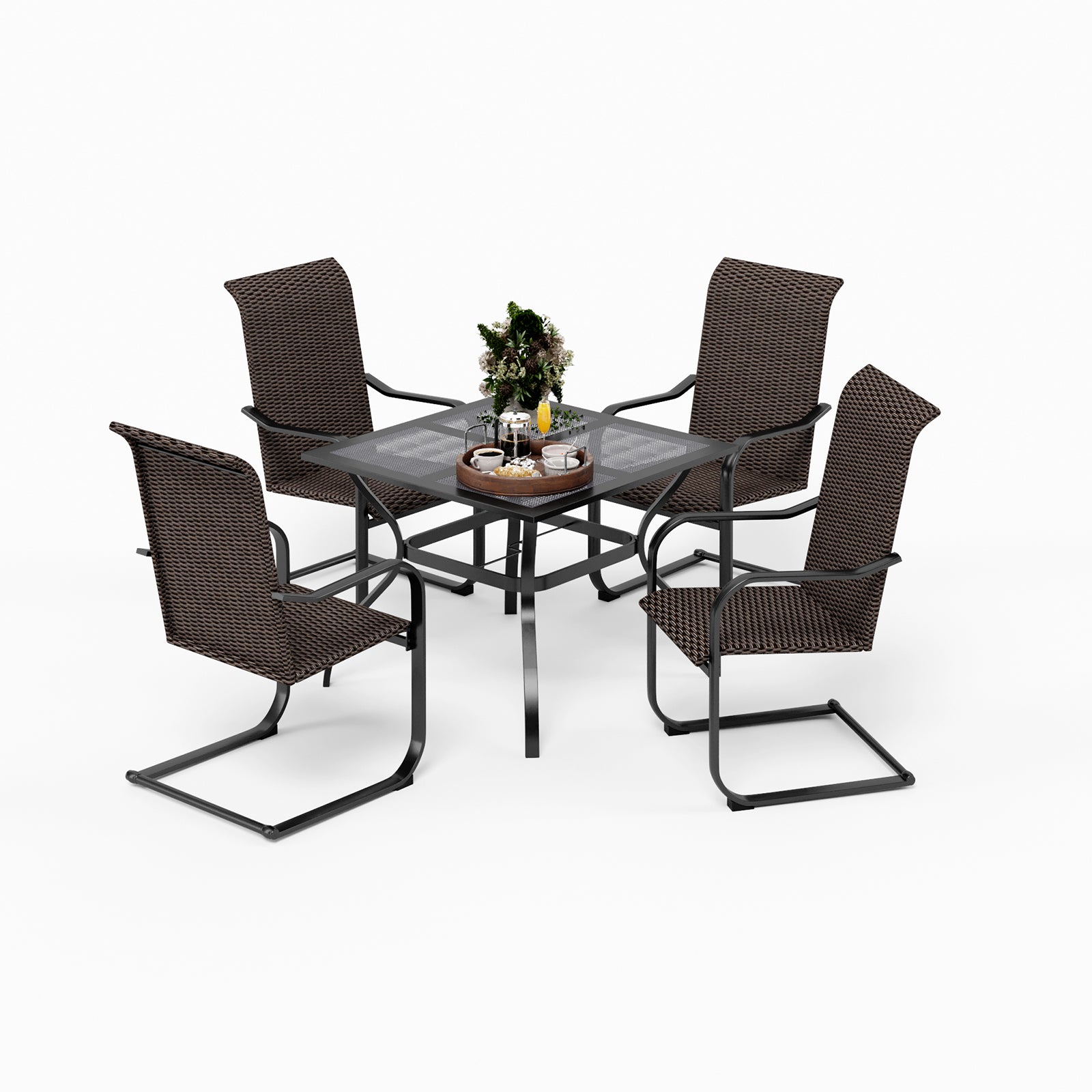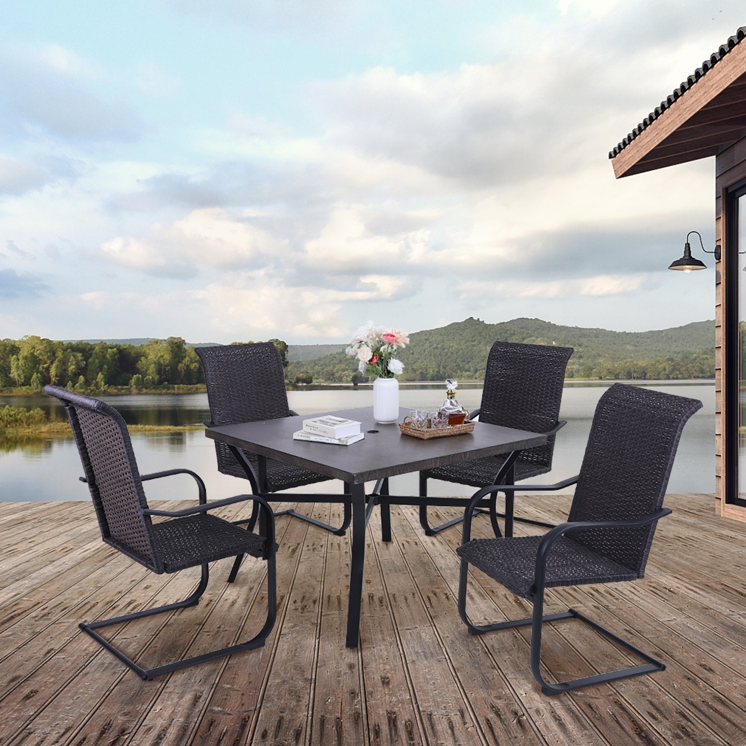 5-Piece Outdoor Dining Set with Steel Square Table & 4 Rattan C-spring Chairs