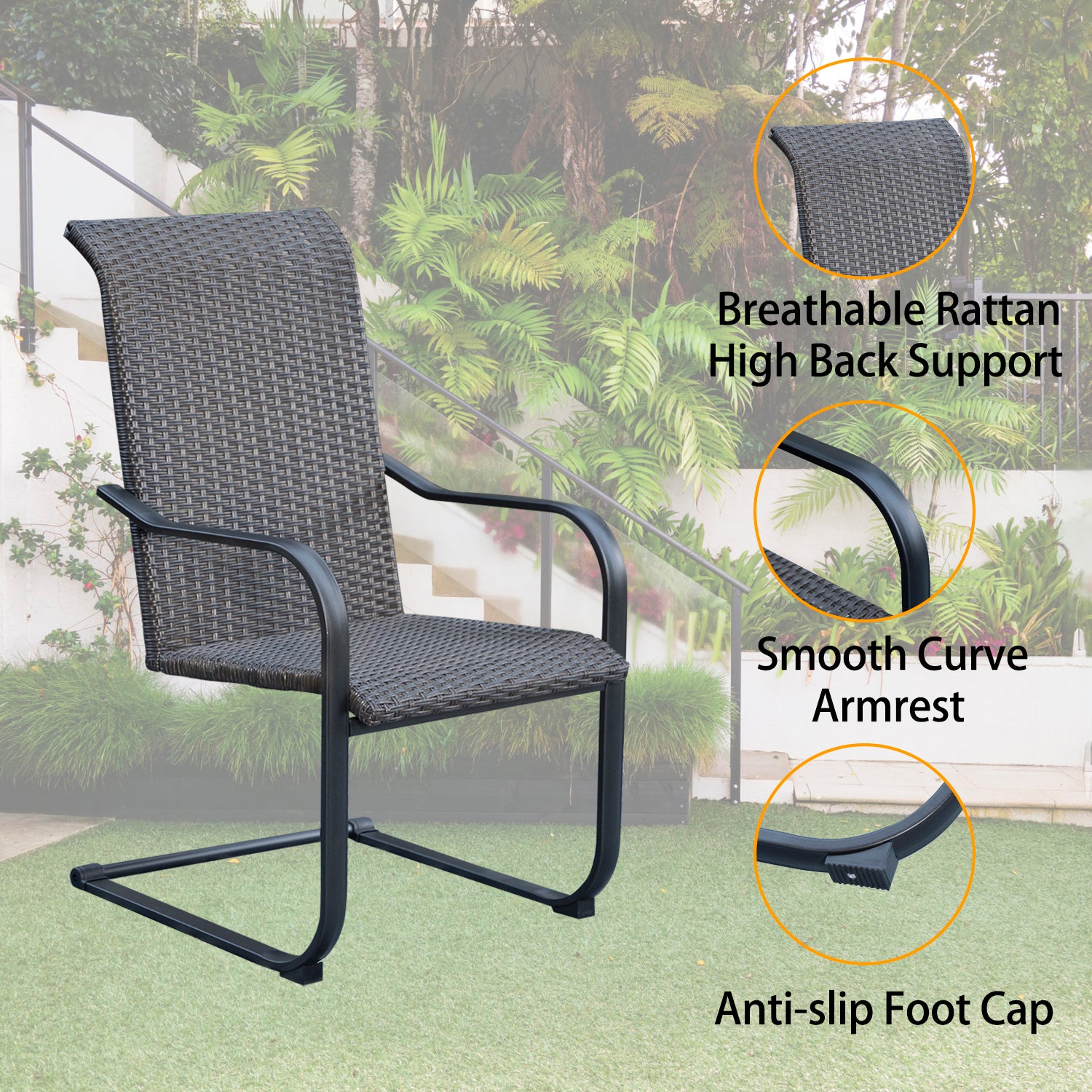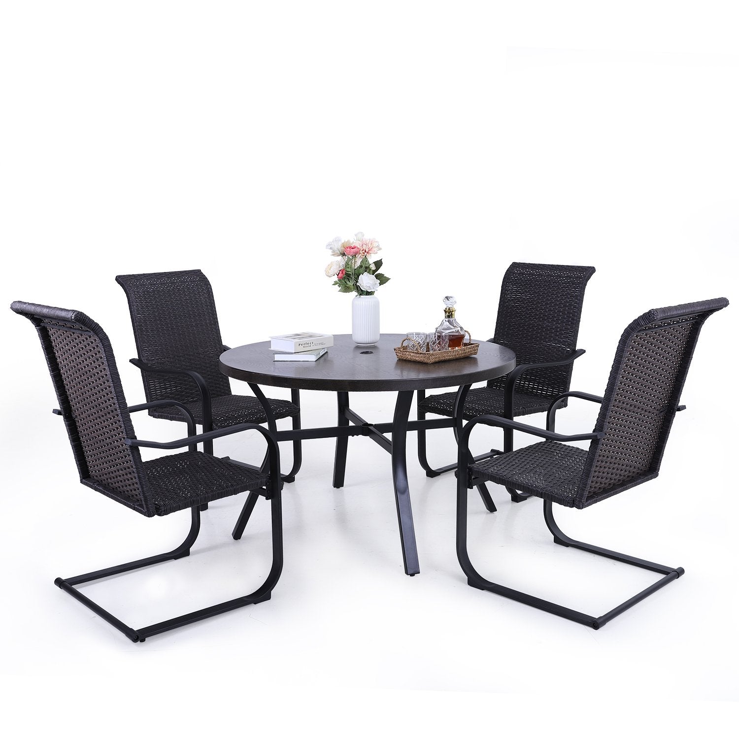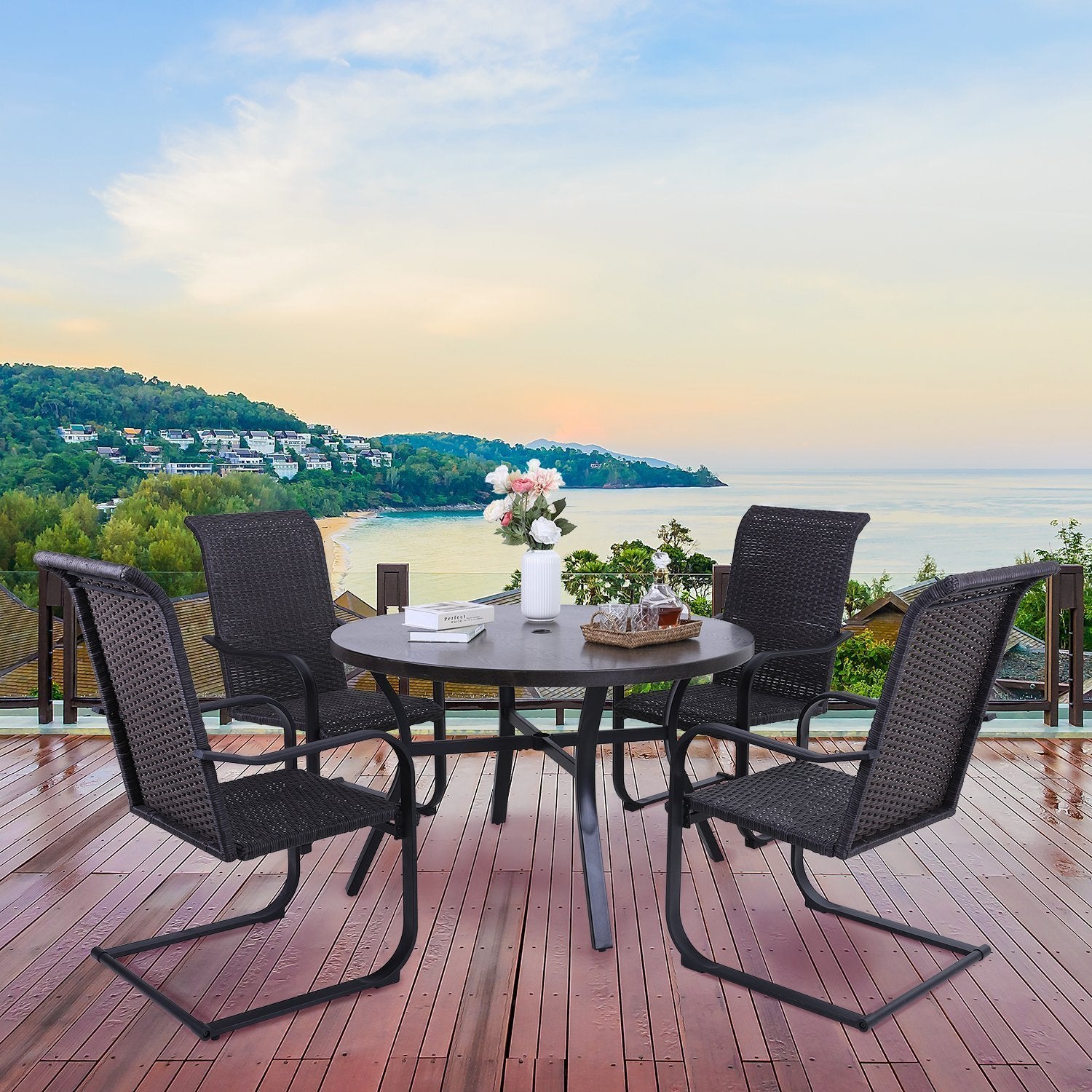 5-Piece Outdoor Dining Set with Steel Square Table & 4 Rattan C-spring Chairs