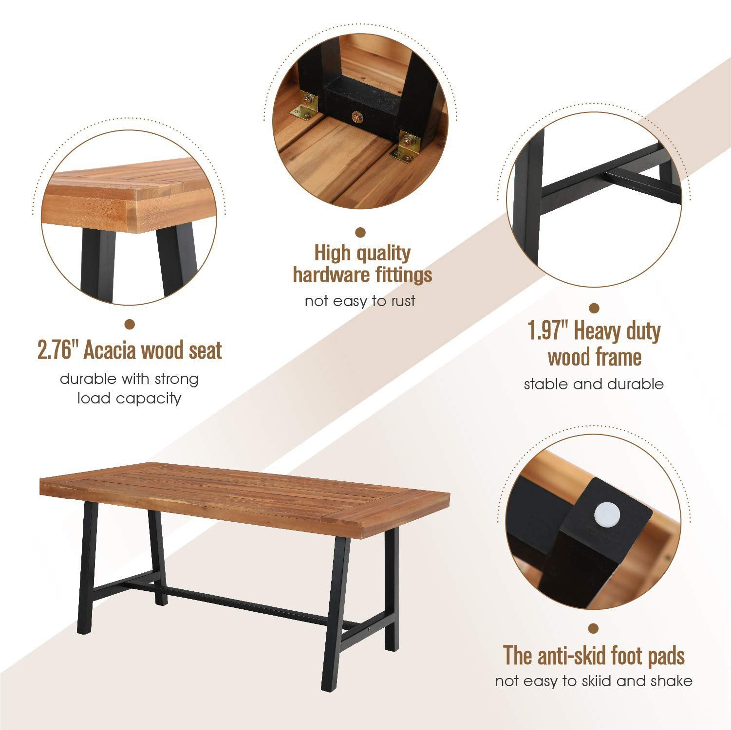 6 Piece Outdoor Dining Set with Acacia Wood Table & Wooden Bench and 4 Cushioned Rattan Wicker Chairs