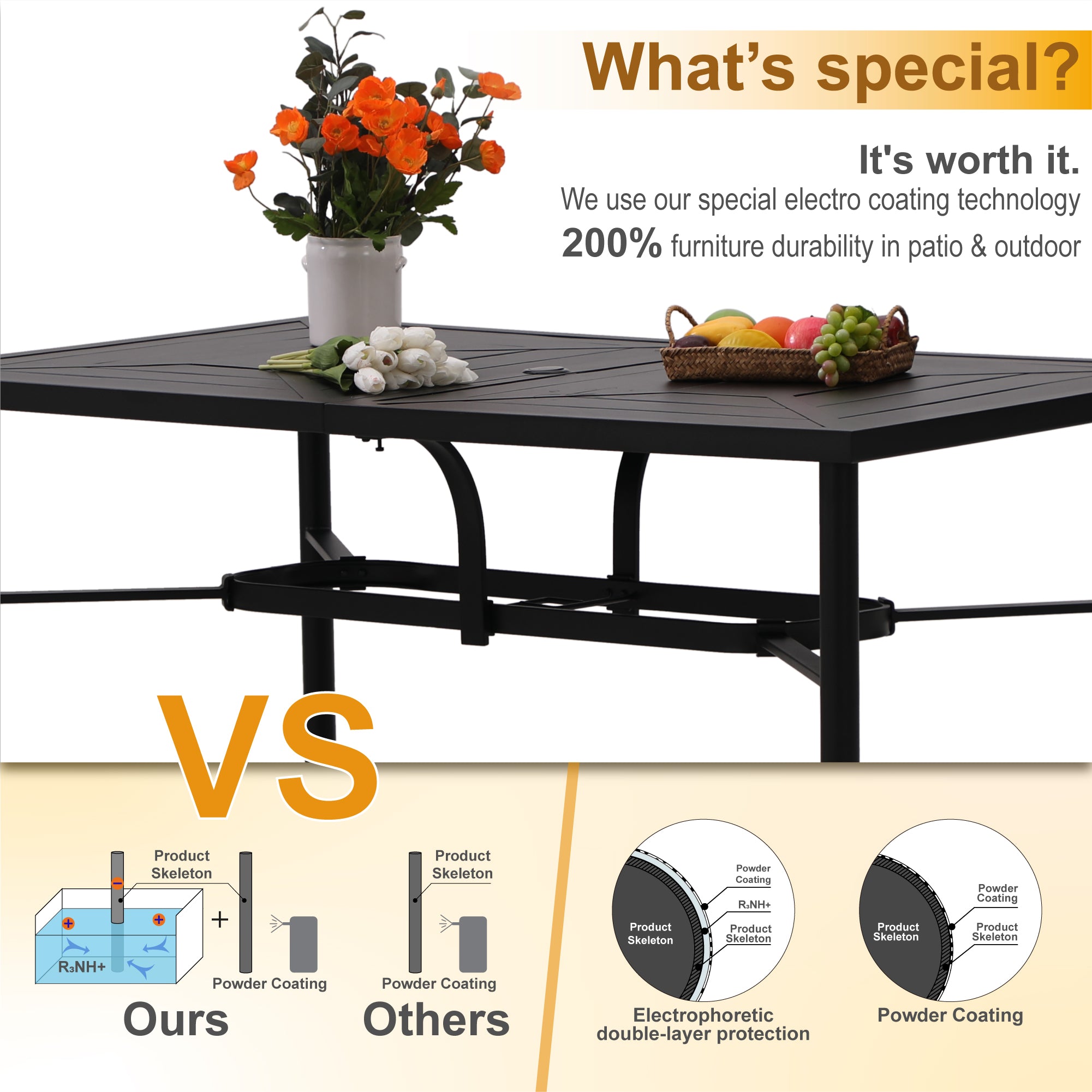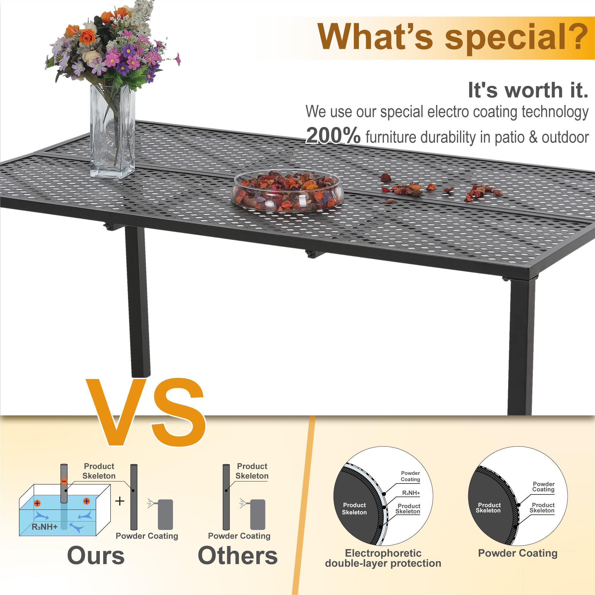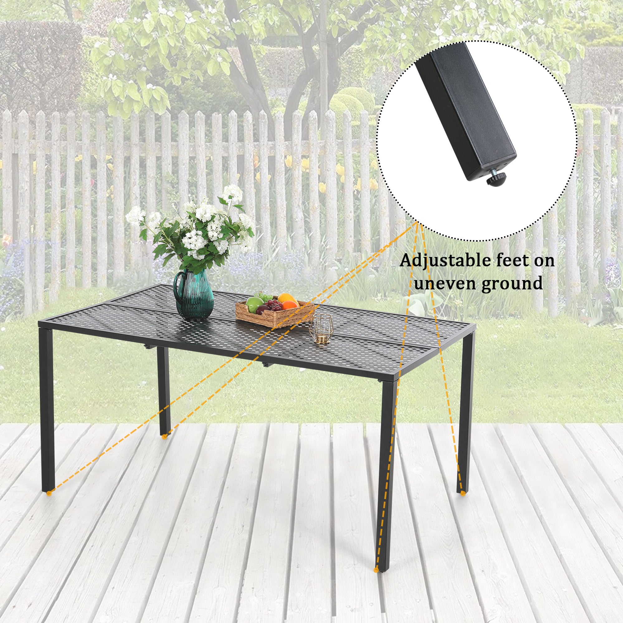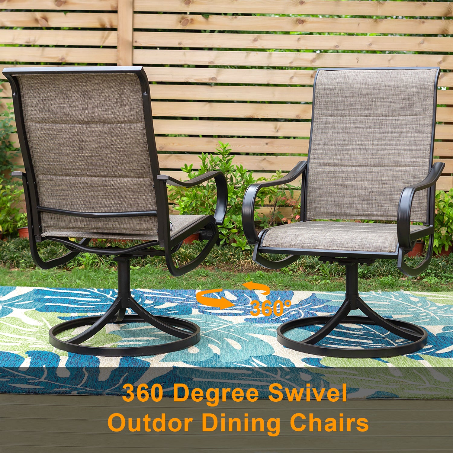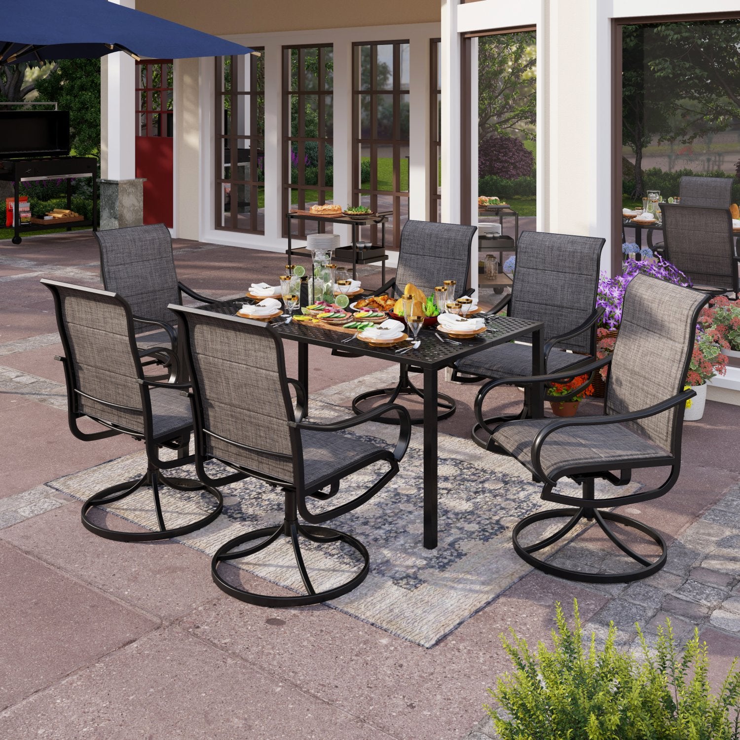 7-Piece Patio Dining Set 6 Textilene Padded Swivel Chairs and Steel Rectangle Table
