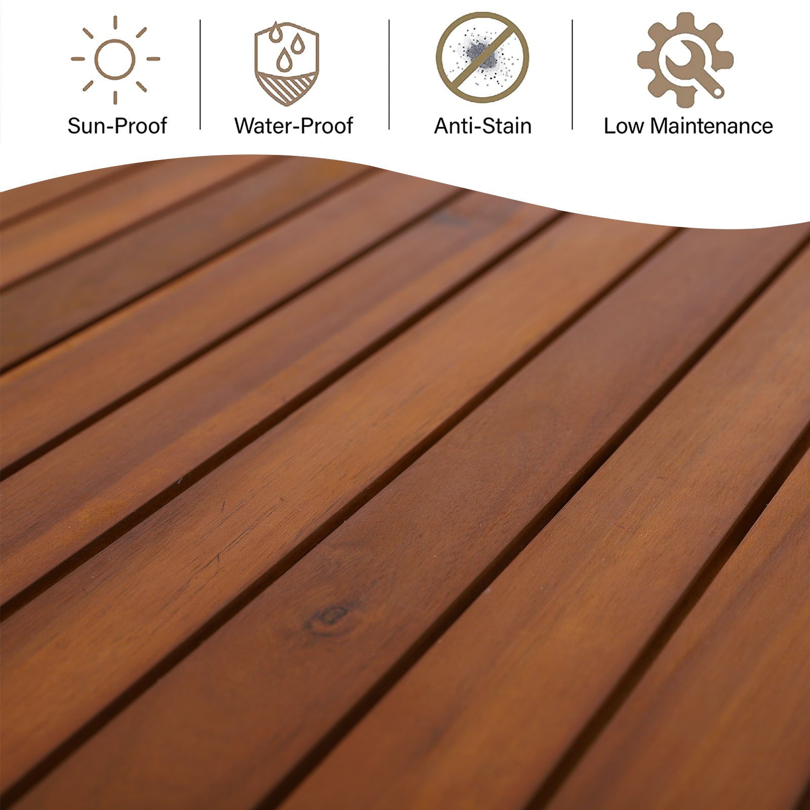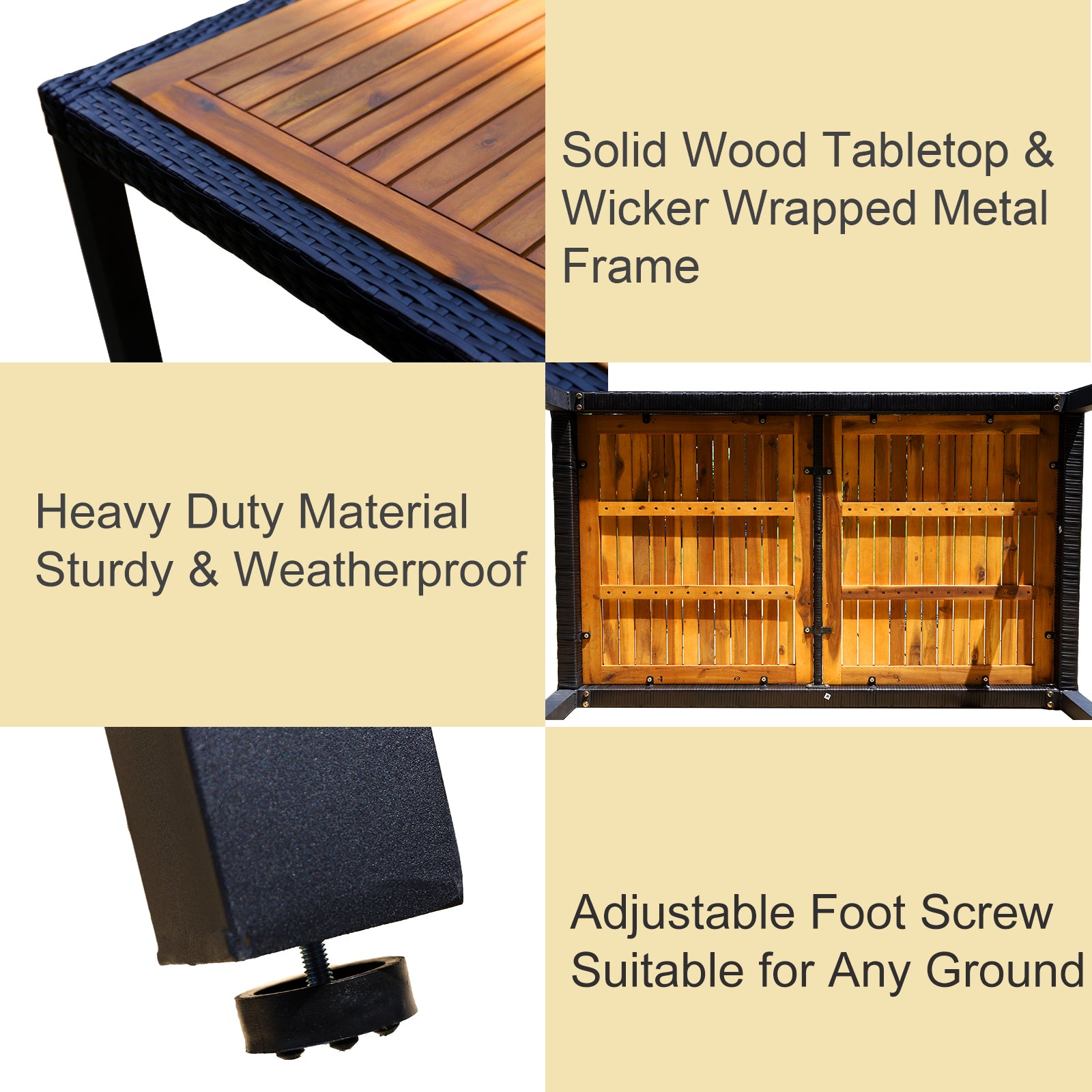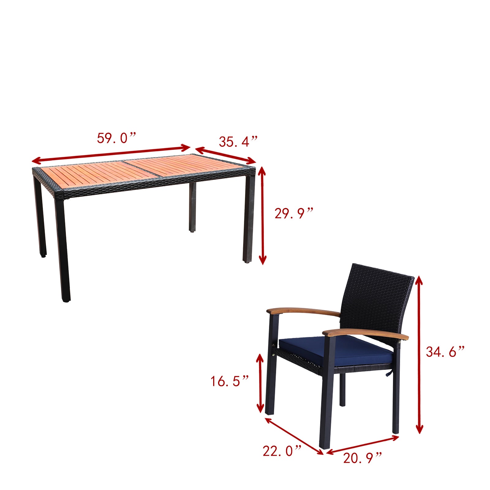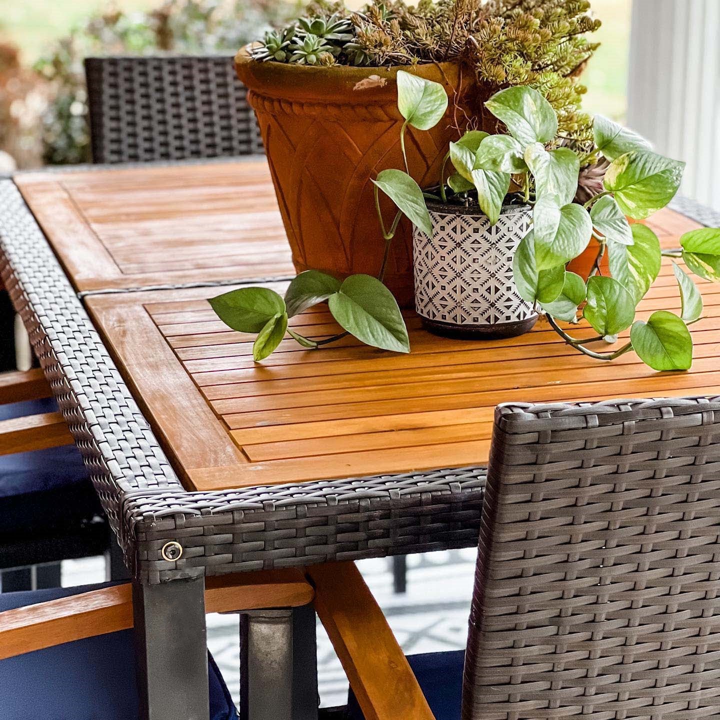 7-Piece Patio Outdoor Dining Set With Acacia Wood Rectangle Table and 6 Rattan Wooden Armrest Dining Chairs