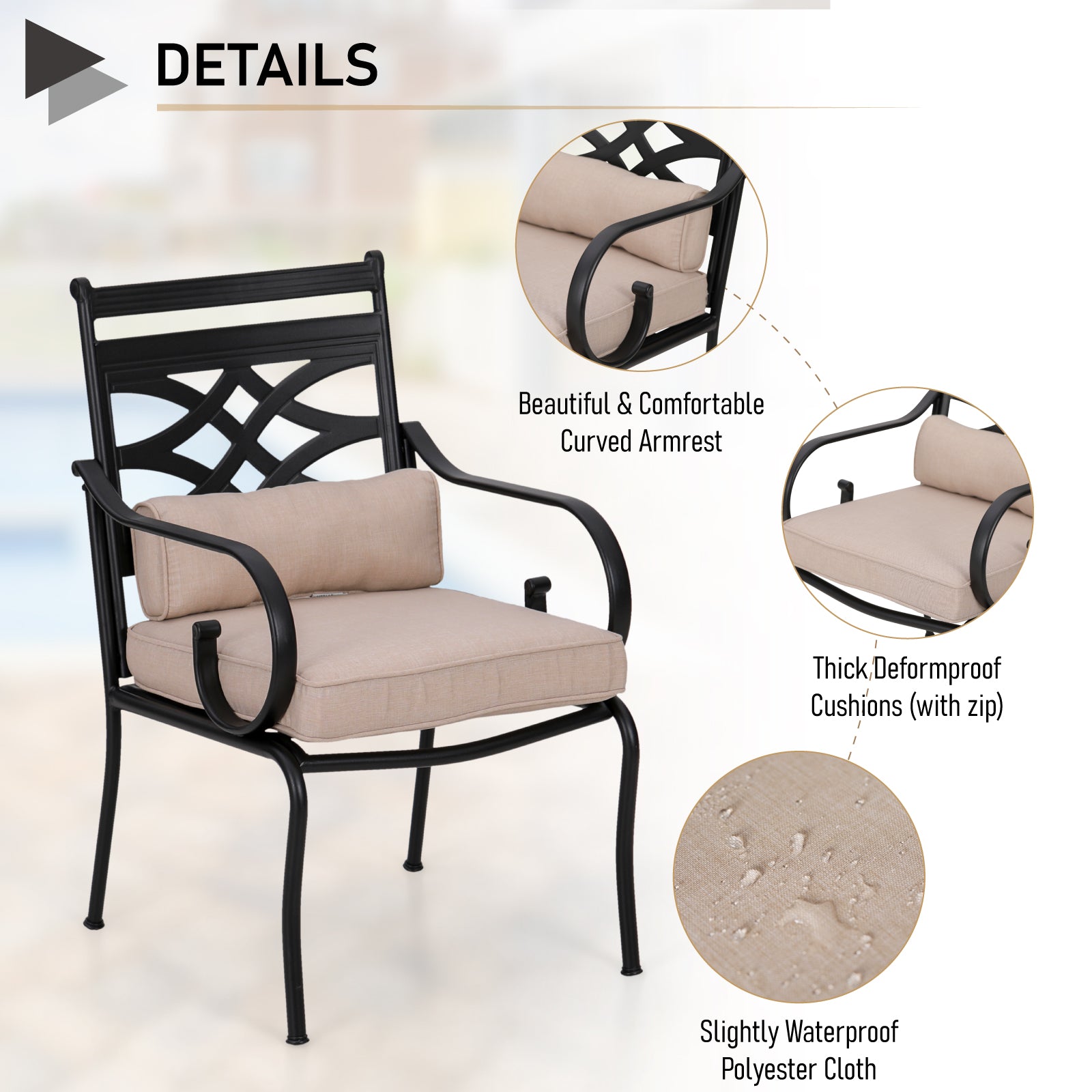 7 Piece Patio Dining Set with Acacia Wood Table & Steel Fixed Chairs