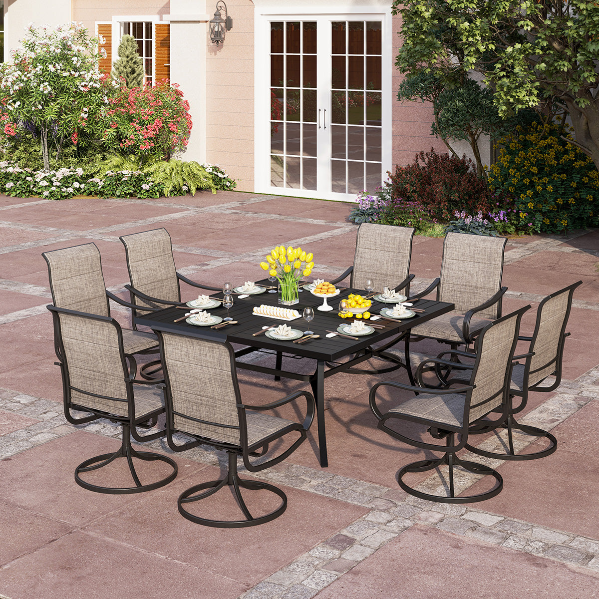 9 PCS Patio Dining Set with Large Square Table & 8 Textilene Swivel Chairs