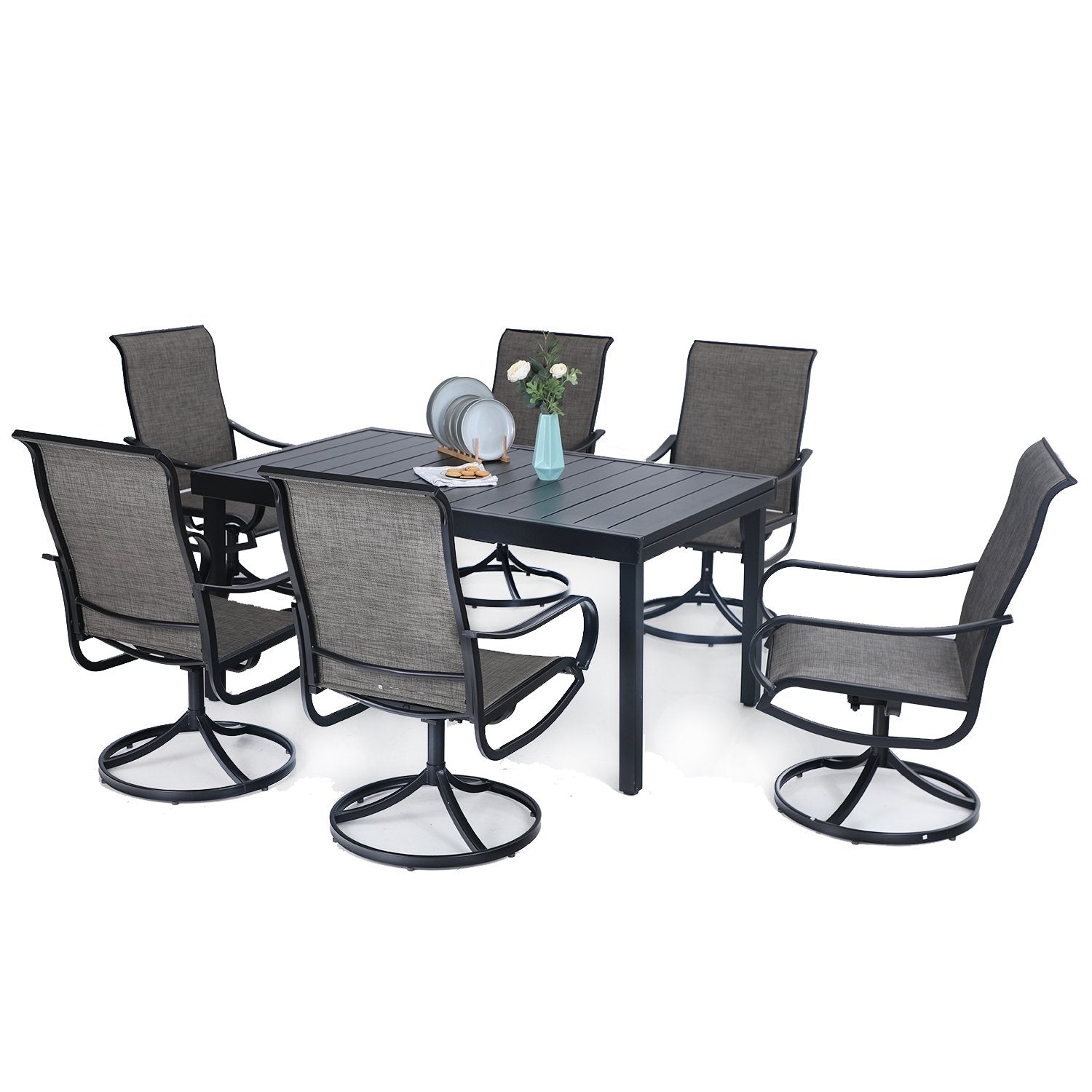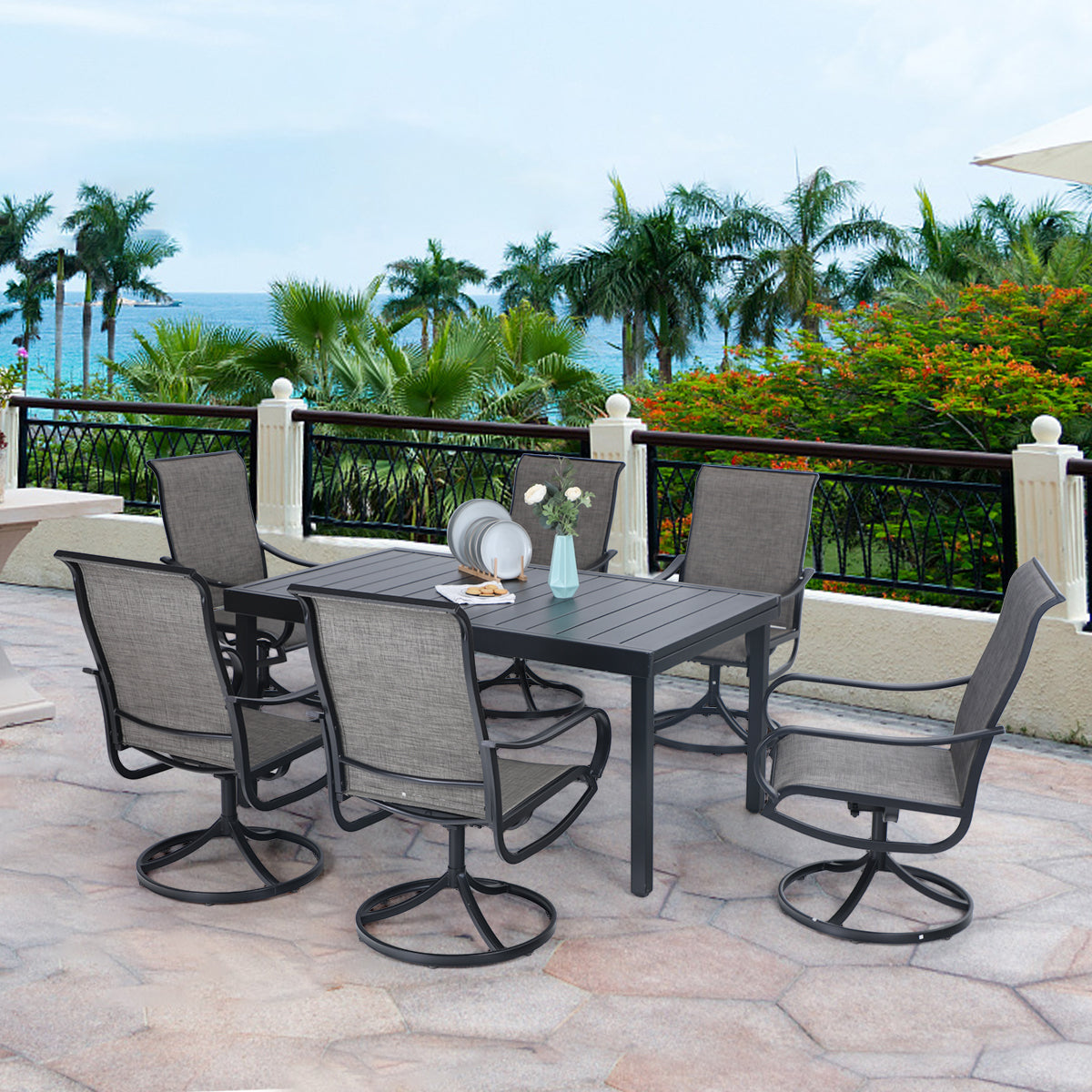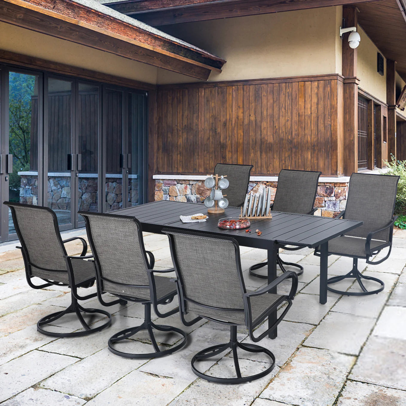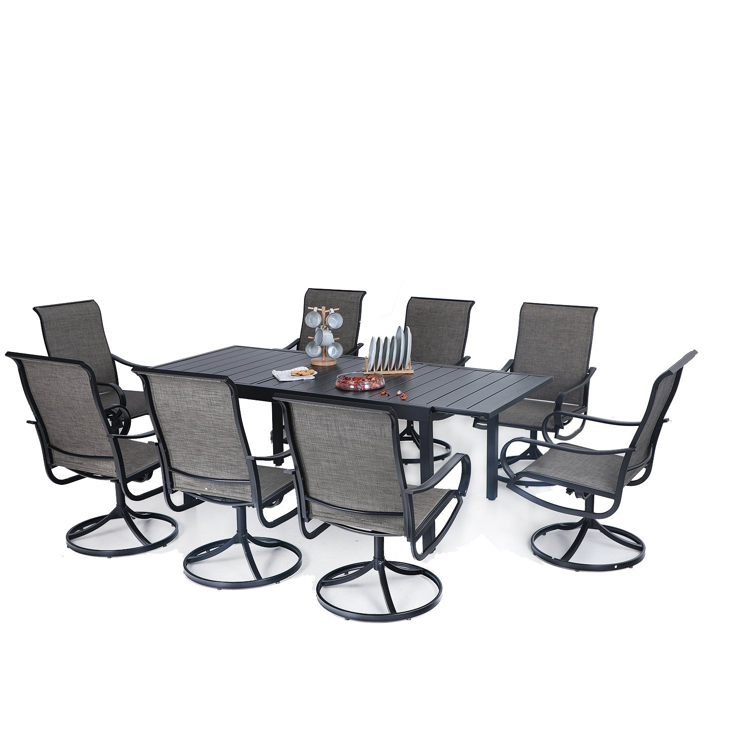 7-Piece/9-Piece Outdoor Dining Set with Textilene Swivel Chairs & Adjustable Table