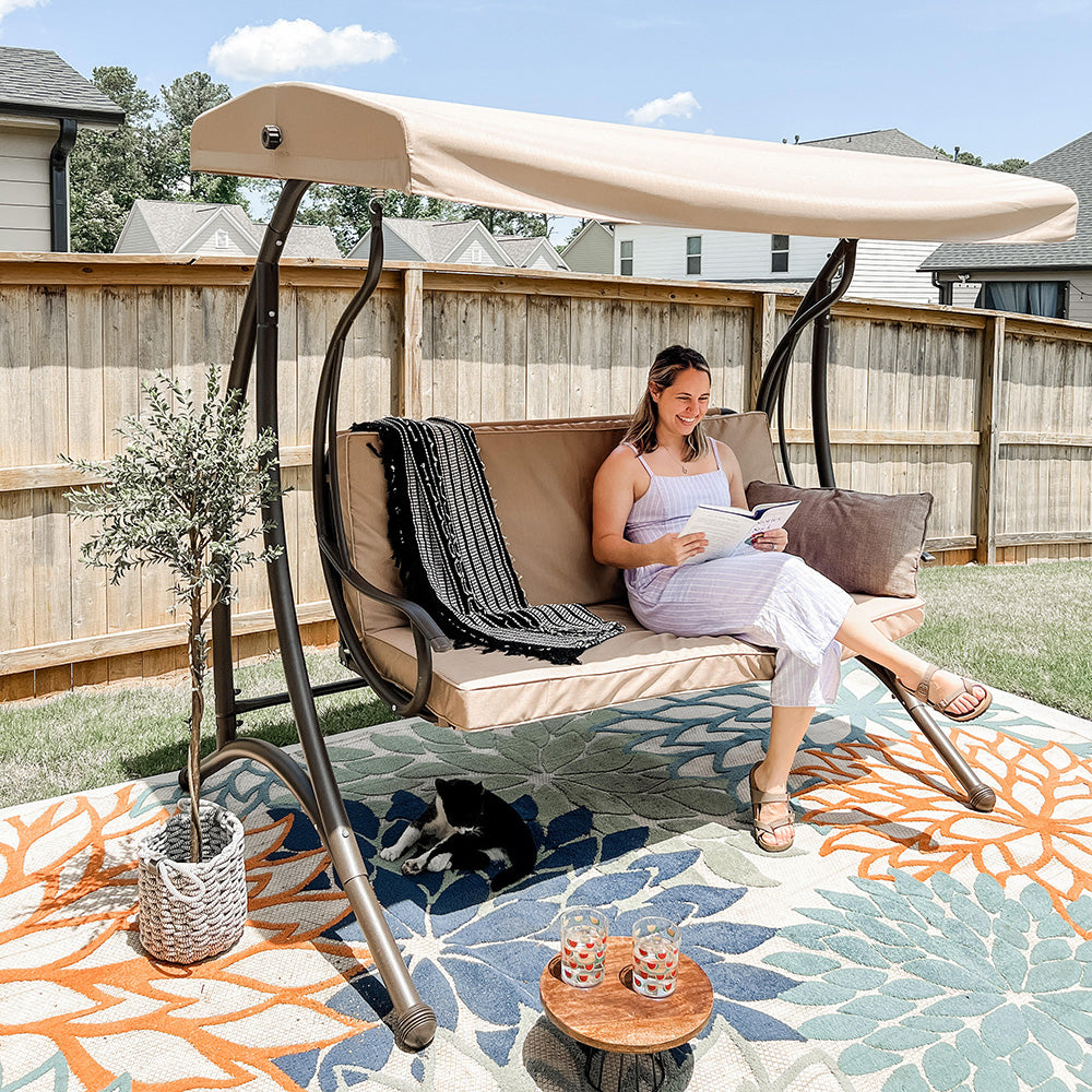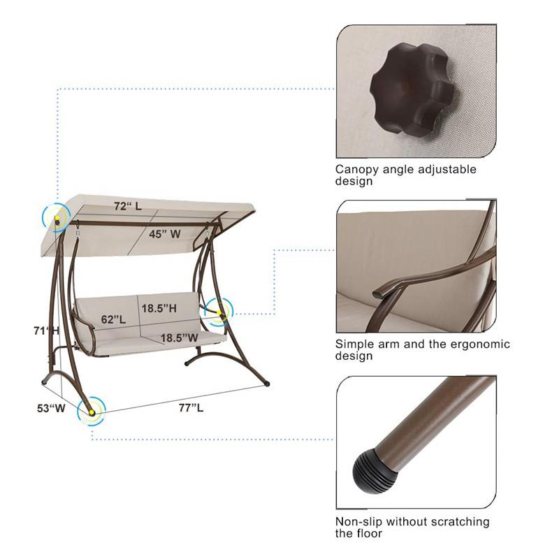 Outdoor Patio 3 Person Swing Chair for Porch, Garden, Backyard