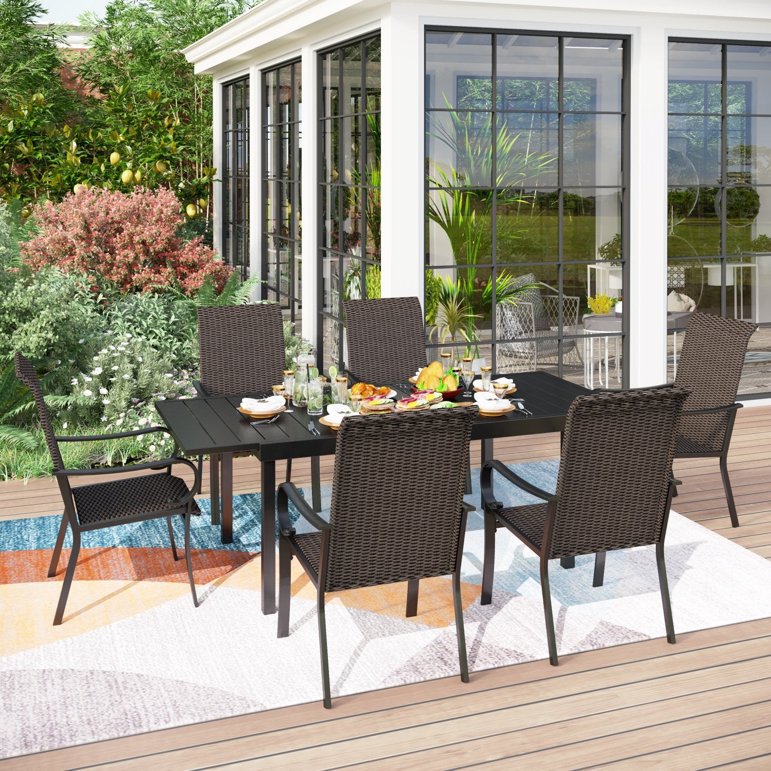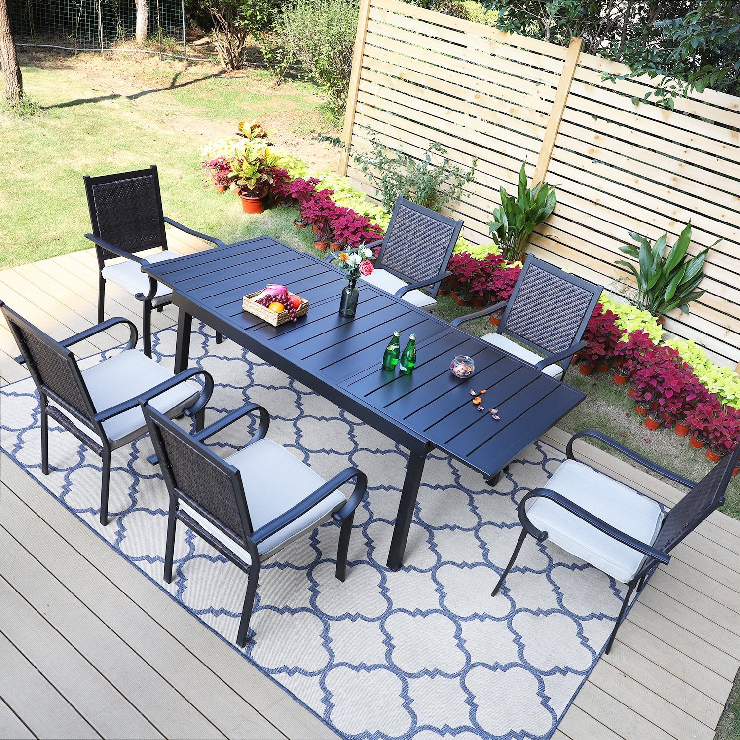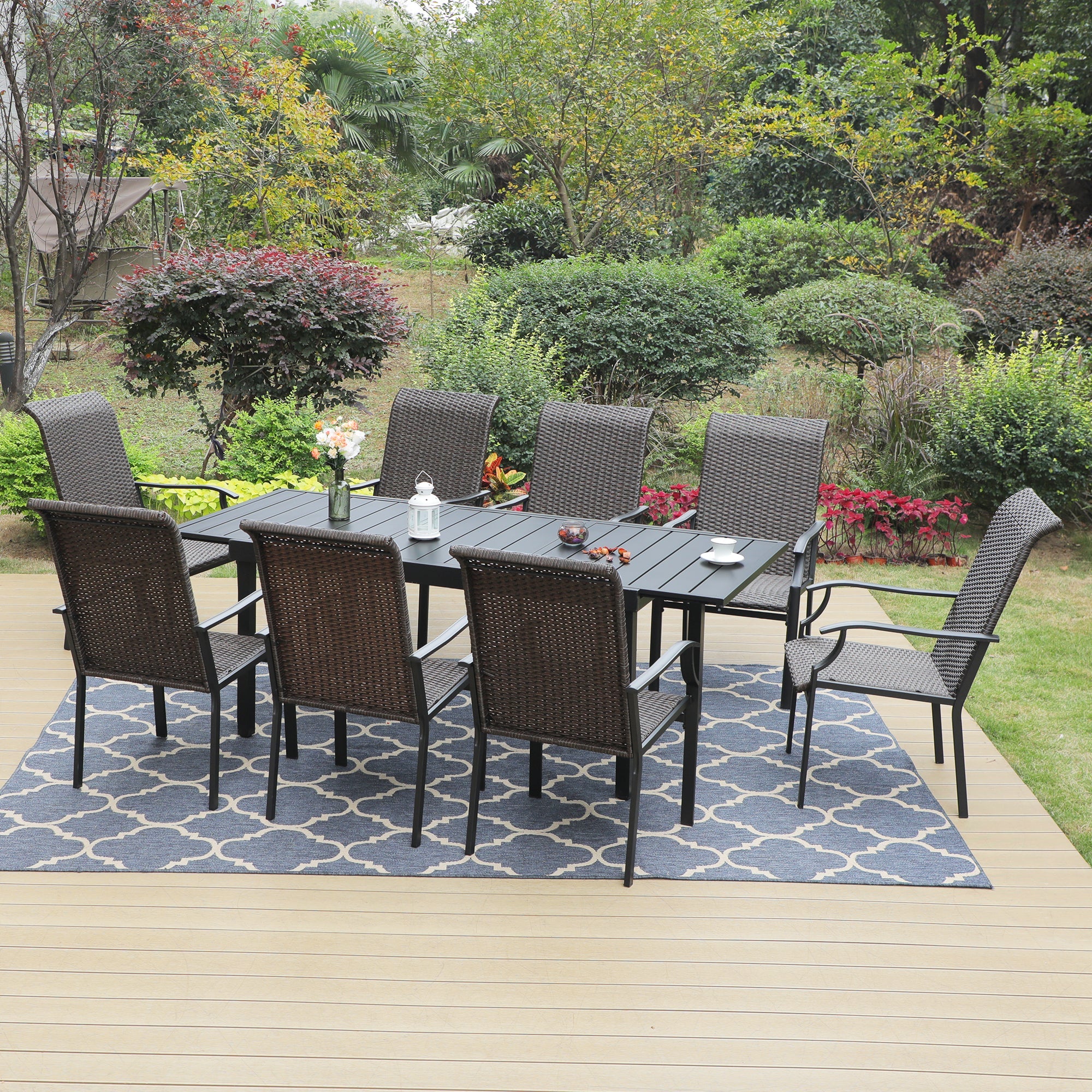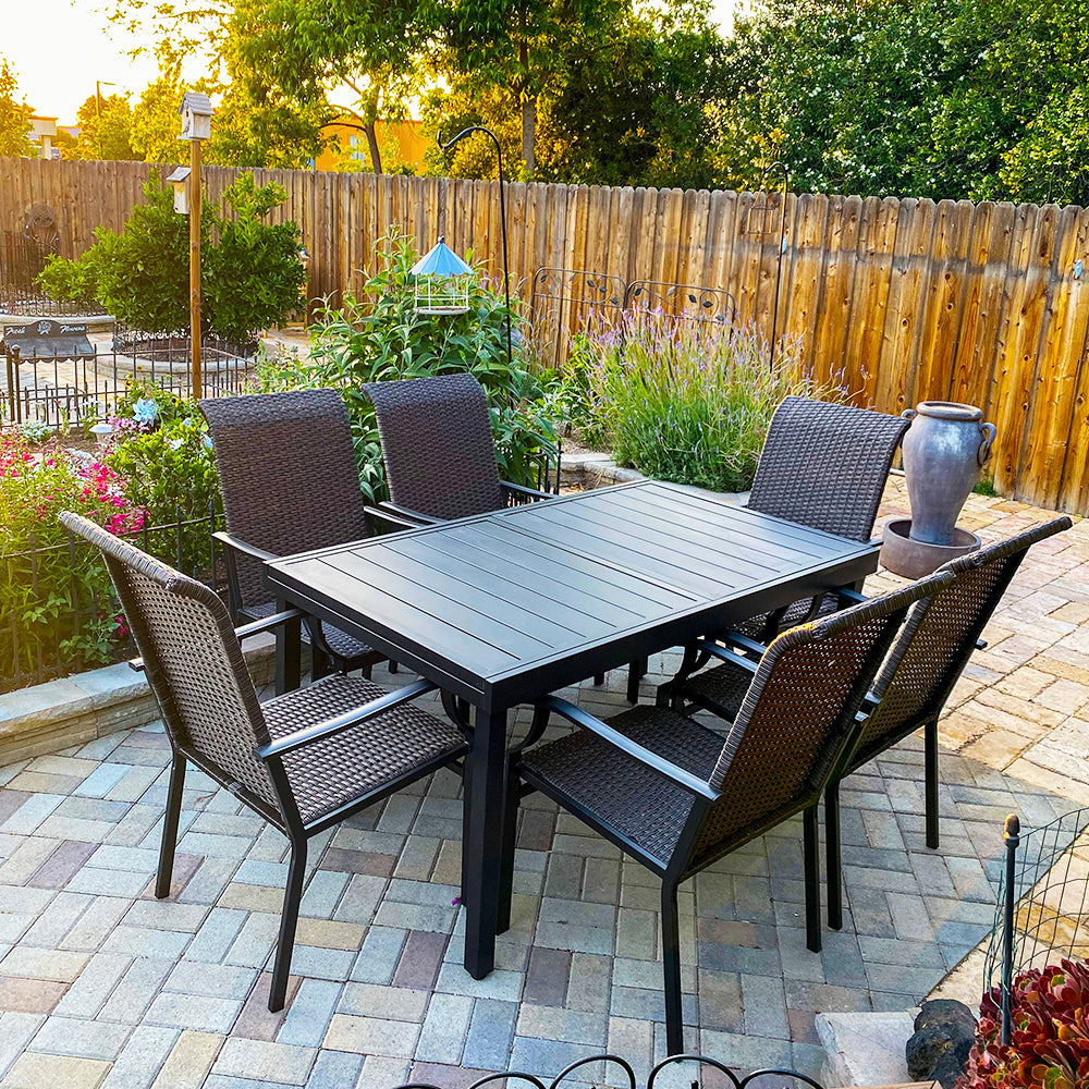 7-piece/ 9-piece Patio Dining Set Rattan Dining Chairs with Extendable Table