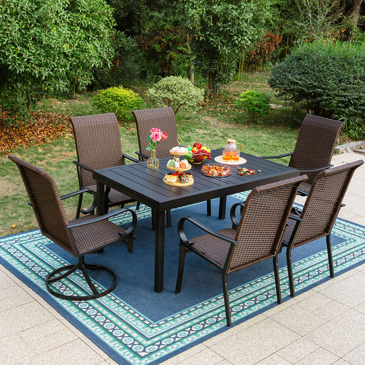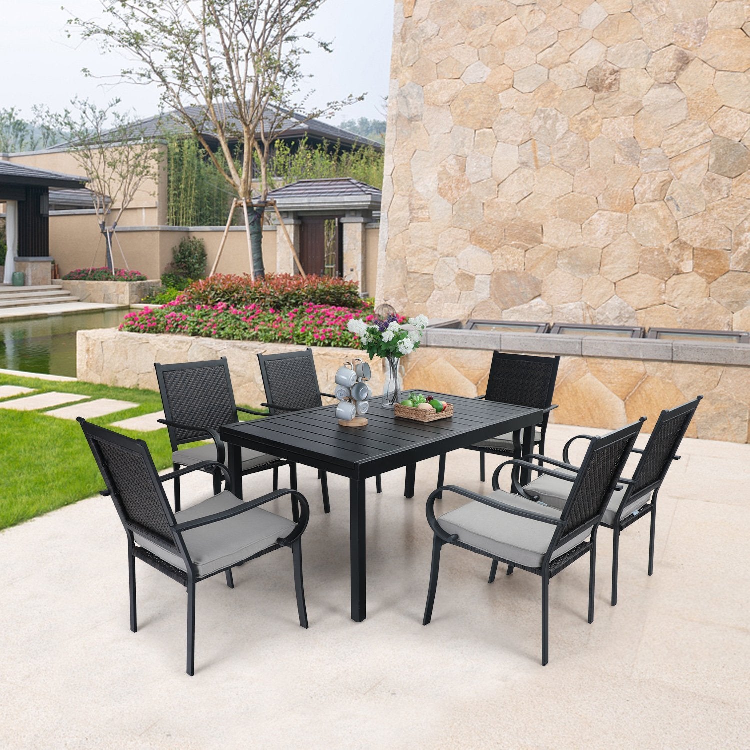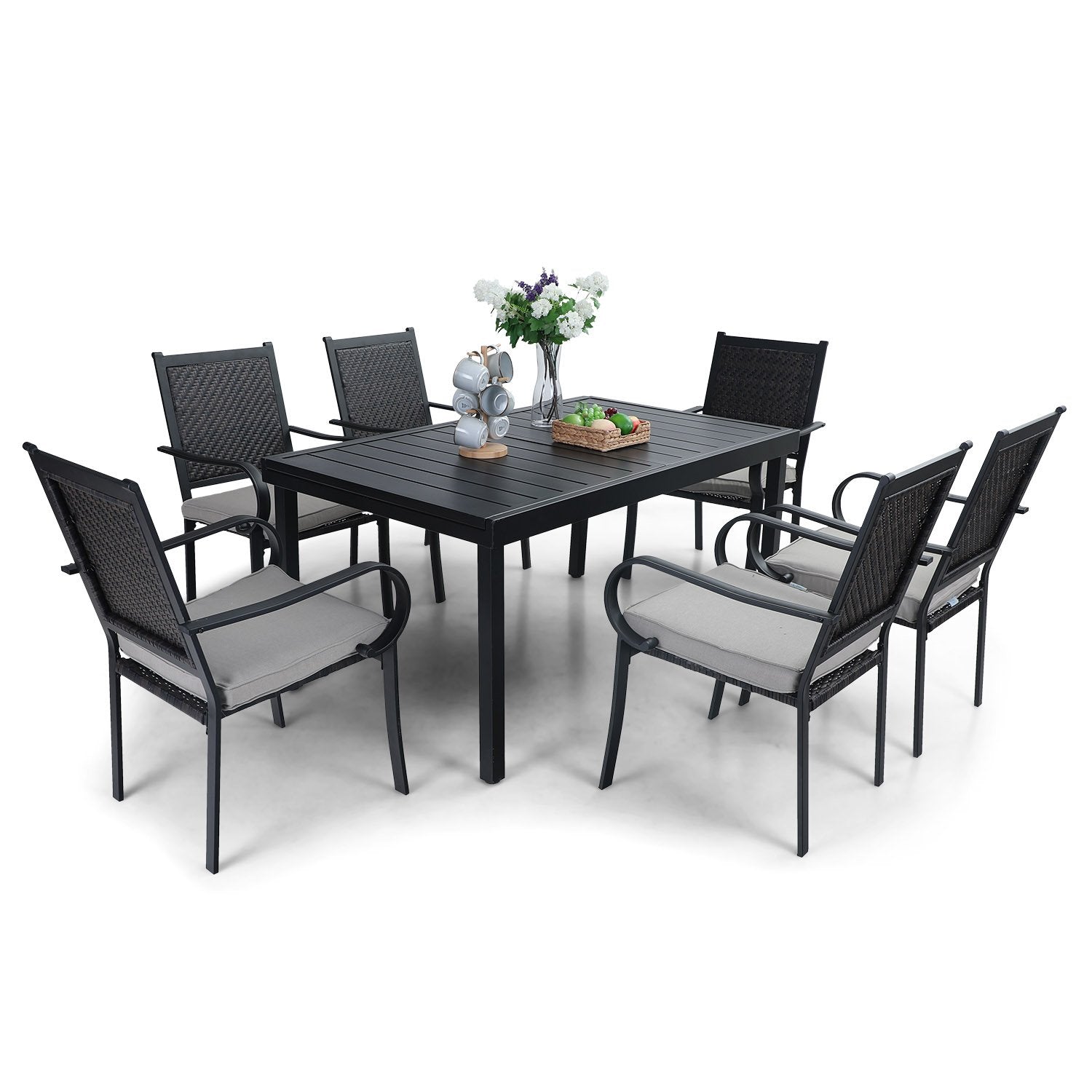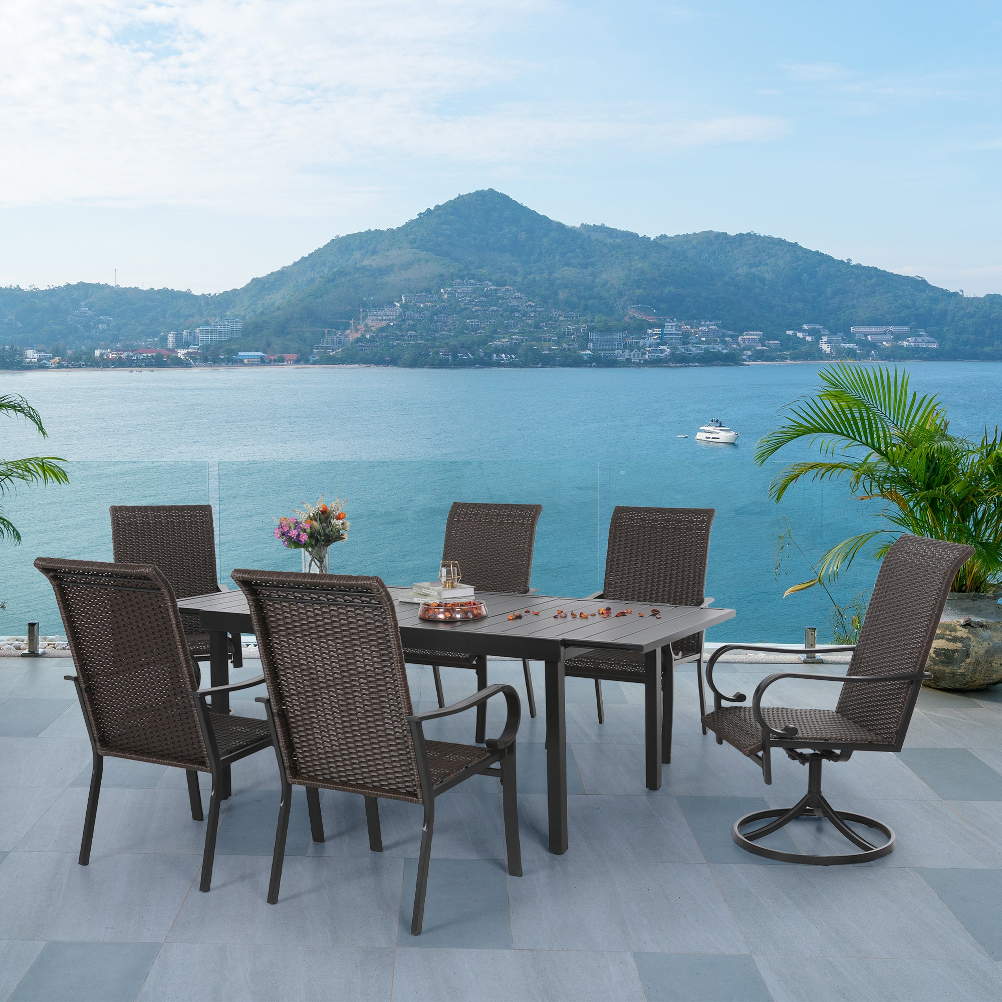 7-piece/ 9-piece Patio Dining Set Rattan Dining Chairs with Extendable Table
