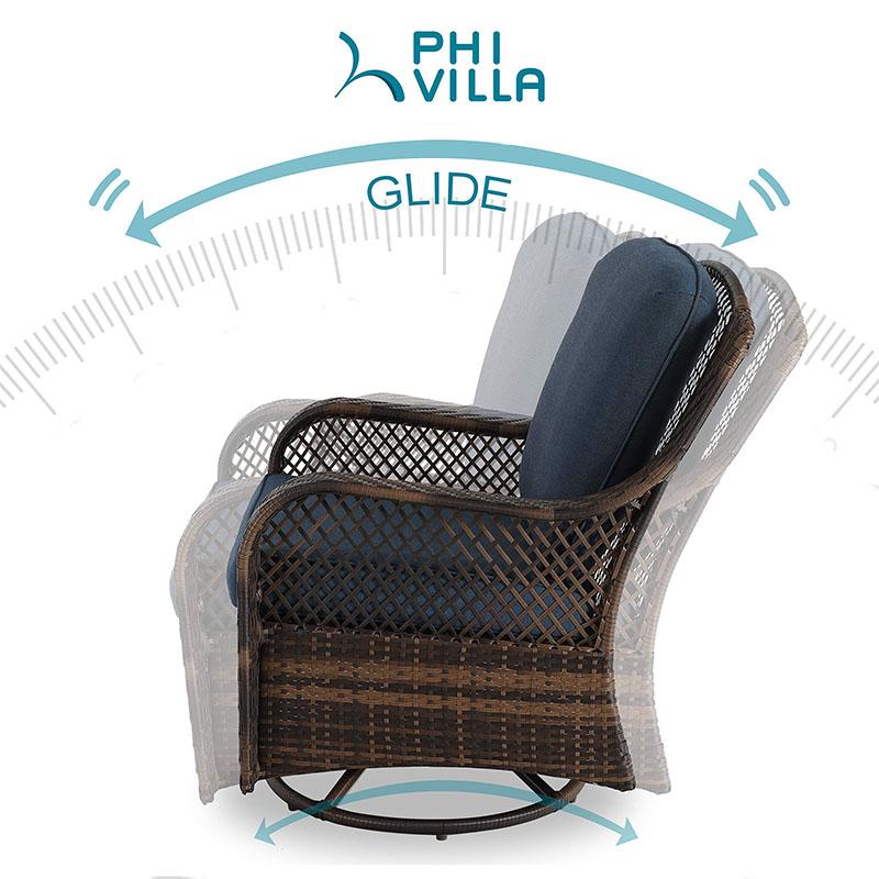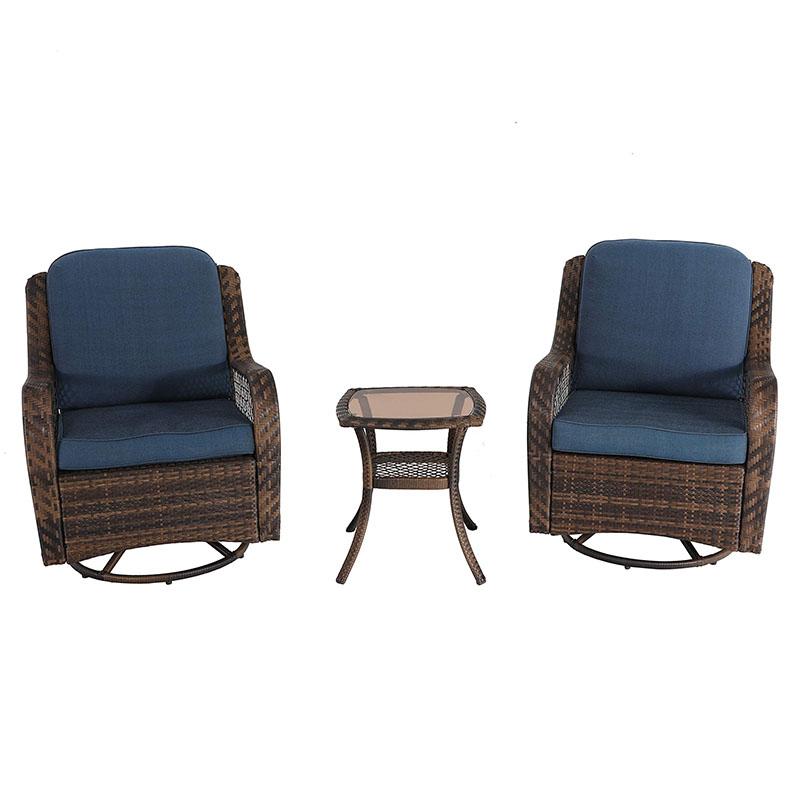 3 PC Rattan Swivel Rocking Chairs Conversation Set