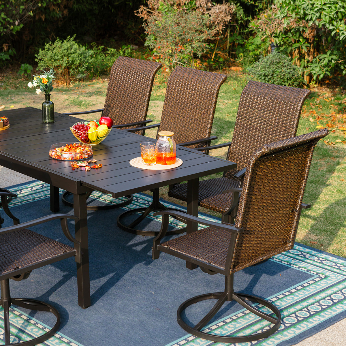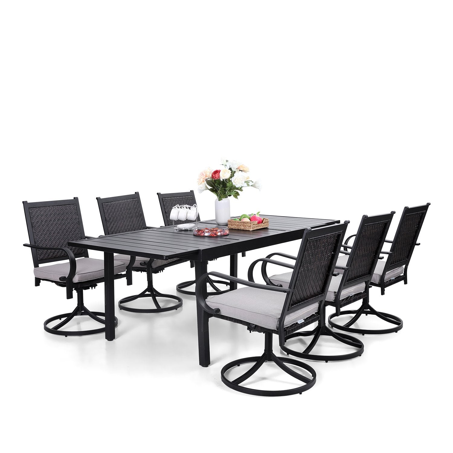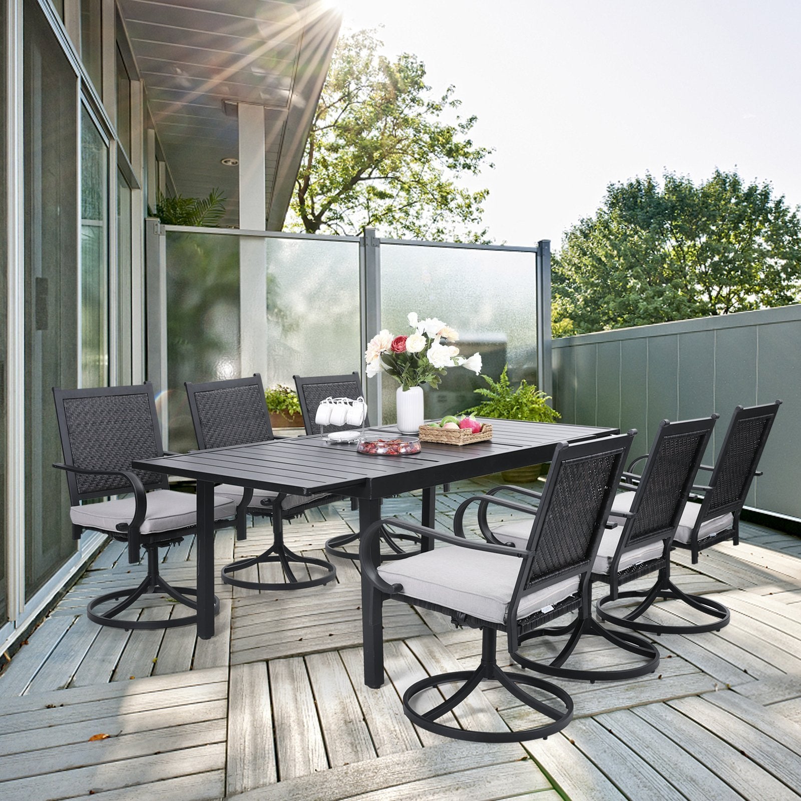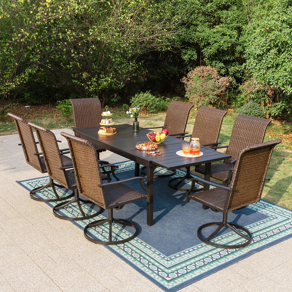 7-Piece/9-Piece Patio Outdoor Dining Set With Steel Extendable Table & Rattan Swivel Chairs