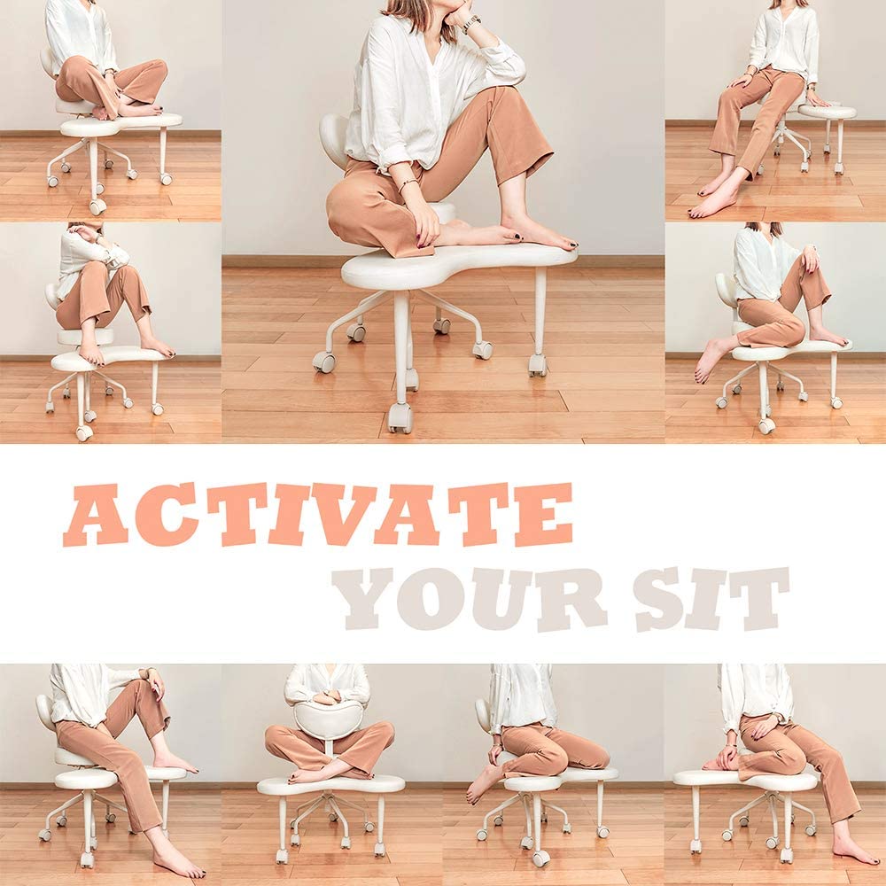EXCLUSIVE PATENTED DESIGN - HOME OFFICE SOLUTION: As a revolutionary chair, it allows you to sit in a variety of different positions such as cross-legged, squatting, kneeling, and countless others. Perfect for home workers, yoga lovers, meditation fanatics and everyone who feel tired with ordinary fixed sitting positions and would like to break the boundary of those conventional office chairs. ACTIVATE YOUR SIT: Created by ergonomic engineer and designers, it provides an active flexible seating outlet that promotes constant movement and stimulation of your body. Change positions from time to time and sit in your most comfortable way. Long-duration sitting will no longer be boring or painful. FLEXIBLE TO SWITCH: Designed with the 360-degree swivel footstool, it gives you more freedom to sit. Other than switching from different special positions, when you are not in the mood to casually sit or just want to sit as usual for a while, you can always turn it aside and use it as a normal chair. COMFORT & PAINLESS: Padded with the high resilience, high density foam, the 3.7-inch extra thick seat cushion plus the 1.5-inch thick footstool provide comfort support for your hip, feet, knees and ankles while switching positions. The crescent-shaped ergonomic backrest gives perfect lower back support and help relieves back pain. SAFE & DURABLE: Assembled with the SGS certificated cylinder, solid steel base and the heavy-duty casters, it will ensure you a safe and durable experience. Its polyurethane leather material is extremely soft touching and easy to be cleaned with leather cleaners. Even the white color won’t be a pain.
