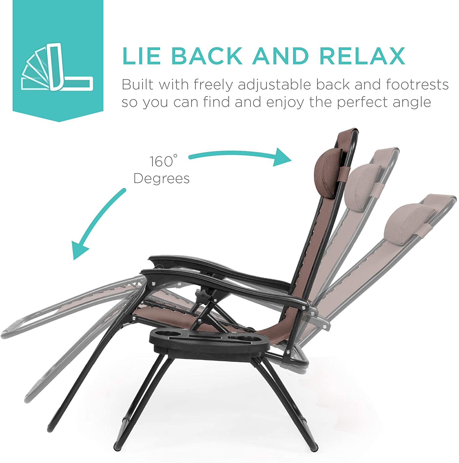 Set of 2 Adjustable Steel Mesh Zero Gravity Lounge Chair Recliners w/Pillows and Cup Holder Trays