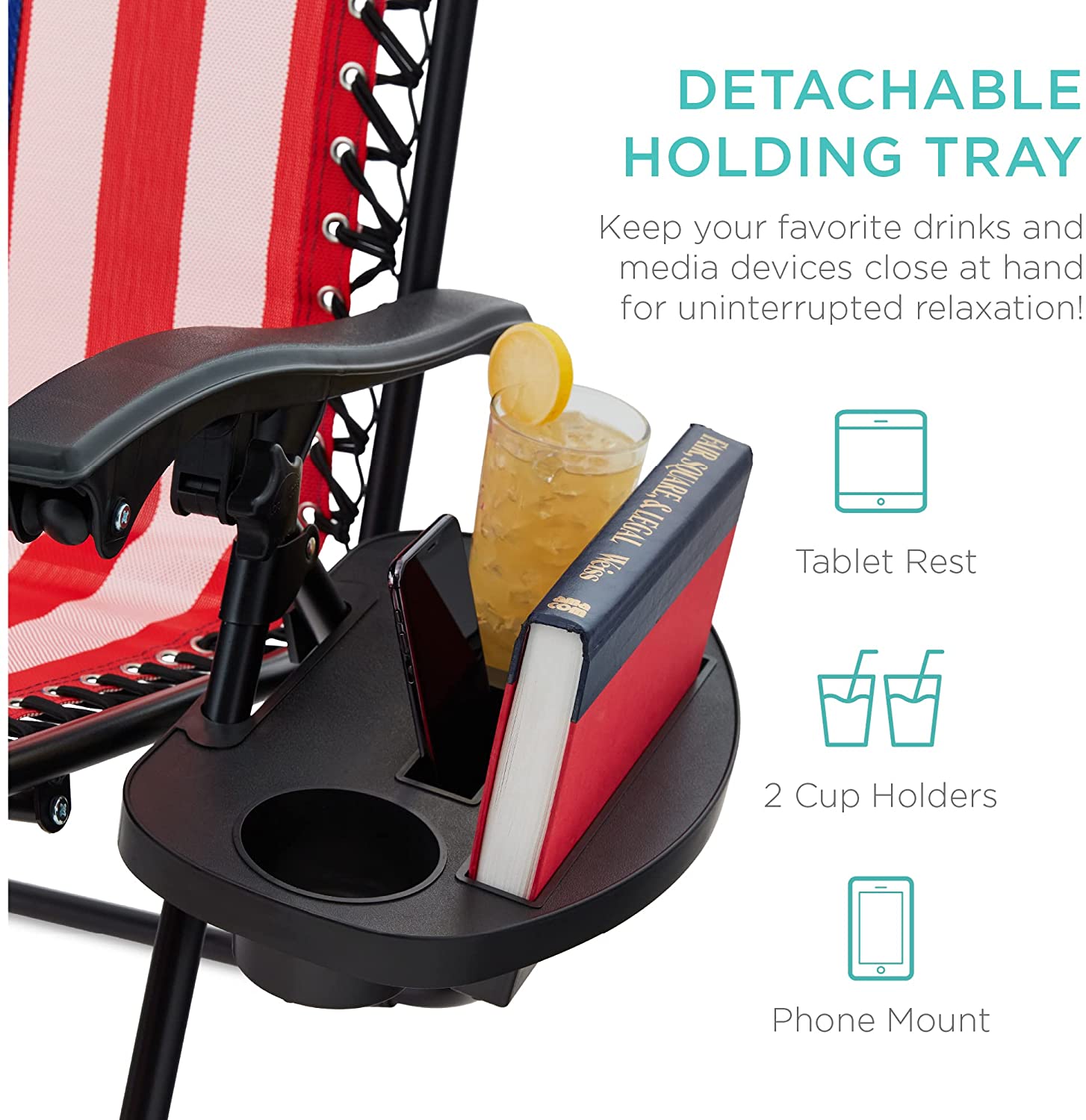 - CONVENIENT & DETACHABLE TRAY: Removable tray is built with two cup holders, a phone holder, and a tablet holder so you never have to be far from your favorite drinks or media devices!