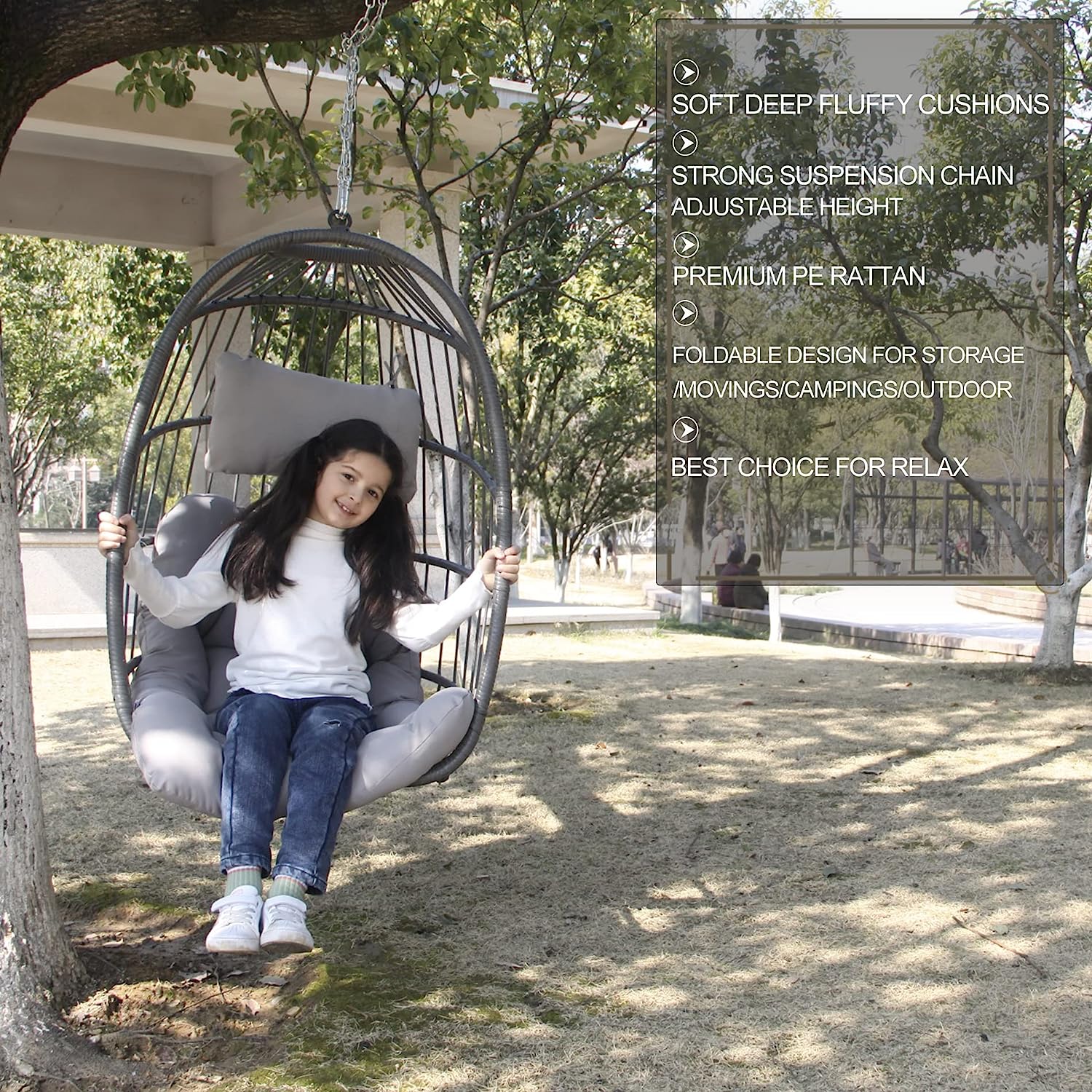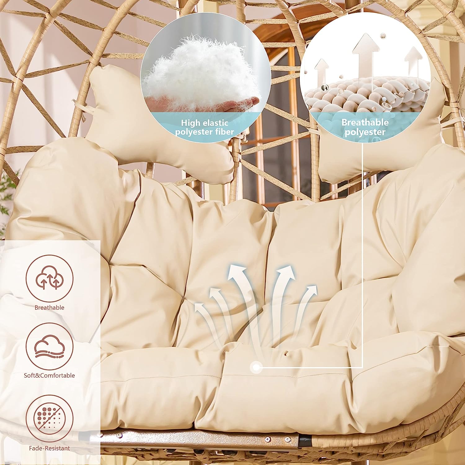 Swing Egg Chair Without Stand Indoor Outdoor Wicker Rattan Patio Basket Hanging Chair with UV Resistant Cushions 265lbs Capaticy for Bedroom Balcony Patio (Without Stand)